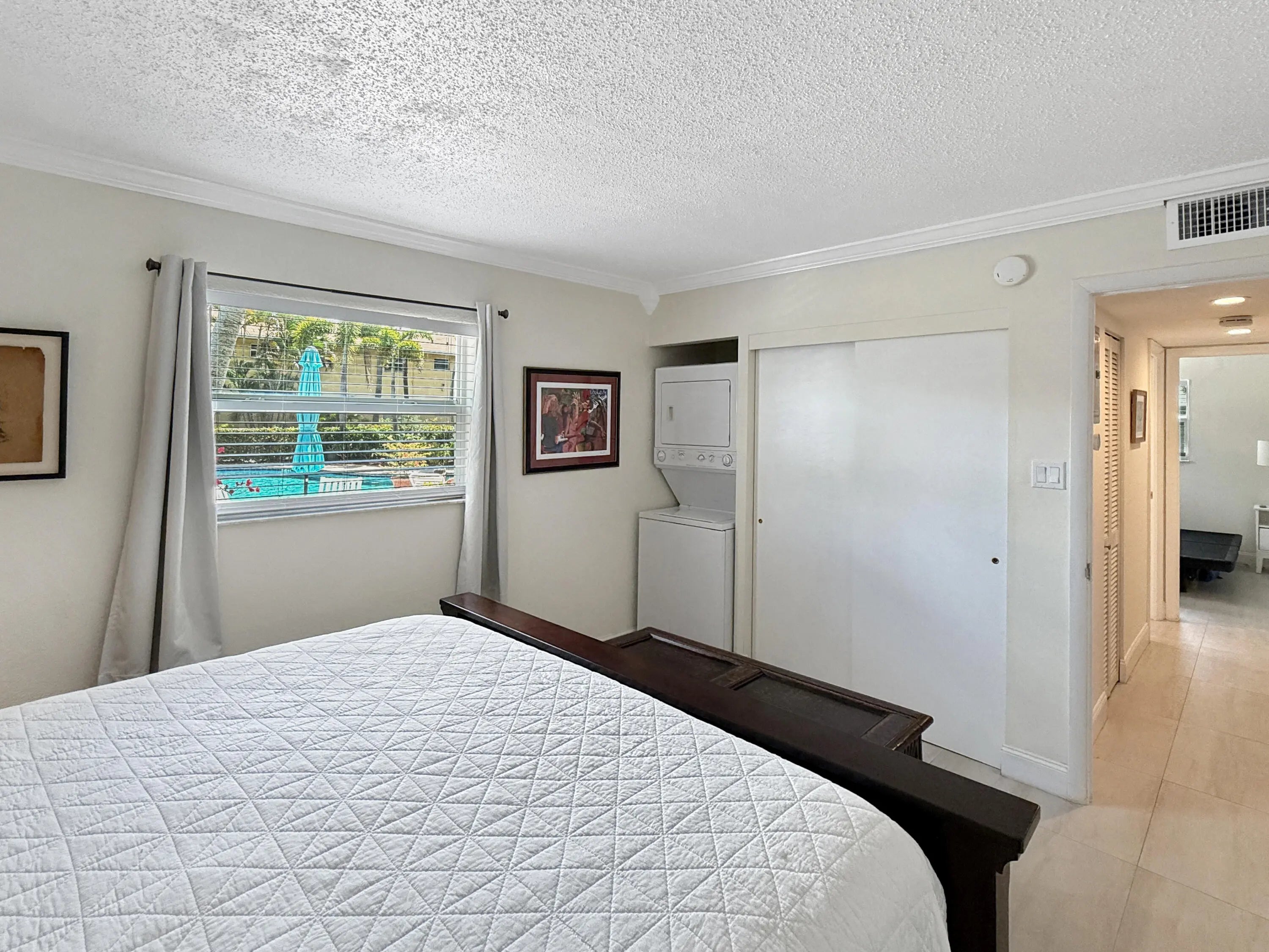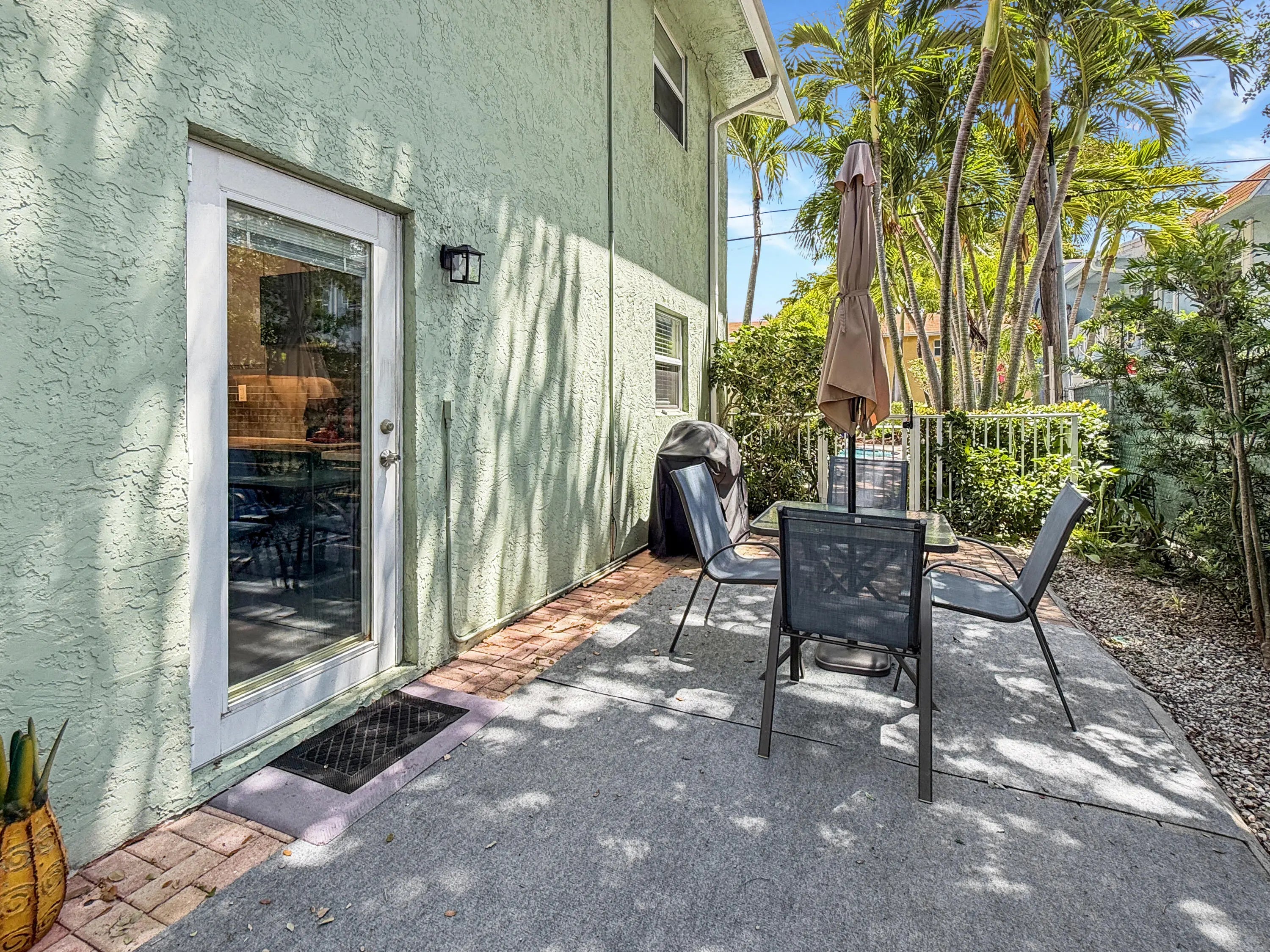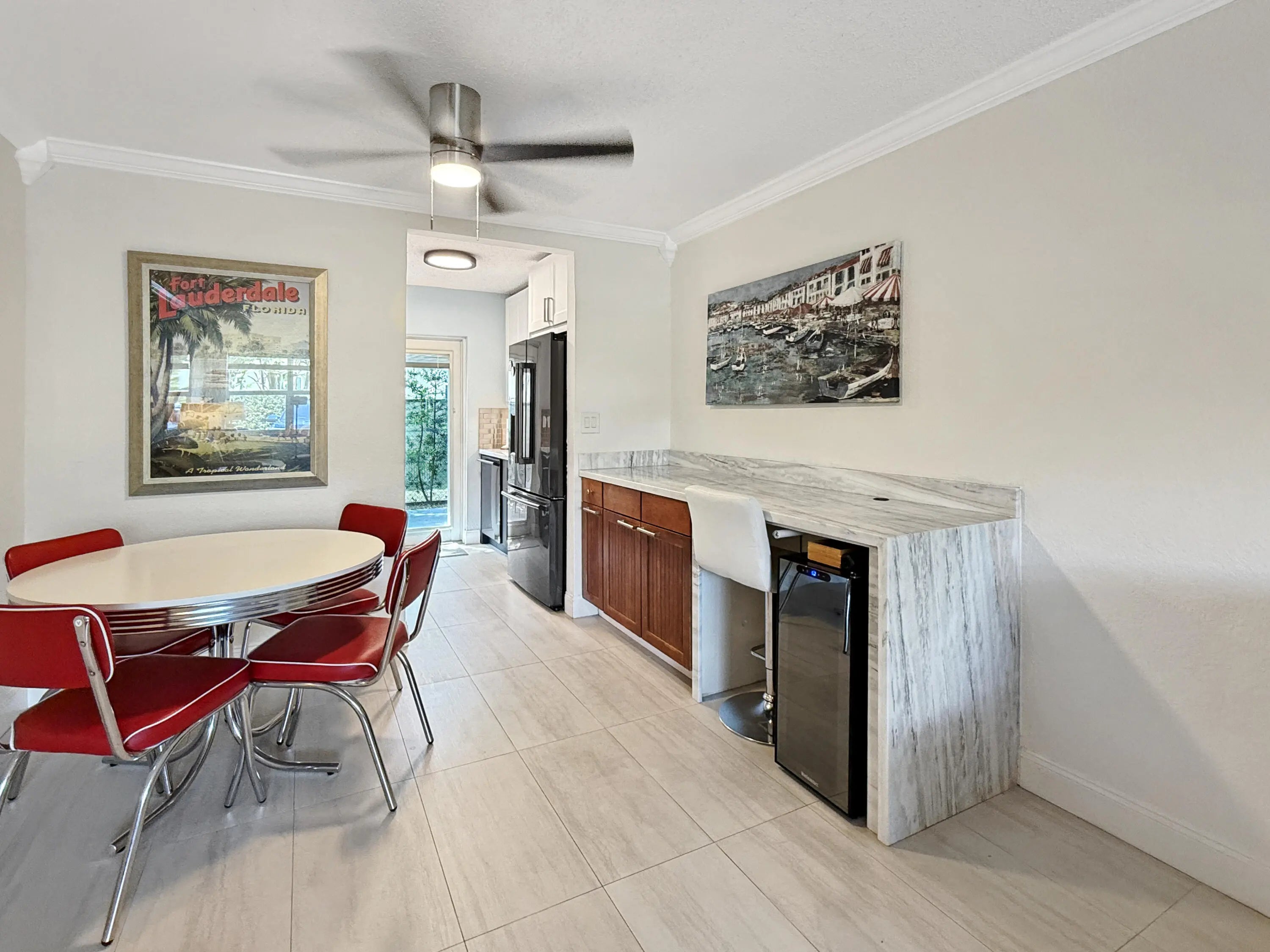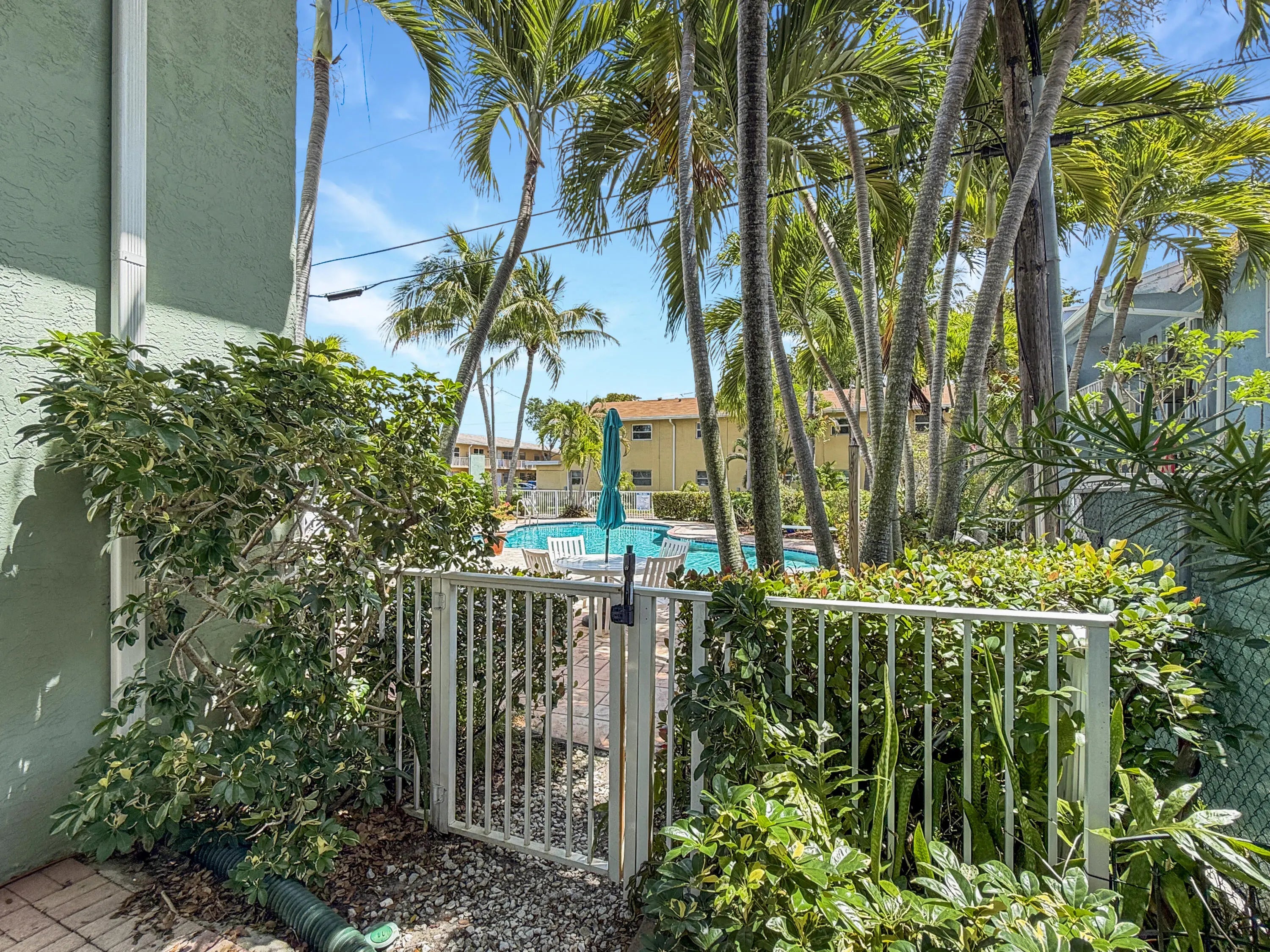 The PERFECT Wilton Manors pied-à-terre: 1st floor furnished END unit, with semi-private back patio with direct pool access PLUS in unit laundry! Only 1.5 blocks to Wilton Drive! This 2 Bed, 1 Bath corner unit is light and bright with extra windows only an end unit can have! The updated two tone galley kitchen features black stainless steel appliances, stainless steel tile backsplash, & under cabinet lighting! Bar area in dining area is perfect for working from home! 2 assigned parking spaces! (One parking space immediately in front). Additional guest spaces nearby. Investor-friendly complex. The monthly condo fee is $618 & covers: property manager, community pool, common area maintenance, insurance, water/trash/sewer, & reserves. Call today! (all info believed accurate but not warranted).
