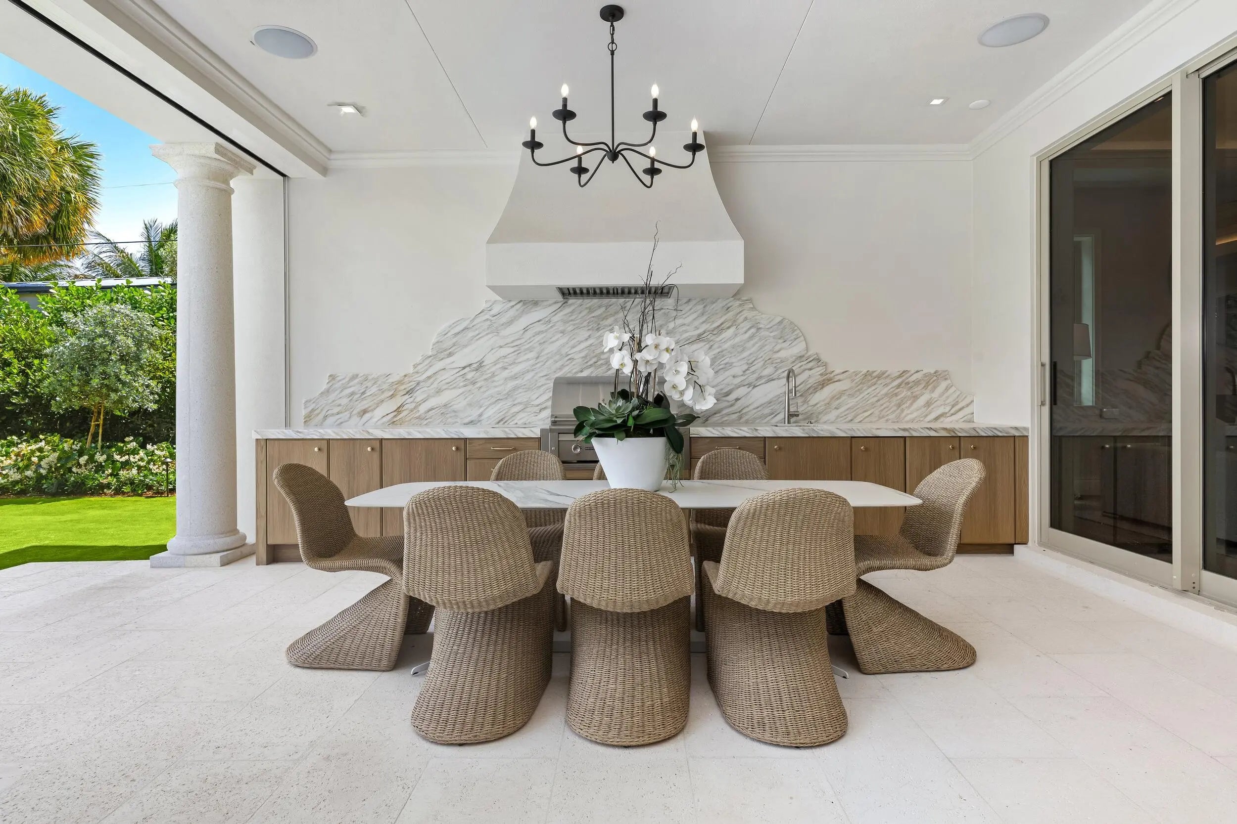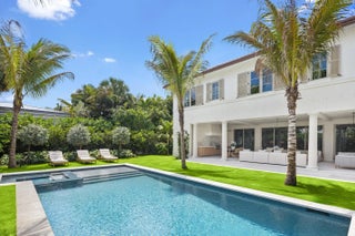Welcome to 122 Bloomfield Drive, a newly constructed estate in West Palm Beach's coveted South of Southern ("SoSo") neighborhood. Thoughtfully designed, the home blends timeless Palm Beach elegance with modern functionality. The residence offers five bedrooms, seven full baths, and one half bath across approximately 9,591+/- total square feet. Set on an oversized lot, the property captures Intracoastal views from the upper level. A grand entry leads to light-filled interiors with soaring ceilings and seamless flow between formal and casual living spaces. The chef's kitchen is anchored by a Cristallo stone island with brass inlay and features a L'Atelier stove, along with Sub-Zero and Miele appliances, and a walk-in pantry. A standout feature is the private office, accessed through a hidden door, complete with a full bar, Sub-Zero refrigeration, wine storage, ice maker, and integrated in-wall speakers—ideal for both work and entertaining. Upstairs, the primary suite offers multiple exposures and Intracoastal views, along with dual baths and customizable closets. A VIP suite, three additional guest bedrooms, and a flexible gym or lounge space complete the second floor. Outdoor living includes an impressive 40-foot covered loggia with a summer kitchen and fireplace, overlooking a heated pool and spa, with a full cabana bath and outdoor shower. Additional features include limestone flooring, integrated audio, Lutron lighting, elevator access, and a two-car air-conditioned garage. Ideally located just minutes from Palm Beach Island, 122 Bloomfield Drive presents a rare opportunity to own a refined new construction home in one of West Palm Beach's most desirable neighborhoods. DISCLAIMER: Information published or otherwise provided by the listing company and its representatives including but not limited to prices, measurements, square footages, lot sizes, calculations, statistics, and videos are deemed reliable but are not guaranteed and are subject to errors, omissions or changes without notice. All such information should be independently verified by any prospective purchaser or seller. Parties should perform their own due diligence to verify such information prior to a sale or listing. Listing company expressly disclaims any warranty or representation regarding such information. Prices published are either list price, sold price, and/or last asking price. The listing company participates in the Multiple Listing Service and IDX. The properties published as listed and sold are not necessarily exclusive to listing company and may be listed or have sold with other members of the Multiple Listing Service. Transactions where listing company represented both buyers and sellers are calculated as two sales. "No payments made until title passes" Some affiliations may not be applicable to certain geographic areas. If your property is currently listed with another broker, please disregard any solicitation for services. Information published or otherwise provided by seller, listing company or its representatives is deemed reliable but are not guaranteed and subject to errors, omissions, or changes without notice. Copyright 2026 by the listing company. All Rights Reserved.