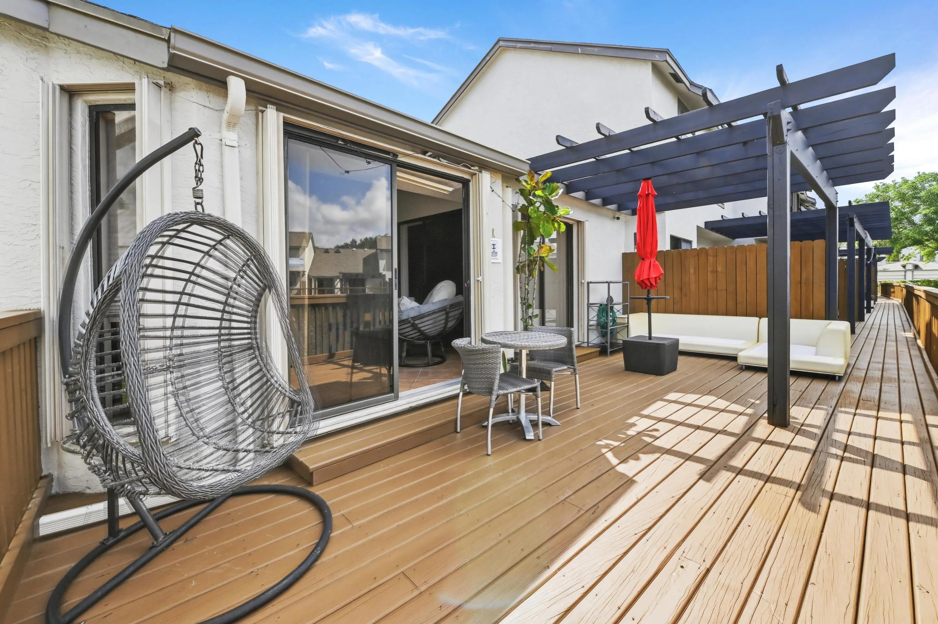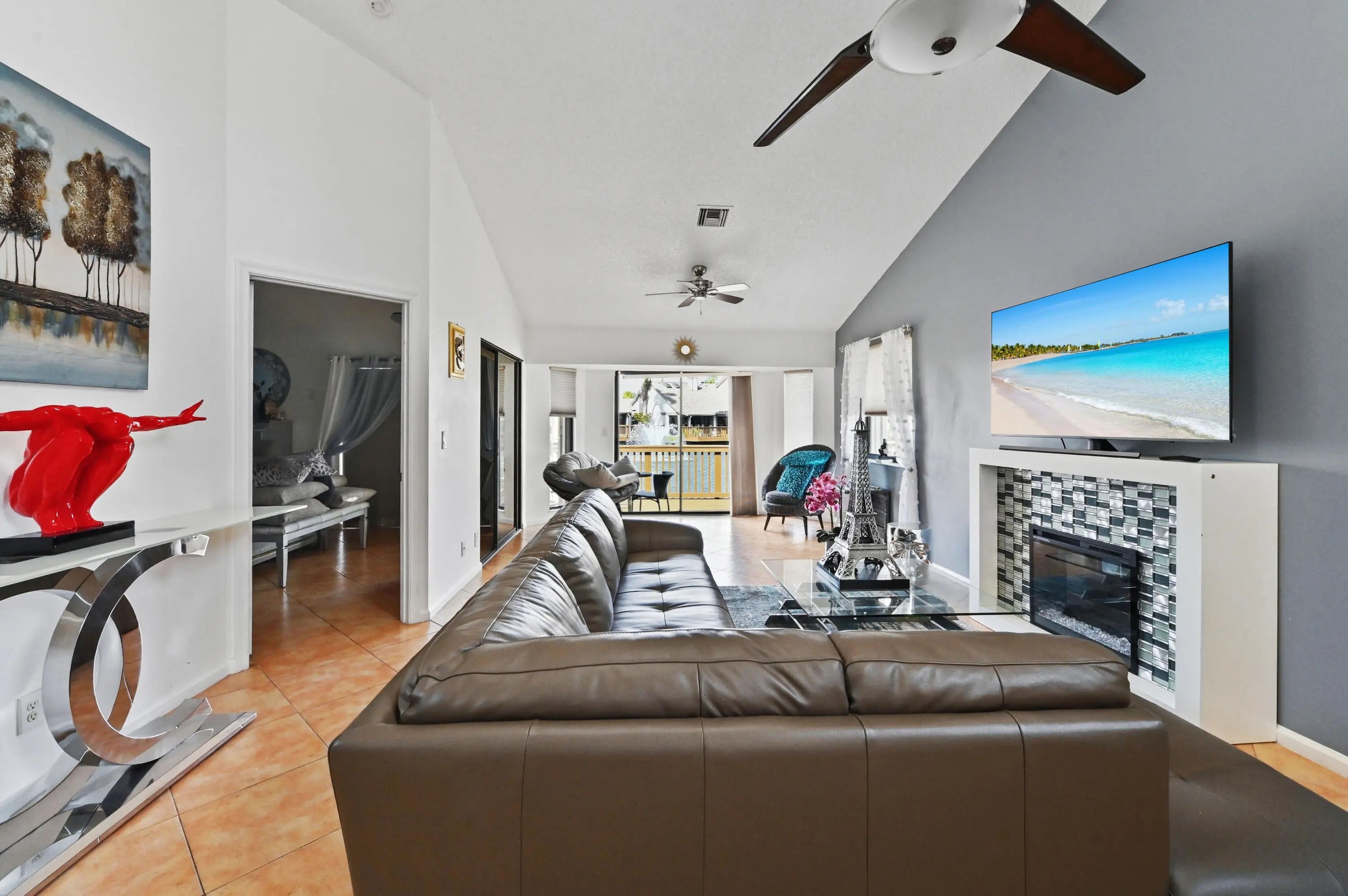 This is a two-bedroom townhouse, but the other bedroom is locked, with the owner's stuff inside. This stunning lakefront corner townhouse truly has it all. Featuring tile flooring throughout, accordion shutters, and beautifully remodeled kitchen and bathrooms, every detail has been thoughtfully updated. Enjoy serene views of the fountain and lagoon from your private space.