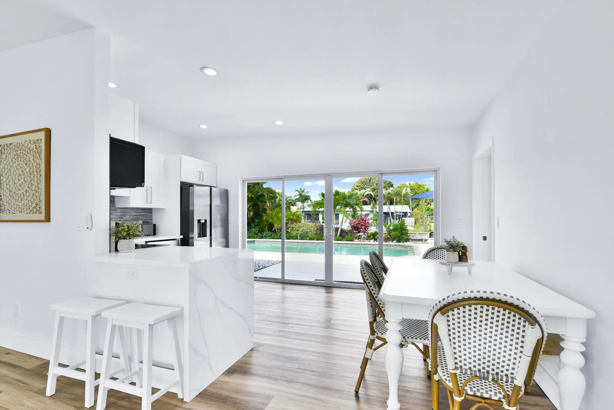Enjoy the ultimate waterfront lifestyle in this exceptional, beautifully upgraded heated pool home nestled on the serene shores of Lake Osborne, offering unparalleled boating access and without the confines of an HOA. This one-of-a-kind residence boasts an array of stunning upgrades, elevating luxury living to new heights. 4 bedrooms, 3 bathrooms, and an oversized 1- car garage with bonus storage/utility area. Unwind in your private oasis complete with a recently updated heated pool, extended patio, and a new dock for direct access to Lake Osborne—a boater's paradise beckoning you to explore the lakes from West Palm Beach to Delray. Experience seamless indoor-outdoor flow in an open floor plan adorned with soaring vaulted ceilings, offering an ambiance of spaciousness and airiness. Revel in the allure of new flooring and refined designer touches that infuse elegance into every corner. The kitchen is an updated culinary masterpiece, featuring new white Shaker cabinets, new Quartz countertops, and state-of-the-art stainless-steel appliances a chef's delight. Luxuriate in fully upgraded bathrooms and relish the peace of mind provided by impact windows and doors, ensuring safety and tranquility. Step into a tropical paradise as the beautifully landscaped backyard overlooks a serene waterfront canal. An entertainer's haven awaits, perfectly suited for hosting gatherings or simply savoring the breathtaking surroundings in solitude. Discover a prime location offering easy access to South Florida's stunning beaches, fine dining, and vibrant entertainment. With proximity to I-95, convenience becomes your everyday companion, seamlessly connecting you to desired destinations. This beautifully updated ranch home exudes modern sophistication while retaining a welcoming charm, embodying the epitome of turnkey elegance. Simply move in and relish the coastal lifestyle you've always dreamed of. This exceptional property harmonizes idyllic waterfront living with contemporary luxury, presenting an unmatched opportunity to claim your slice of paradise. Book your private tour today and prepare to elevate your lifestyle amidst the beauty of Lake Osborne.