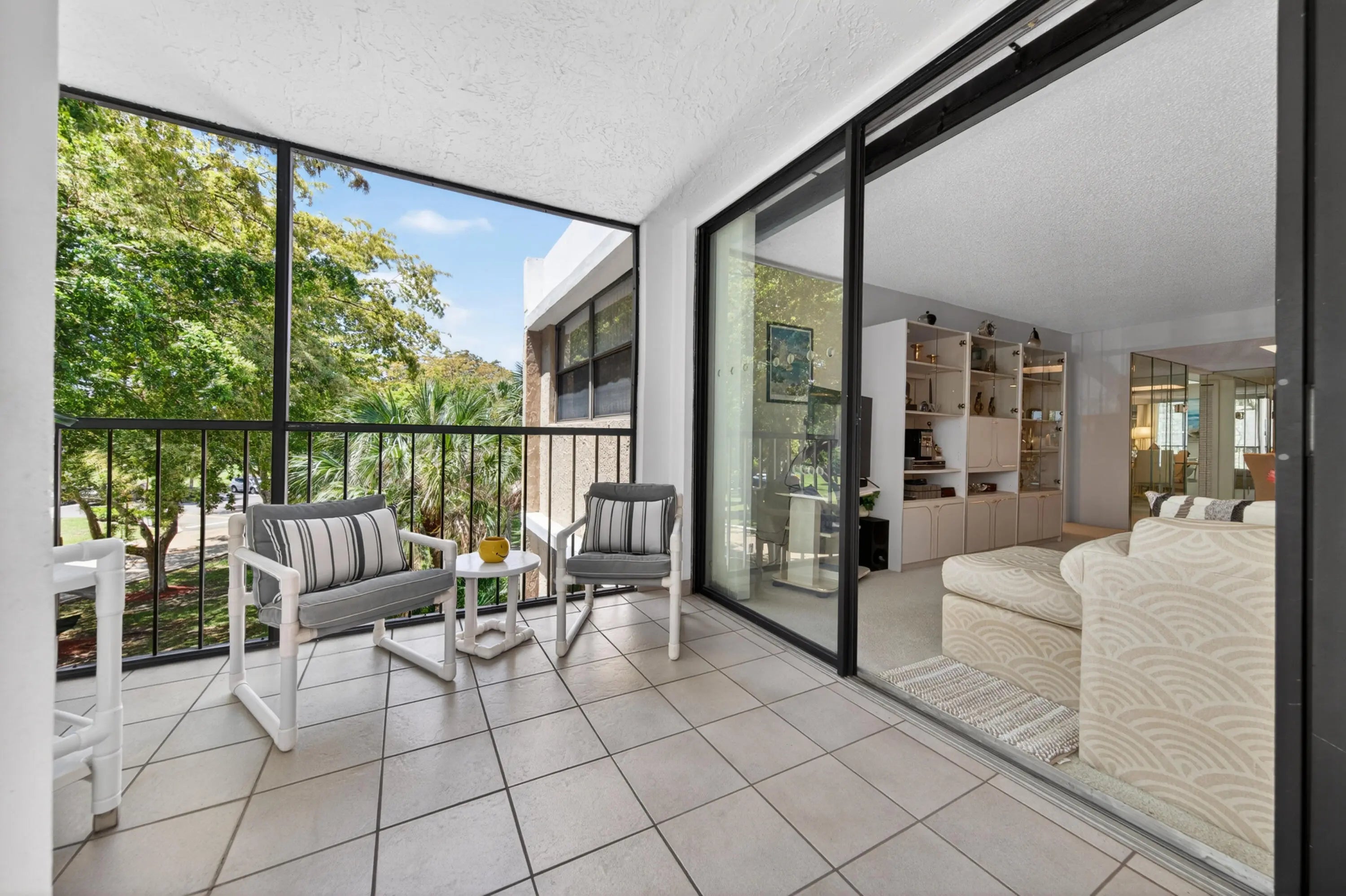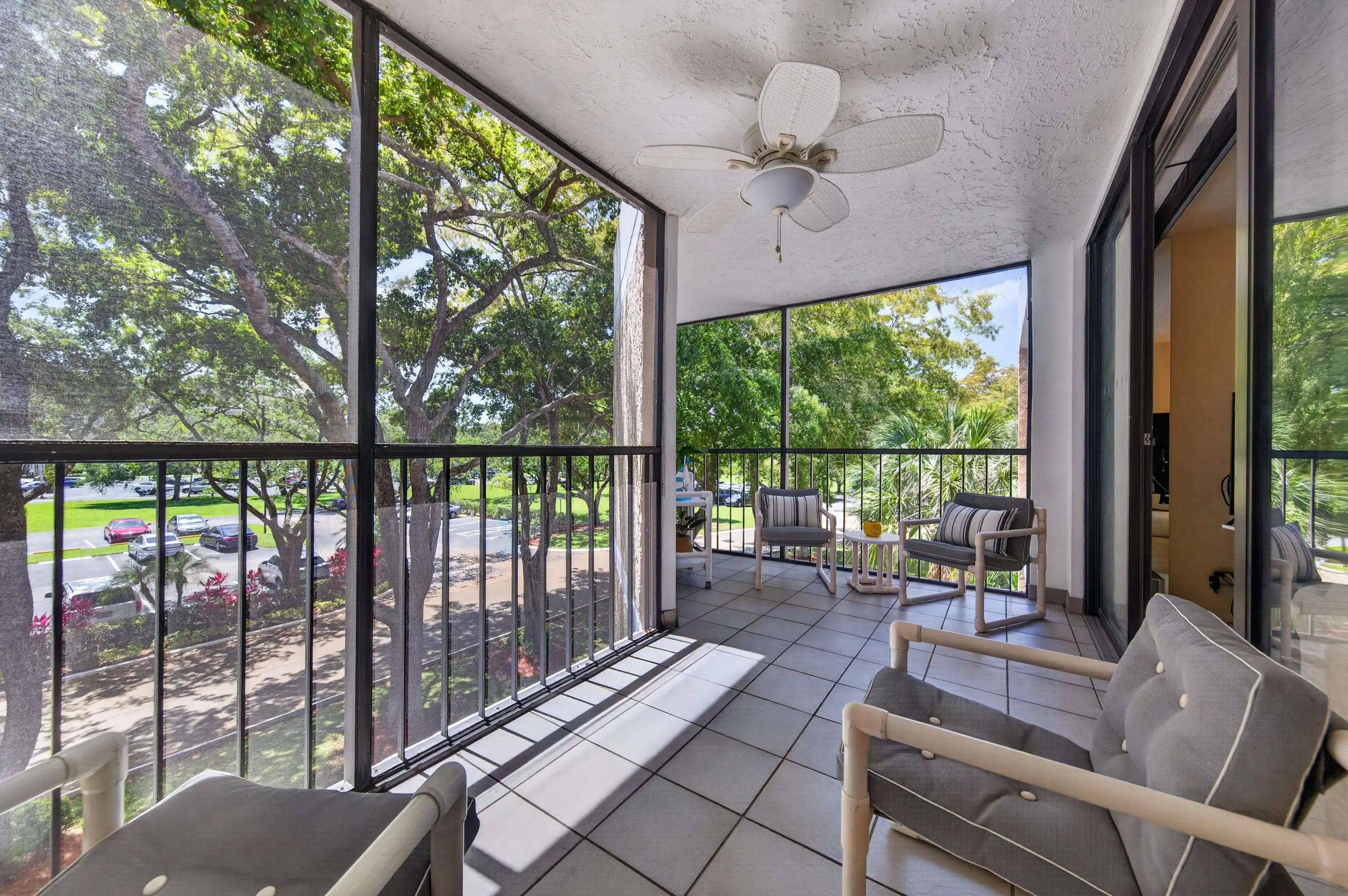 Abundant natural light in this comfortable well-maintained sought after CORNER unit with a highly desirable split-bedroom floor plan, maximizing privacy with en-suite baths for each bedroom. The large balcony (new screens 2025) off the living room adds to the natural light as well as the unique kitchen window. All the appliances have been replaced in the last 5 years including refrigerator, stove, dishwasher, microwave, washer, and dryer and the owner has a service contract on them and more. A new building roof was installed in September 2024. The Association's common elements close by include a swimming pool, tennis courts, and barbeque shared by 5 of the 10 buildings in the community. Close by is the Bonaventure Town Center Club with a mandatory annual dues of $420/yr. The Association has completed their 40 yr. certification and Structural Integrity Reserve Study. Leasing only after 1st year of ownership with a minimum of 3 months and maximum of 4 months. Limit rental once per year. Assigned Parking Space no. 7. SEE VIRTUAL Matterport 3D TOUR 24/7.