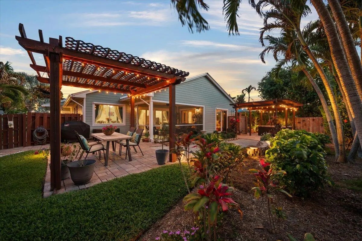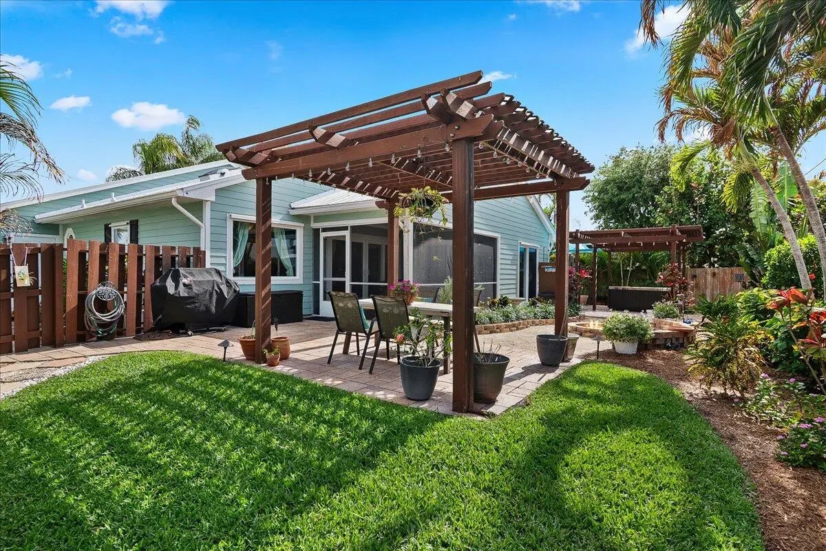 Prime Hobe Sound location off Gomez with no HOA! Ideally situated just minutes from stunning beaches, parks, and endless outdoor recreation. This move-in ready, meticulously maintained 3-bedroom, 2-bath home features updated appliances and newly upgraded countertops in the kitchen and bathrooms, plus impact hurricane windows and a durable metal roof for peace of mind. Each bedroom offers custom closet systems, while a walk-up attic provides abundant storage, vaulted ceilings, and elegant molding add charm throughout. Enjoy a private, fully fenced backyard with an outdoor shower, spa, paver patio, pergolas, and ambient lighting, perfect for relaxing or entertaining. Lush butterfly and tropical bird inviting landscape.
