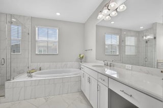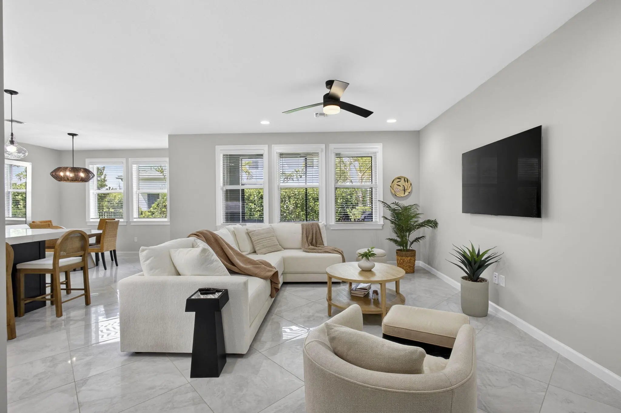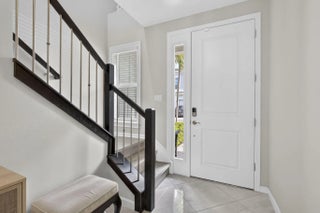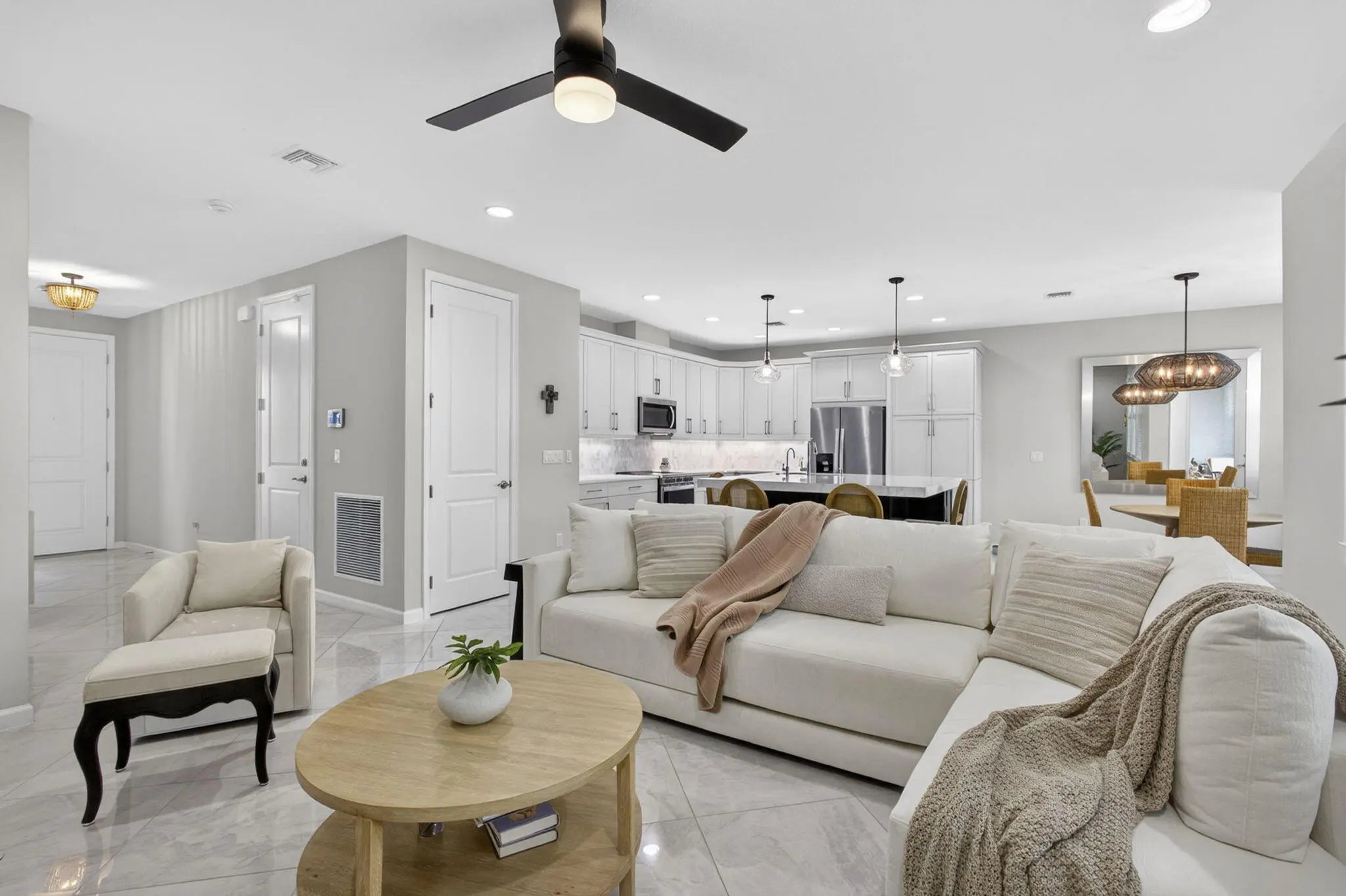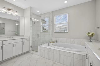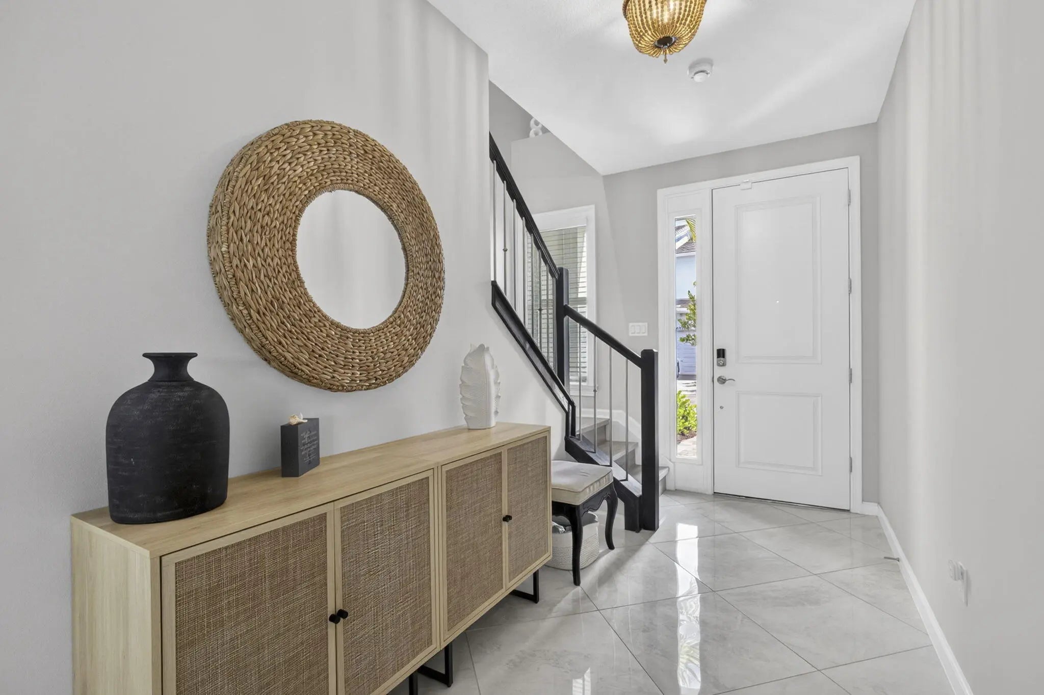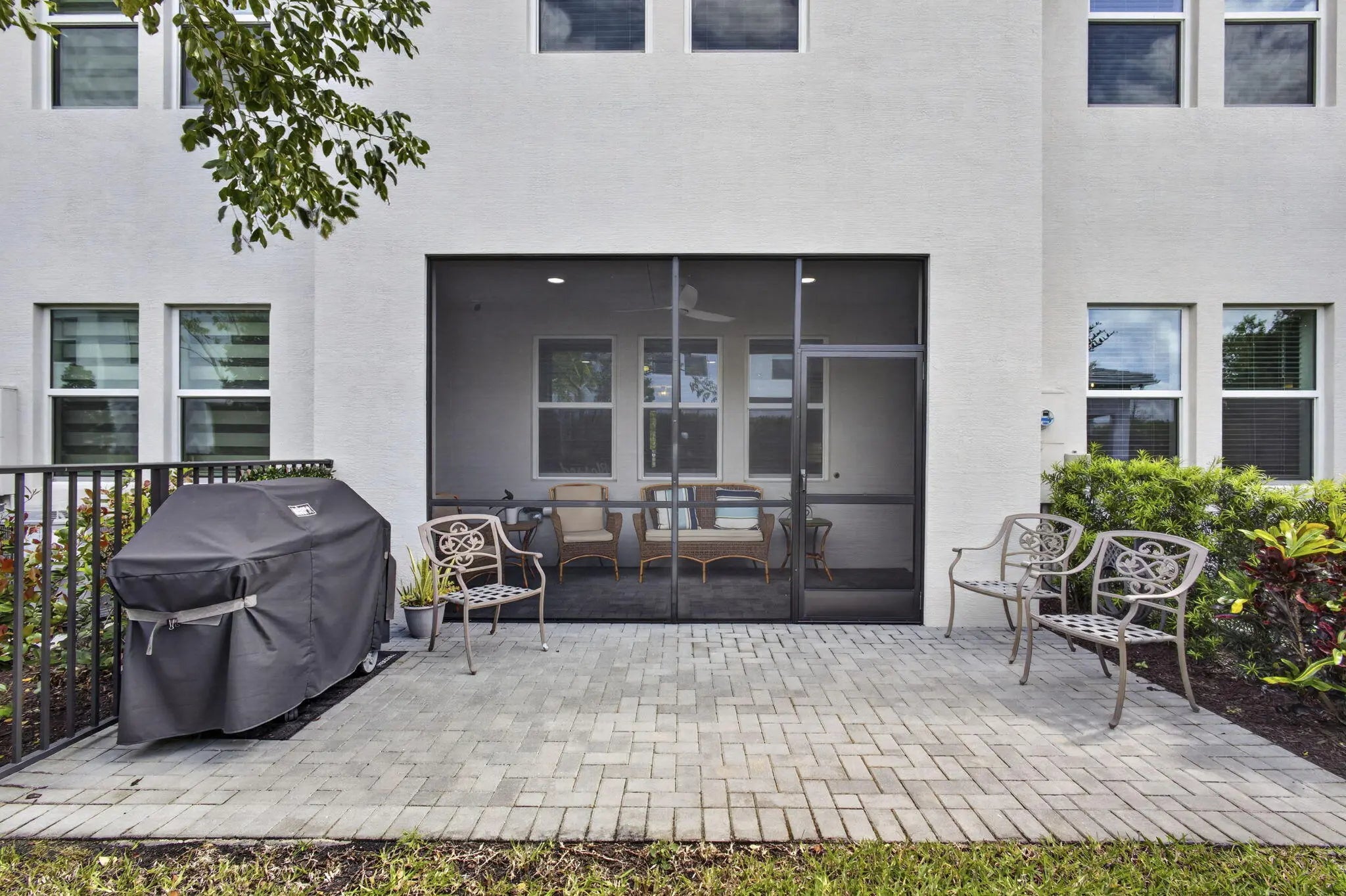 Welcome to this 2024 built townhouse in the highly sought-after city of Westlake, where modern elegance meets thoughtful design and exceptional craftsmanship. This residence showcases a seamless blend of wood flooring and 24x24 porcelain tile throughout—no carpet—creating a clean, sophisticated, and timeless aesthetic. The home offers 3 spacious bedrooms and two and a half beautifully appointed bathrooms, featuring walk-in frameless glass showers and a primary bathroom with a spa-like soaking tub, delivering comfort and luxury in every detail. Additional upgrades include custom window moldings, detailed casings, wood blinds throughout, and an open stair railing, adding a modern architectural touch and enhanced sense of space. The gourmet open-concept kitchen is designed to impress,a 3-inch island countertop, upgraded Level 3 cabinetry with crown molding, a custom island with detailed paneling, full-height designer tile backsplash, and elegant under-cabinet lighting that enhances both style and functionality. Enjoy effortless indoor-outdoor living with a screened-in lanai and extended paver patio, perfect for entertaining or relaxing in privacy. The backyard is also enhanced with privacy hedging, creating a serene and secluded retreat. Located in a vibrant, family-friendly community with a desirable school zone, residents enjoy access to a state-of-the-art clubhouse and the renowned Westlake Adventure Park, offering resort-style living with a lagoon pool, tower slide, lap pool, splash pad, playground, fitness center, basketball courts, dog park, event spaces, and an adult-only pool for those moments when you want a more peaceful, relaxing escape. This home is exceptionally priced for the area, and no detail was overlooked in delivering a truly refined living experience.