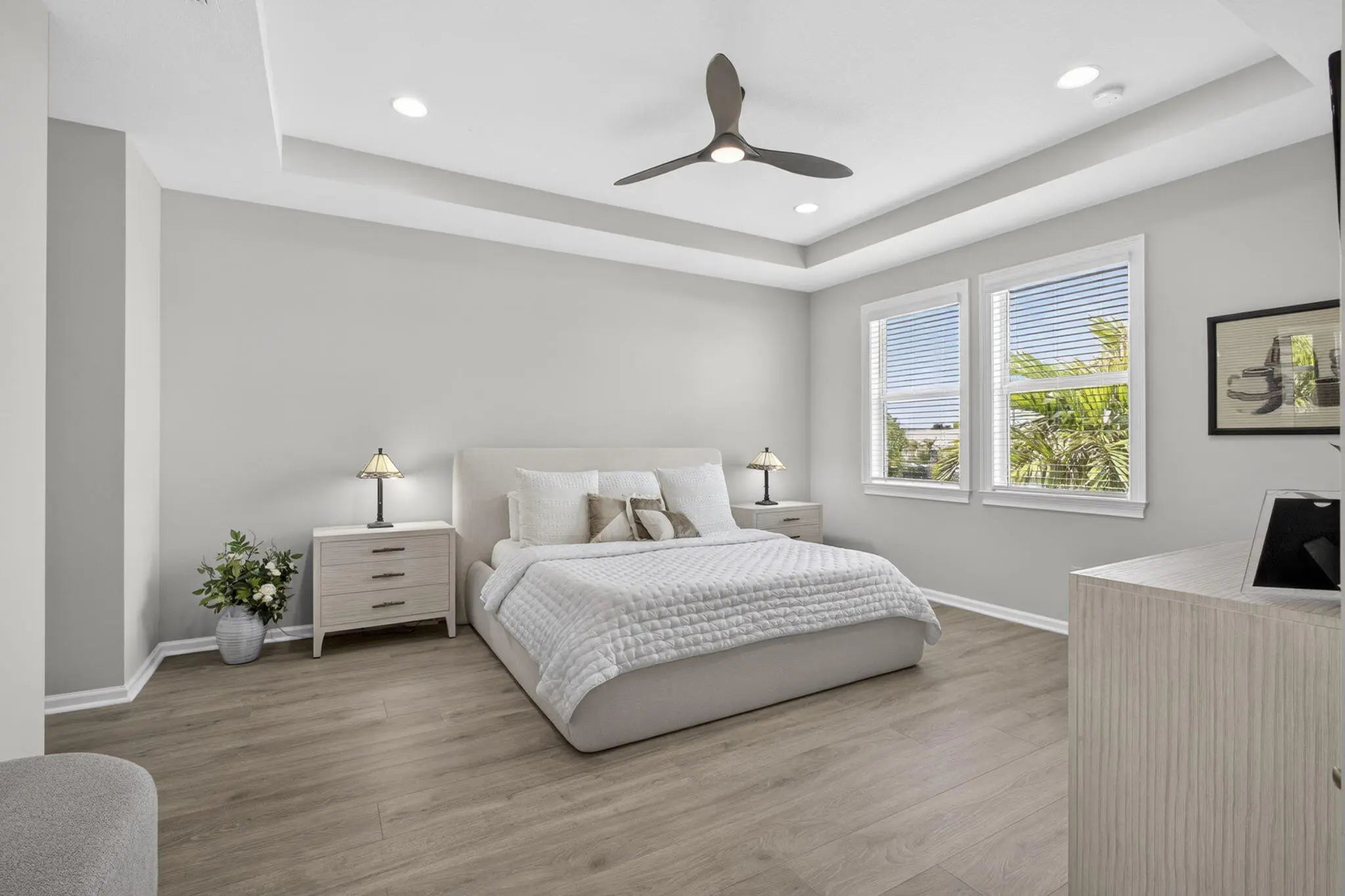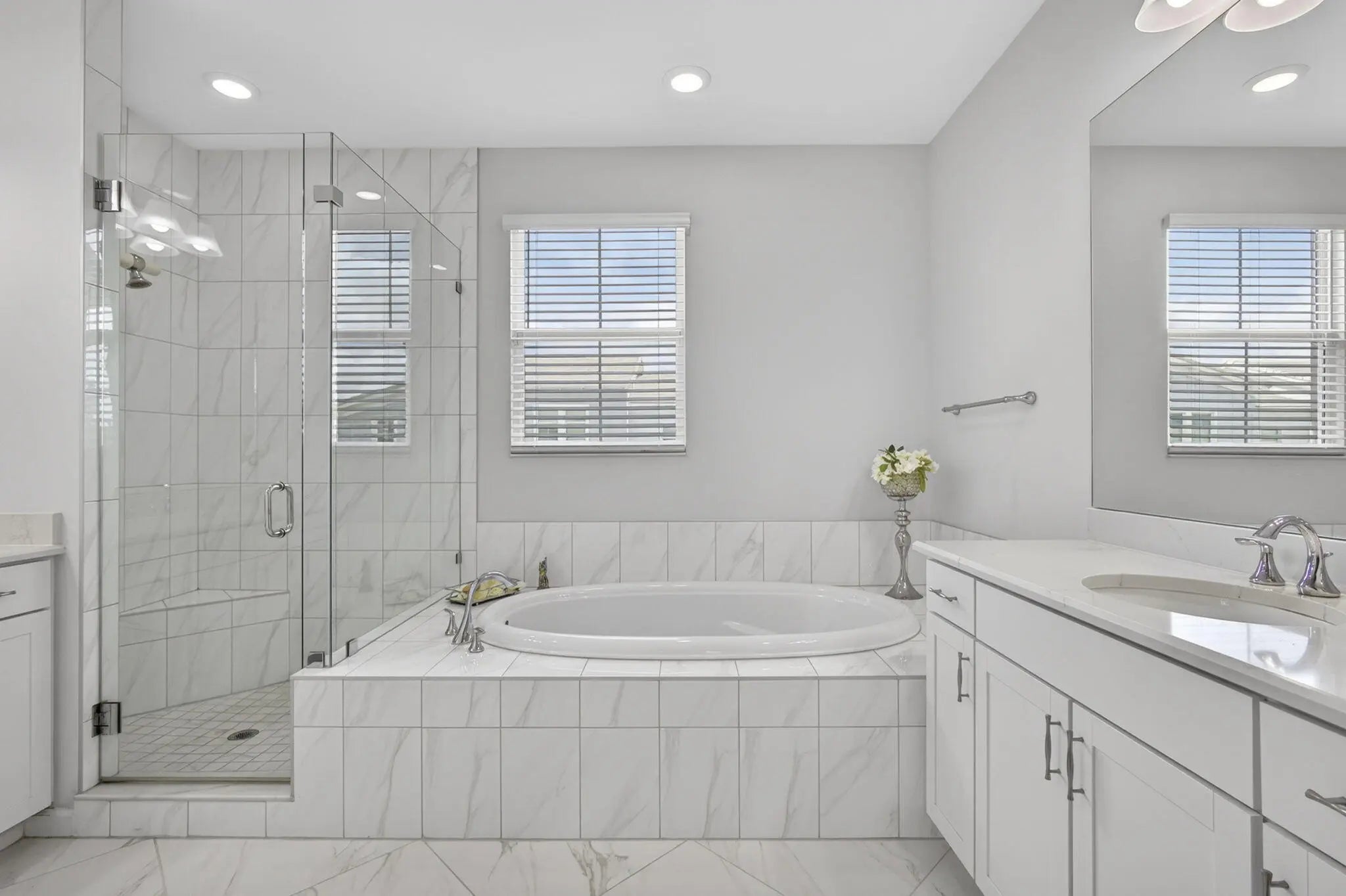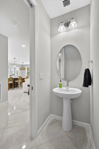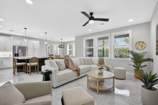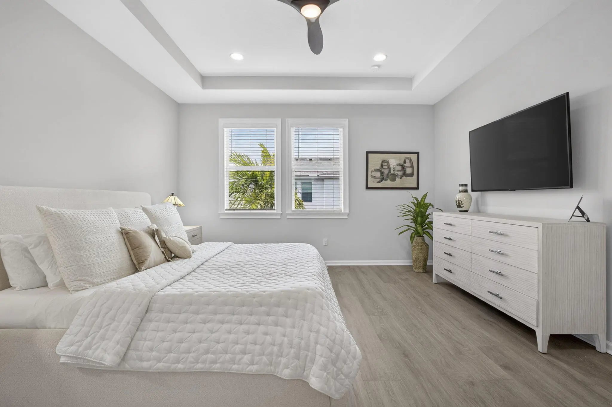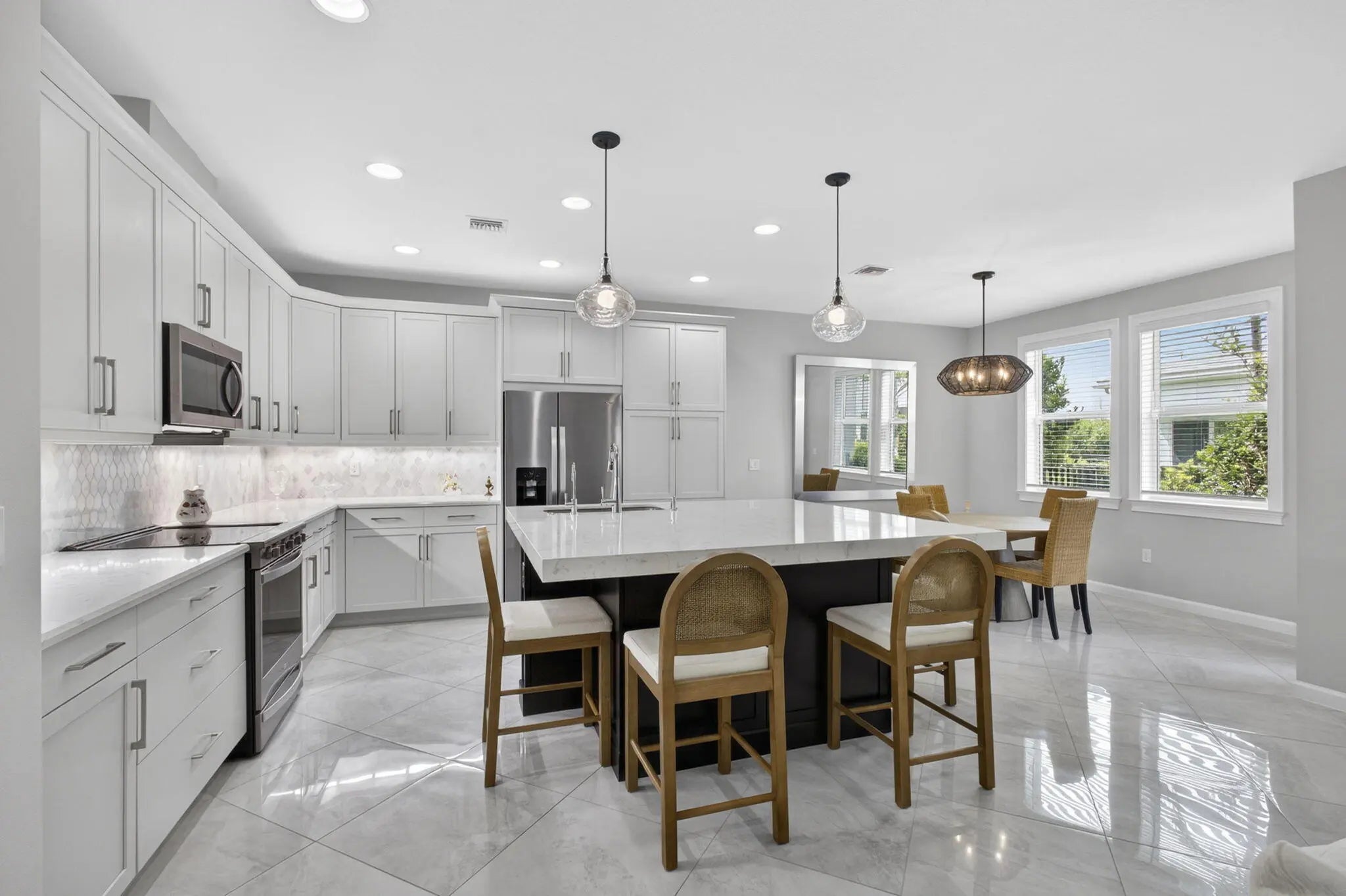 Welcome to this 2024 built townhouse in the highly sought-after city of Westlake, where modern elegance meets thoughtful design and exceptional craftsmanship. This residence showcases a seamless blend of wood flooring and 24x24 porcelain tile throughout—no carpet—creating a clean, sophisticated, and timeless aesthetic. The home offers 3 spacious bedrooms and two and a half beautifully appointed bathrooms, featuring walk-in frameless glass showers and a primary bathroom with a spa-like soaking tub, delivering comfort and luxury in every detail. Additional upgrades include custom window moldings, detailed casings, wood blinds throughout, and an open stair railing, adding a modern architectural touch and enhanced sense of space. The gourmet open-concept kitchen is designed to impress,a 3-inch island countertop, upgraded Level 3 cabinetry with crown molding, a custom island with detailed paneling, full-height designer tile backsplash, and elegant under-cabinet lighting that enhances both style and functionality. Enjoy effortless indoor-outdoor living with a screened-in lanai and extended paver patio, perfect for entertaining or relaxing in privacy. The backyard is also enhanced with privacy hedging, creating a serene and secluded retreat. Located in a vibrant, family-friendly community with a desirable school zone, residents enjoy access to a state-of-the-art clubhouse and the renowned Westlake Adventure Park, offering resort-style living with a lagoon pool, tower slide, lap pool, splash pad, playground, fitness center, basketball courts, dog park, event spaces, and an adult-only pool for those moments when you want a more peaceful, relaxing escape. This home is exceptionally priced for the area, and no detail was overlooked in delivering a truly refined living experience.
