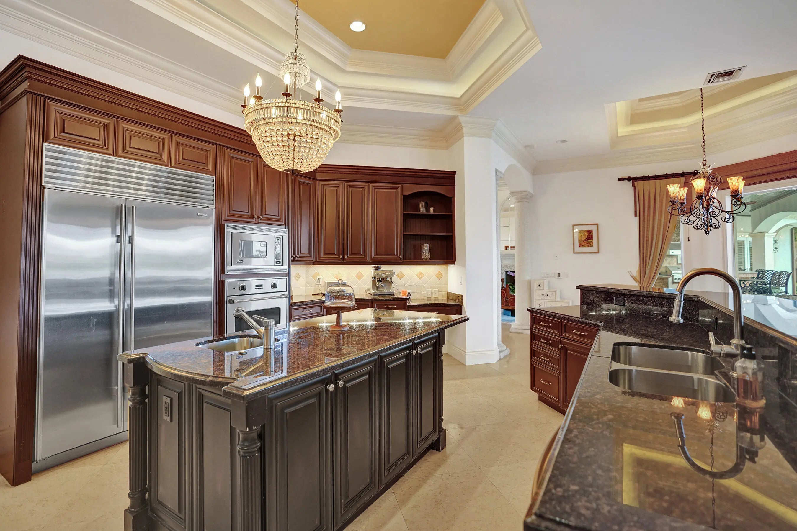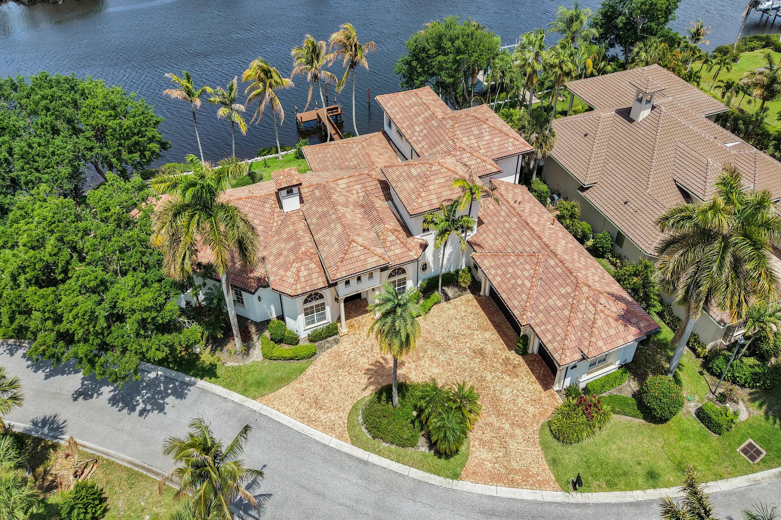 Welcome to Florida living at its best! Tucked inside the gated community of Jupiter River Estates, this custom-built home wraps you in 280 ft of shimmering water views. With plenty of space to entertain guests in the formal living/dining area & billiards room. Soaring ceilings and an open layout flood the interiors with natural light. The generous sized kitchen is equipped with premium appliances & a butler's pantry. Wind down in a primary suite designed like a boutique hotel—French doors to the outside terrace, coffee bar, and spa-style bath with dual vanities. Outside, enjoy a heated pool and spa, a summer kitchen and tranquil river views. 2 private docks provide direct ocean access. Upstairs, there's a private suite with its own kitchen that provides guests with a welcome retreat.