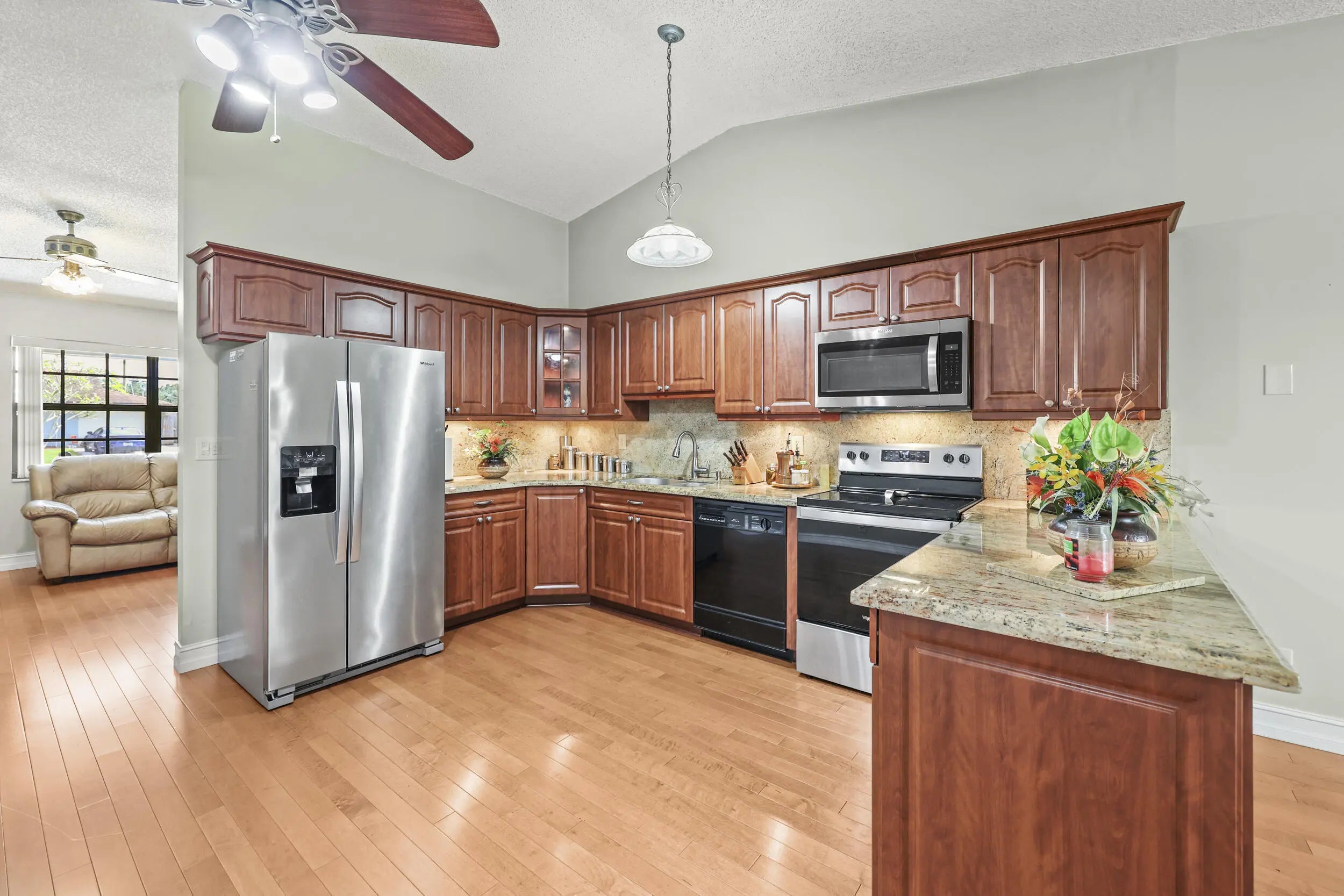 Charming 3 bed, 2 bath home with a loft and NO HOA in the heart of Lake Worth Beach, FL. This rare property features a new roof (2023), impact windows, vaulted ceiling, and an open kitchen with marble countertops and stainless steel appliances. Additional upgrades include a tankless water heater, updated guest bath, generator hookup, and upgraded electrical panel. Outside, a spacious enclosed patio and fully fenced yard make for a great entertaining setup. Widened & painted driveway, sprinkler system, and camera security complete the package. Conveniently located near the Turnpike, I-95, Wellington, Boynton Beach, Downtown West Palm Beach, beaches, and airports. Move-in ready!