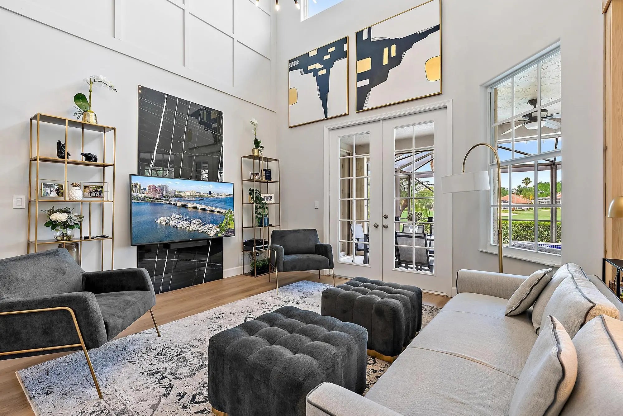 *AVAILABLE FROM NOV. 1 TO FEBRUARY 15* TRANSFERRABLE PREMIER GOLF MEMBERSHIP + GOLF CART INCLUDED + POOL Experience your dream seasonal escape in this beautifully renovated 3-bedroom, 2.5-bathroom home located in the prestigious Club at Ibis. From the moment you step inside, you'll be welcomed by exquisite decor and elegant touches throughout. Relax in your own private oasis with a large heated pool offering breathtaking views of the first hole on the NEWLY RENOVATED Heritage Golf Course. The spacious PRIMARY SUITE, located conveniently on the FIRST FLOOR, features a walk-in closet and stunning views of the pool and golf course. Upstairs, a versatile loft provides an office space, a cozy lounge with a two-person sleeper sofa, and two additional bedrooms . One with a king-size bed and the other with two twin beds. Enjoy the ultimate golf experience with a **PREMIER GOLF TRANSFERABLE MEMBERSHIP**, giving you complimentary green fees, priority tee times, and unlimited use of practice facilities and the driving range. The home also comes equipped with a personal golf cart, four bicycles, smart TVs, cable, and Wi-Fi for your convenience. Take full advantage of Ibis's world-class amenities, including tennis, pickleball, bocce, a fitness center, spa, resort-style pools, fine dining, and a vibrant calendar of social events and cultural activities. Located just 20 minutes from South Florida's pristine beaches, this home offers the perfect balance of relaxation and recreation for your seasonal getaway. Book now for a luxurious stay at The Club at Ibis! Ideally situated just minutes from luxury shopping at The Gardens Mall, fine dining, pristine beaches, boating, Downtown West Palm Beach, Palm Beach Island, and Palm Beach International Airport—all within a 20-minute drive.