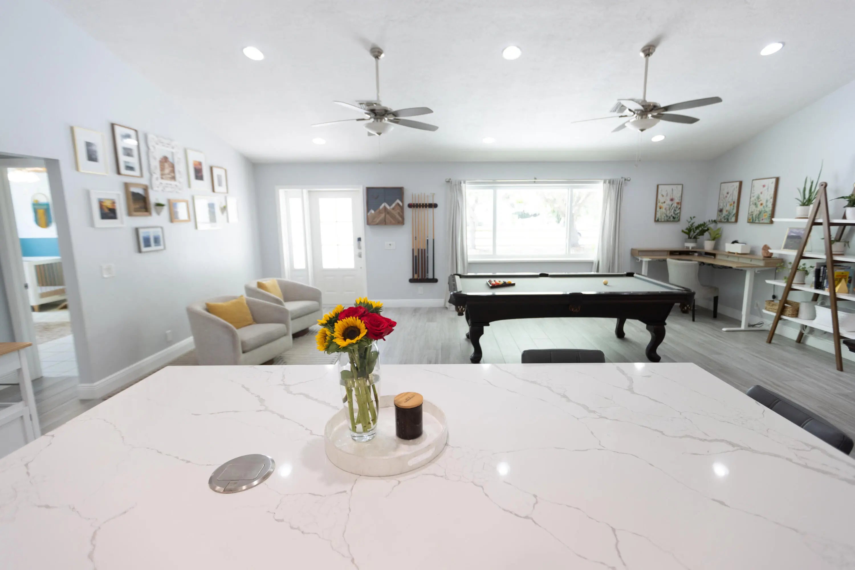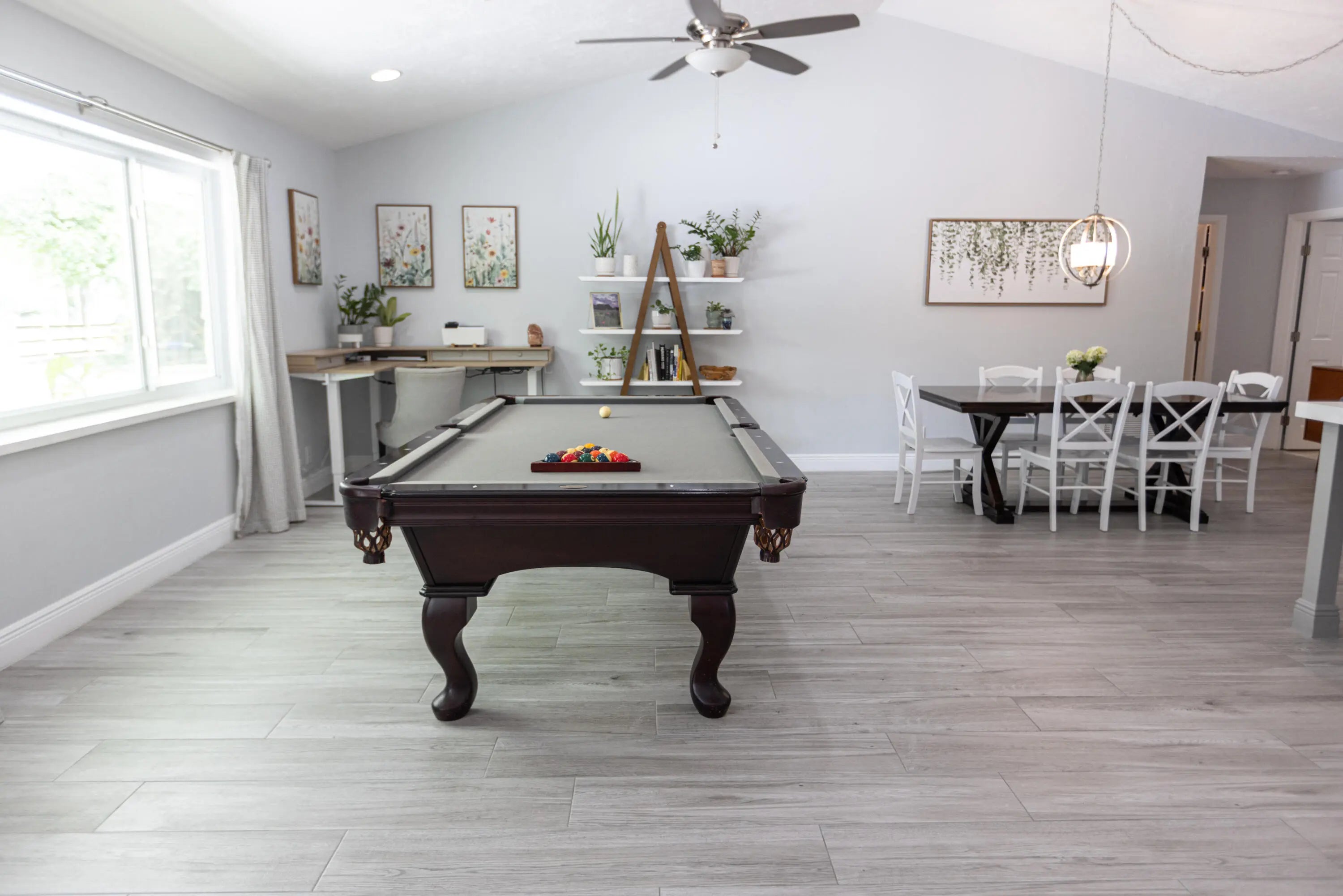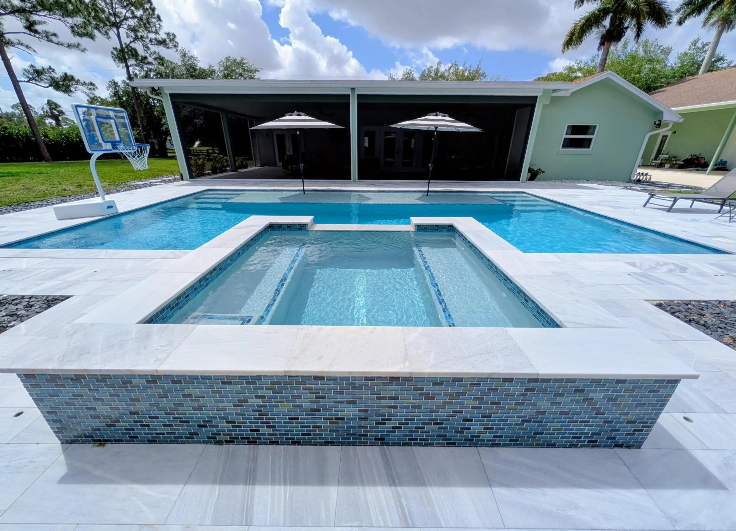 Welcome to your private acre retreat in the highly sought after Palm Beach Ranchettes, one of the few no HOA communities with spacious properties just minutes from everything. This property features a resort style backyard with a brand new saltwater pool and spa, pickleball/basketball court, and private guest building that truly sets it apart. Situated on a fully fenced 1.01 acre lot, the property includes a 3-bedroom, 2-bath main home (2,155 sq ft) with an open living area, spacious kitchen with quartz countertops and a large island, and a split floorplan. The primary suite has a custom walk-in closet, barn door entry, and dual sinks, while the secondary bathroom was fully renovated in 2023. Impact windows and doors throughout provide added comfort and peace of mind. A separate 1,250 sq ft guest house with a large utility garage provides flexibility for guests, extended family, workspace, or creative use. Step outside to a fully screened, oversized L-shaped patio with motorized screens, opening to the custom saltwater sport pool (built in 2024) with marble decking and an above-ground spa, all app-controlled. The property also features a covered pavilion with electric, a professionally installed 30' x 60' pickleball/basketball court, six organic garden beds with irrigation, and a variety of mature fruit trees. Additional highlights include an oversized concrete driveway with room for multiple vehicles, boats, and recreational equipment, all secured by dual electronic gates. Located just minutes from The Mall at Wellington Green, Whole Foods, Trader Joe's, Florida's Turnpike, and A-rated schools, this home gives the rare opportunity to enjoy acreage living with unmatched convenience. This one-of-a-kind property provides a lifestyle that's hard to find in South Florida.
