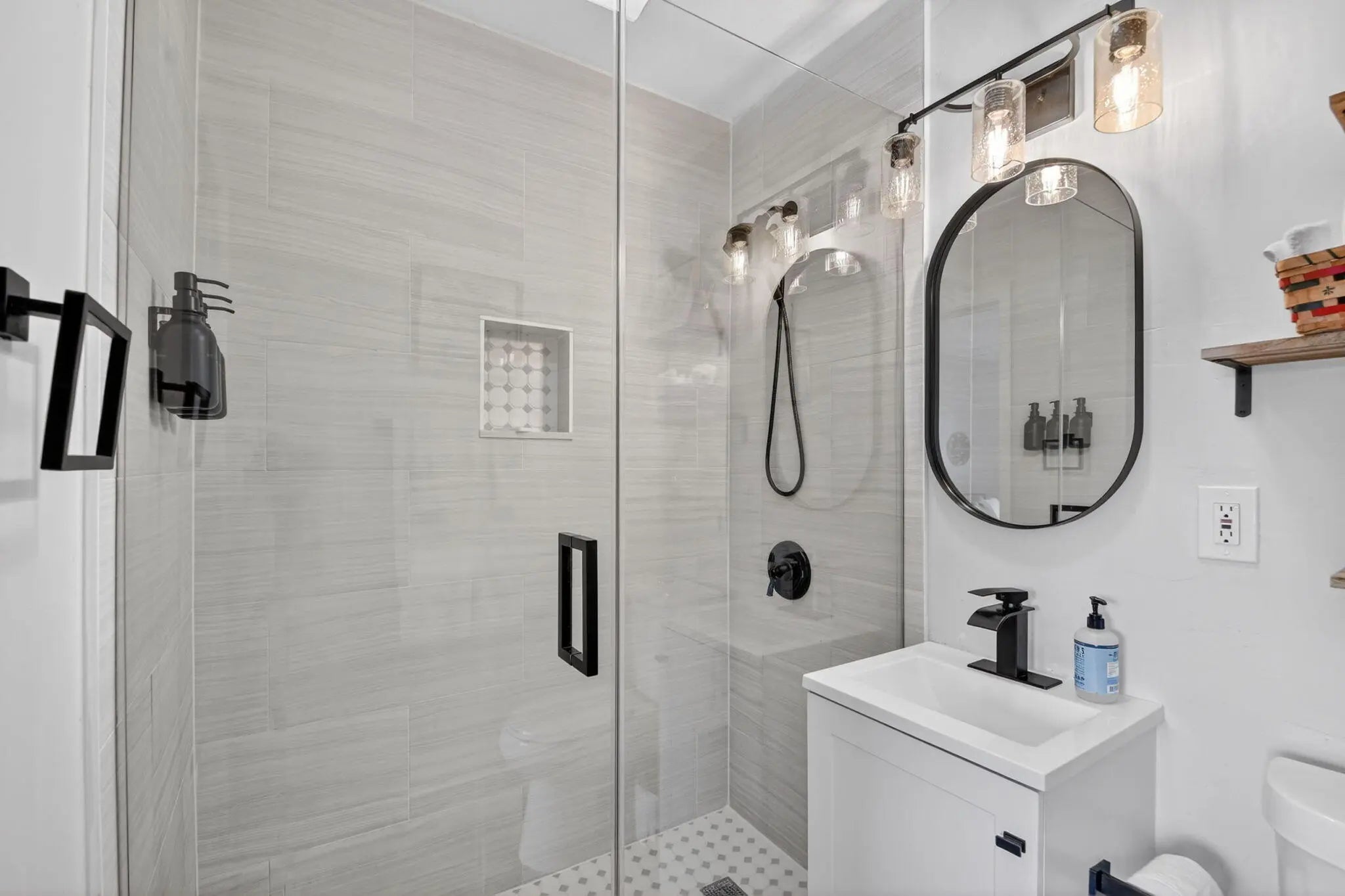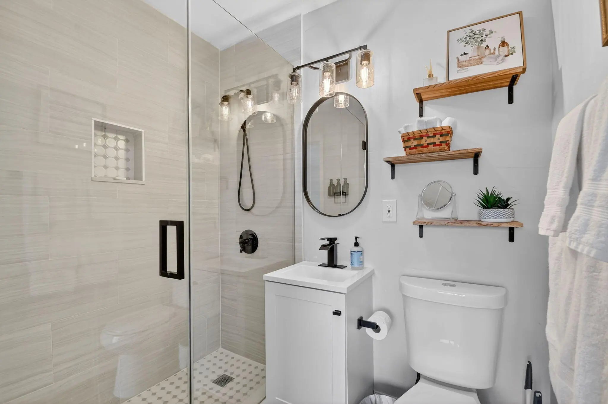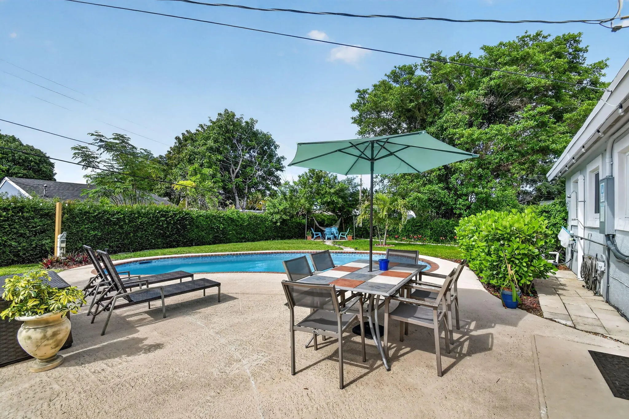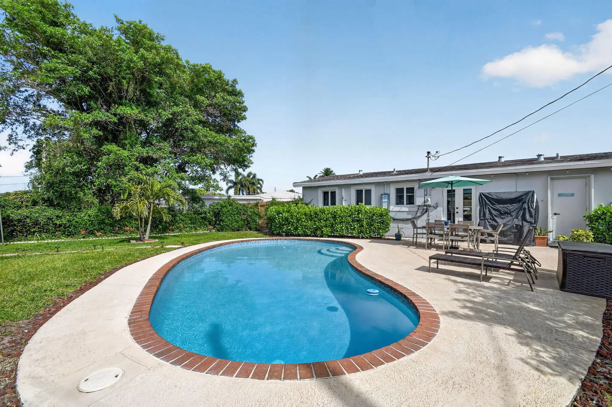Beautifully renovated 3-bedroom, 2-bath home offering modern finishes and versatile living. The spacious primary suite features a private living area, its own kitchen, and full bath—ideal for guests, extended family, or rental potential. Stylish wood-look tile flooring runs throughout the home. The main kitchen boasts brand-new stainless steel appliances, quartz countertops, custom white shaker cabinetry, and a sleek full glass backsplash. Both bathrooms have been fully updated with floor-to-ceiling tiled showers and glass enclosures. Major updates include A/C, water heater, and electrical panel—all replaced within the last two years. Step outside to your own private oasis featuring a pool, lush landscaping, fire pit, and full privacy fence. Currently operating as a successful Airbnb income property. From front door to backyard, this home delivers a true resort-style experience—don't miss this opportunity!