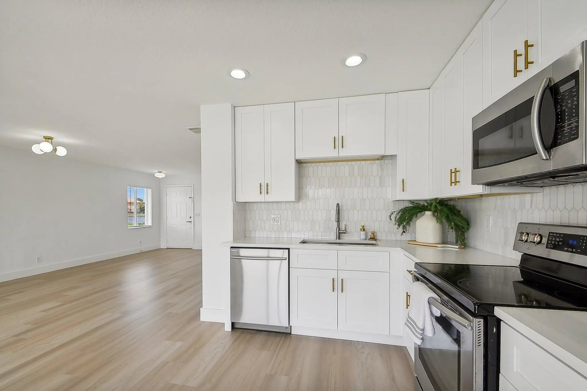 Oh what a view!! This tastefully updated corner townhouse has everything you've been looking for! 3 bedrooms, 2.5 bathrooms, den/office, porch with relaxing lake view! Interior just remodeled by professional designer. Water resistant vinyl floors, modern and functional kitchen with stainless steel appliances and quartz countertops. Upstairs you will find spacious master bedroom with modern ensuite and large walk in closet. 2 additional bedrooms upstairs plus and office/den and additional full bathroom. Gorgeous wrap around water views from almost every corner of this townhouse will help you relax and unwind at the end of your busy days. Centrally located, gated community with great amenities such as clubhouse, gym, basketball and tennis courts, olympic pool, children's playground and pool.