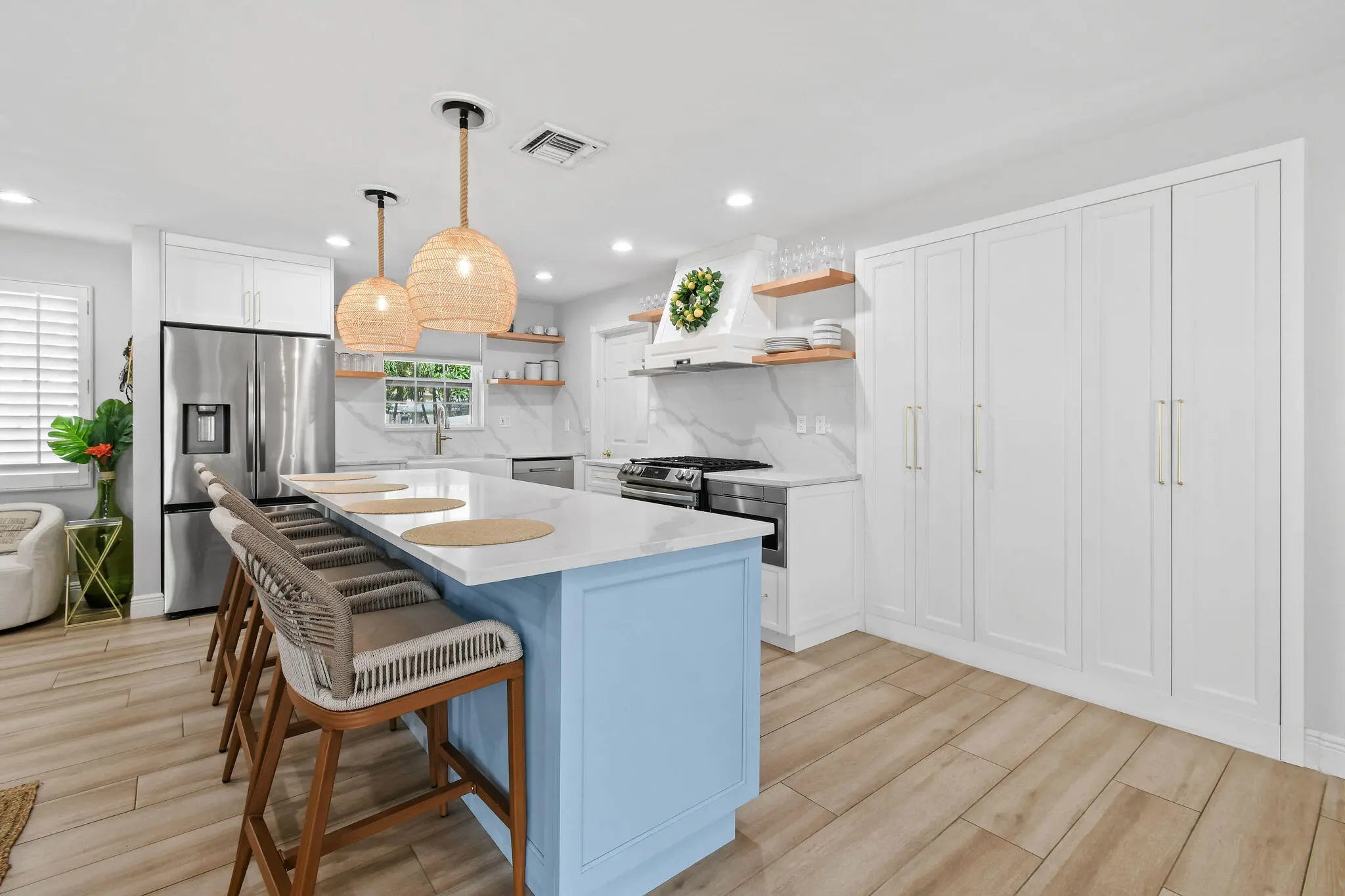 This beautifully updated 4-bedroom, 3-bath home offers an open floor plan perfect for both everyday living and entertaining. Nestled directly on the lake, the property features a private dock—ideal for boating, fishing, or simply enjoying the stunning water views. The backyard is designed for relaxation and fun, complete with a sparkling pool and a tiki hut, creating the ultimate setting for hosting gatherings or unwinding with family. Inside, the spacious layout is filled with natural light and modern updates, seamlessly blending indoor comfort with outdoor beauty. Located in the highly desirable Lake Clarke Shores community, this home combines serenity with convenience—just 10 minutes from Palm Beach Island, downtown West Palm Beach, and Palm Beach International Airport.