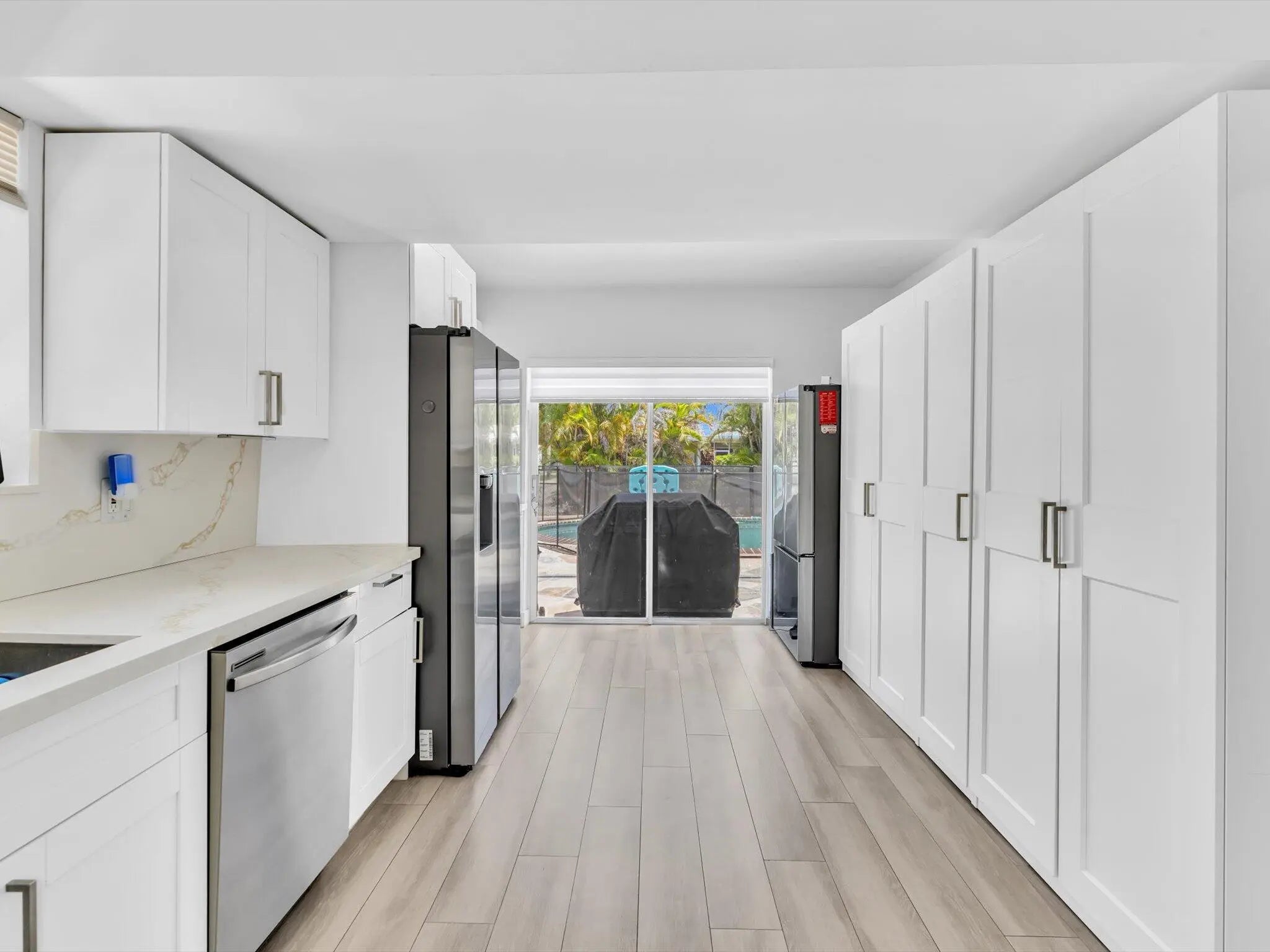 Fully transformed with practically every inch updated, this stunning home offers modern designer finishes and true move-in-ready living. An additional guest suite with a private bathroom is perfect for guests, a home office, or extended family. Enjoy wood-look tile flooring, LED lighting, closet systems, and beautifully updated living spaces throughout. The redesigned kitchen is both stylish and functional, featuring white shaker cabinents, updated appliances, ample pantry space, undermount lighting, and a pot filler for added convenience. All bathrooms have been renovated, while the roof, plumbing, electrical, and A/C have also been updated. Outside, enjoy a private backyard retreat with a resurfaced pool, new pool fence, and space to entertain, relax, and enjoy South Florida living. 4 Bedroom Main House + Additional Guest Suite Major updates include a 2023 roof, all new PVC plumbing, updated electrical including interior and exterior panels, newer A/C, and a new mini-split in the primary bedroom. The pool has been resurfaced and includes a new pool fence. Interior upgrades include a fully remodeled kitchen along with 3 completely remodeled bathrooms, wide-plank wood-look tile flooring throughout, LED lighting, new front doors, closet systems, a Nest thermostat, and more!