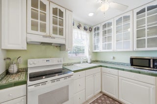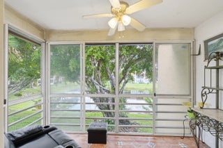 Beautifully upgraded corner unit in Golden Lakes with a stunning water view! This well-maintained home features a custom arched built-in and French doors leading to a tiled, vinyl-enclosed patio overlooking the water. The kitchen features white cabinets with glass fronts, a built-in pantry, tiled countertops, a brand-new smooth-top range, and a built-in wine rack. A new washer/dryer combo was installed inside the unit. Both bathrooms have been tastefully updated and feature Italian sinks, marble countertops, and new toilets. Wood floors run throughout the home. The A/C was replaced in 2021 and is located in a gated 55+ community that offers an active clubhouse, pool, fitness room, and more.