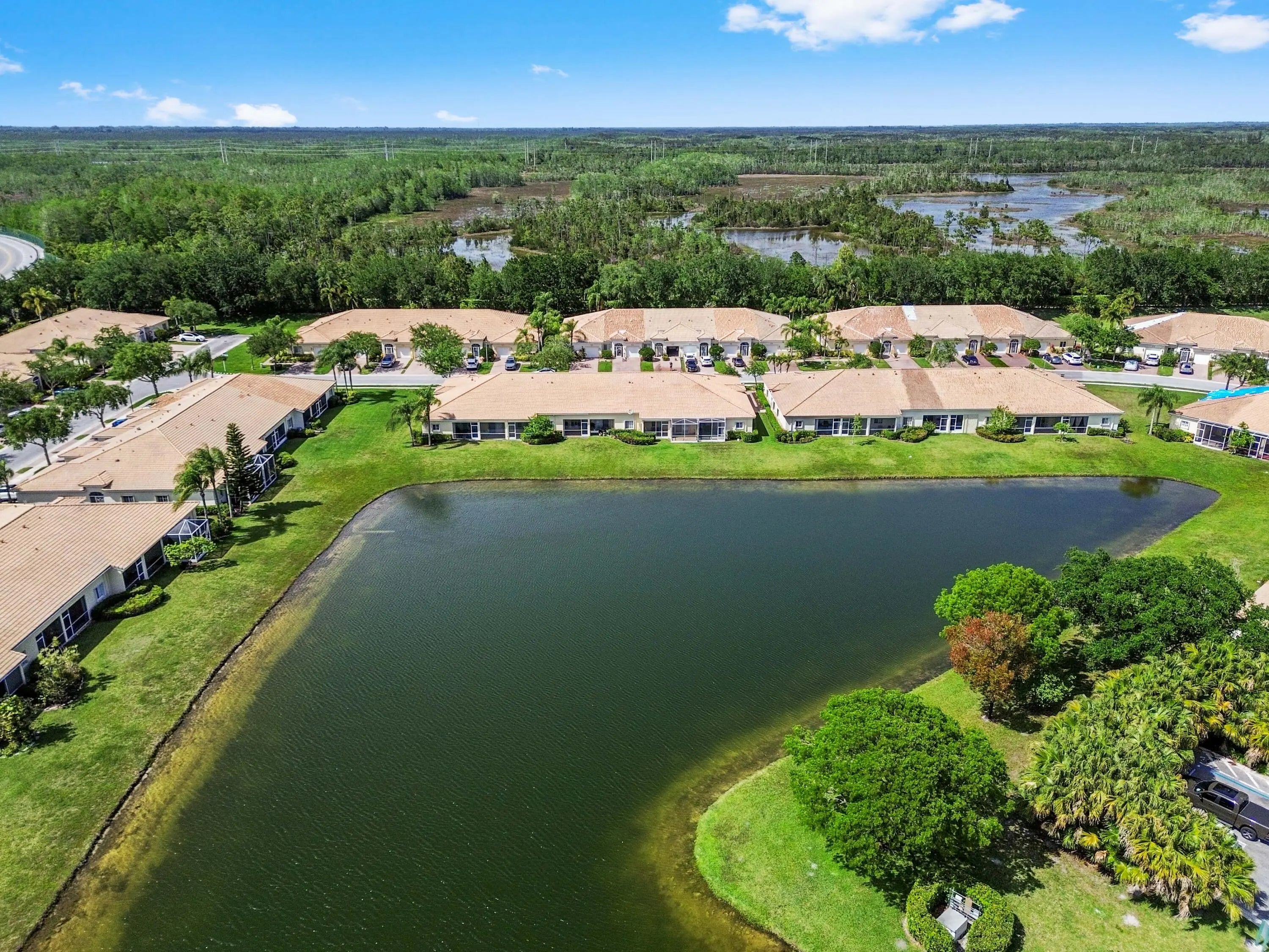 Experience serene lakefront living in this immaculately maintained 55+ villa featuring all new appliances and fresh paint throughout. Relax on your extra large, south facing covered and screened patio while enjoying sprawling, full-length lake views. Take advantage of extra living space with the den - perfect for an office or easily convert to a 3rd bedroom. Spacious 1 car garage with washer/dryer, and 2 car driveway. Located in the prestigious guard-gated 55+ Baywinds community, residents enjoy resort-style living with a spectacular, fully staffed clubhouse, three pools (lap, lounging, and resistance), fitness center, hot tub, saunas, tennis, pickleball, bocce, shuffleboard, billiards, library, ballroom, card rooms, and a full calendar of clubs and social activities. Baywinds offers a fully staffed resort style clubhouse featuring a ballroom with stage, theater, media room, library, billiards room, multiple card rooms, arts and crafts studio, and men's and women's locker rooms with saunas. The community includes three pools—a lap pool, a large lounging pool, and a resistance walking pool—along with a hot tub/spa. Outdoor amenities include four bocce courts, four lit and one unlit tennis courts, four lit pickleball courts, four shuffleboard courts, and outdoor fitness areas. The fitness center offers full gym facilities, an aerobics studio, and group wellness classes. Baywinds also hosts an extensive lineup of clubs and social groups, including the Men's Club, Women's Club, Theater Arts Group, Bocce Club, Tennis Club, Clay Artisans, Craft Group, New York Club, Hadassah, and the Community Emergency Response Team (CERT), and more!