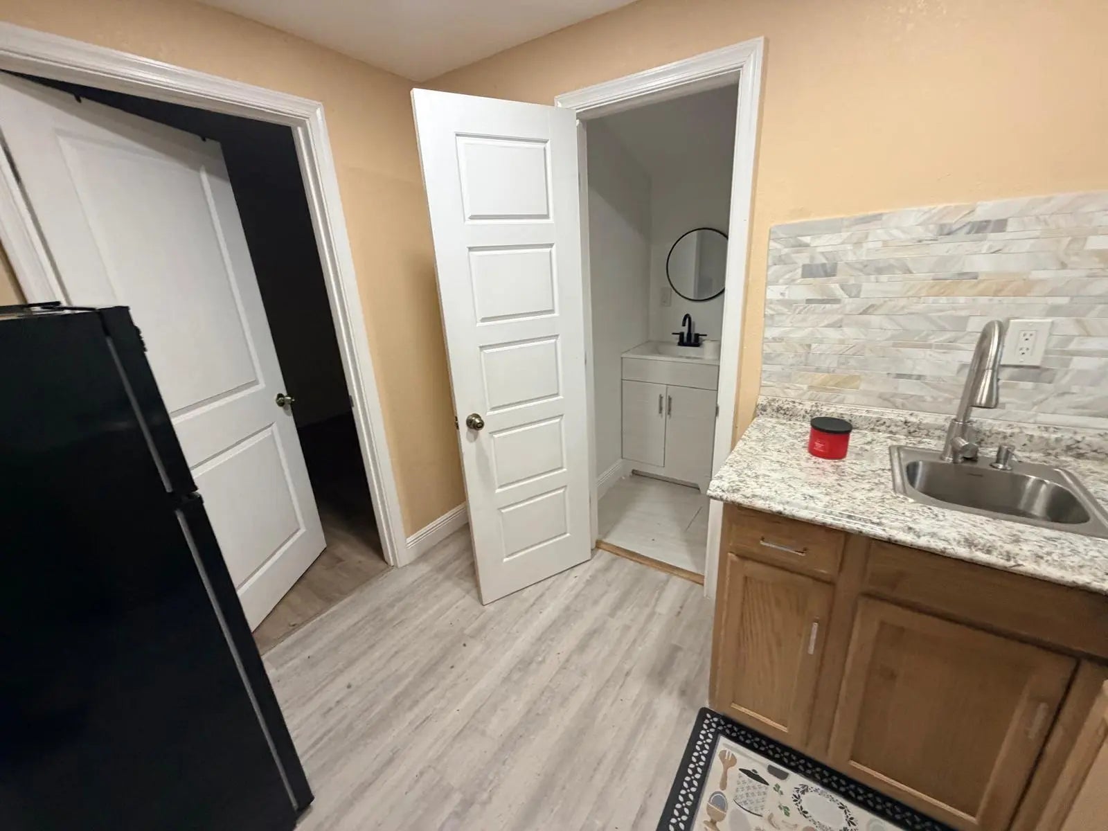 3/1 for $2650 monthly. Water and Electricity are included. This house sits in a quiet neighborhood. The yard is fenced in and is pretty big with a big back yard. There is a shed in the back with a 1 bedroom , 1 bath, and a small kitchenette. It will be listed for rent for $1100 monthly. If renters want to rent it with the house, the total price for everything will be $3500 monthly. The locked door in the kitchen leads to the garage. The garage has been converted into a 1 bedroom efficiency. It currently has a tenant.