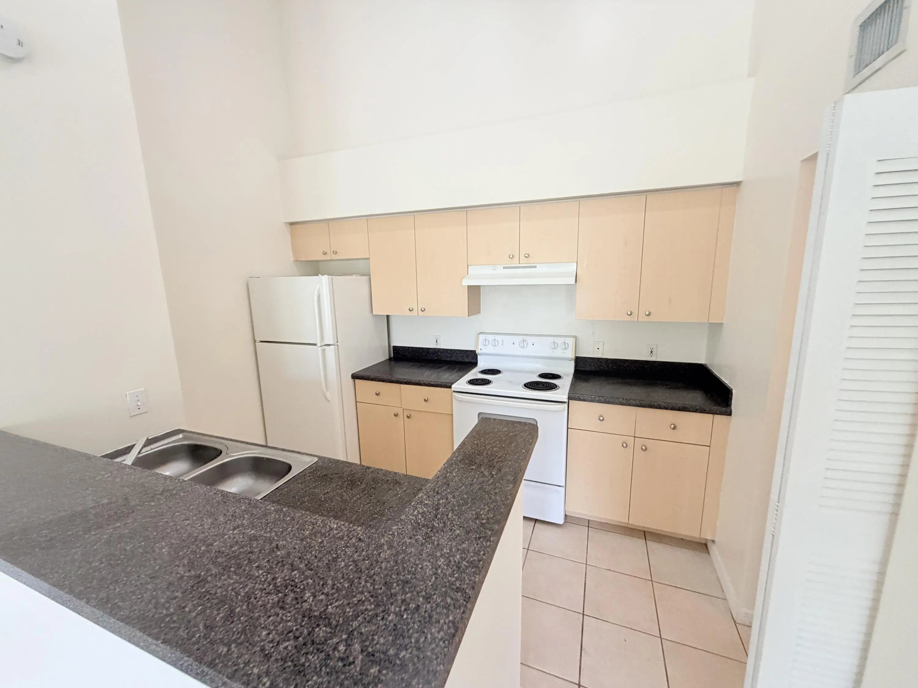 Don't miss the opportunity to live in this charming garden-view unit located in the gated community of Emerald Isle! This 1 Bed/1 Bath unit features high ceilings, new laminated floors throughout, and an in-unit washer/dryer. Modern comforts like A/C, refrigerator, and ceiling fans ensure added comfort. The unit is currently being renovated and will be delivered fully updated. Enjoy resort-style amenities including a pool, clubhouse, gym, tennis and racquetball courts, and recreation rooms. Conveniently located just minutes from shopping, entertainment, nightlife, and all that West Palm Beach has to offer. This warm, quiet, family-friendly neighborhood is perfect for you and your loved ones. Excellent maintenance and a well-kept community make it an ideal place to call home.