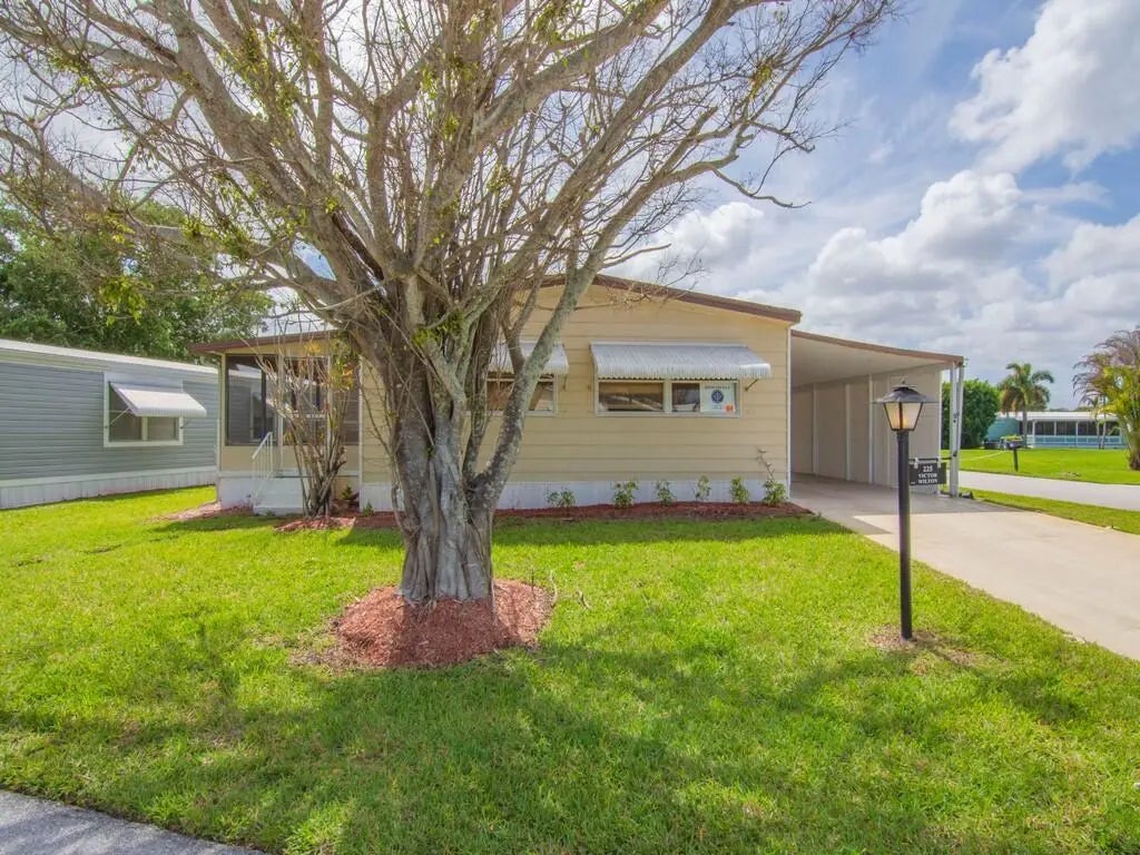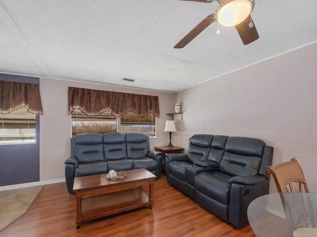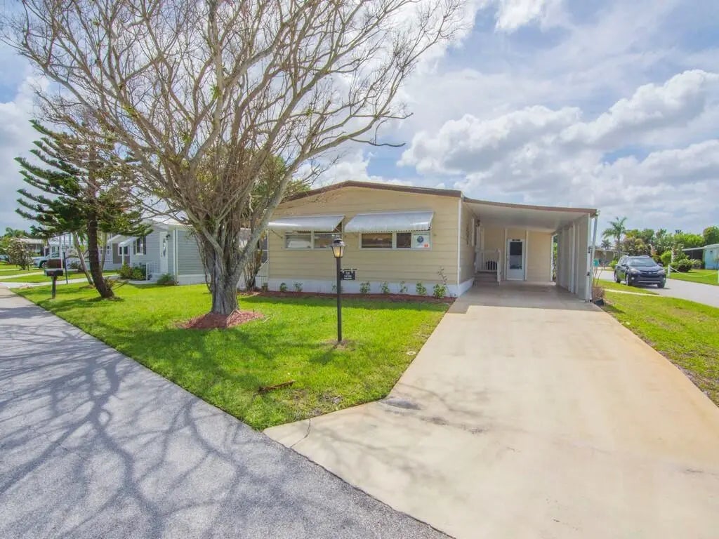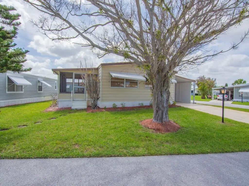 Welcome to your coastal retreat in the heart of Jensen Beach! This beautifully maintained home offers the perfect blend of comfort, privacy, and Florida charm. Step inside to an inviting, light filled layout featuring spacious living areas, updated finishes, and a seamless flow ideal for both everyday living and entertaining. The kitchen offers generous counter space and storage, opening to the main living area for effortless hosting. The primary suite provides a peaceful escape with ample closet space and a well appointed bath. Second bedroom is generously sized, perfect for family, guests, or a home office. Located just minutes from the beach, shopping, dining, and all the charm of downtown Jensen Beach. This home offers the lifestyle you've been searching for. Lot rent is $805.
