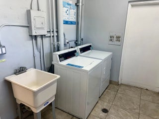 Great One bedroom apartment and one and a half bathroom in Hallandale. Great location! Laminate wood floors throughout, just painted, ready to move in. Very spacious unit with balcony overlooking the garden.