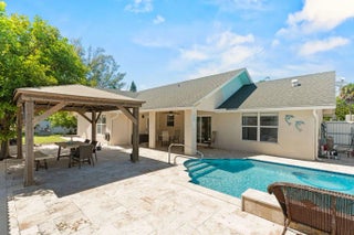 I think you are going to LOVE this Fantastic WPB, 3 BR +Office/den, 2 baths, Pool home..its a Gem! Kitchen updated & has gorgeous granite tops. Both bathrooms have been updated. Love the indoor Laundry rm. 2 C Gar. Split floor plan, no carpet, its completely tiled. Large driveway, + a cul de sac location. No HOA fees. .20 of acre with Metal fenced back & side yards. Great Back Patio & Pool area that has travertine marble. Perfect to Entertain, BBQ & spend time & Relax. Really nice Gazebo is about 2 years old. Has Avocado, Mango, Soursop, & Cuban Plum trees.