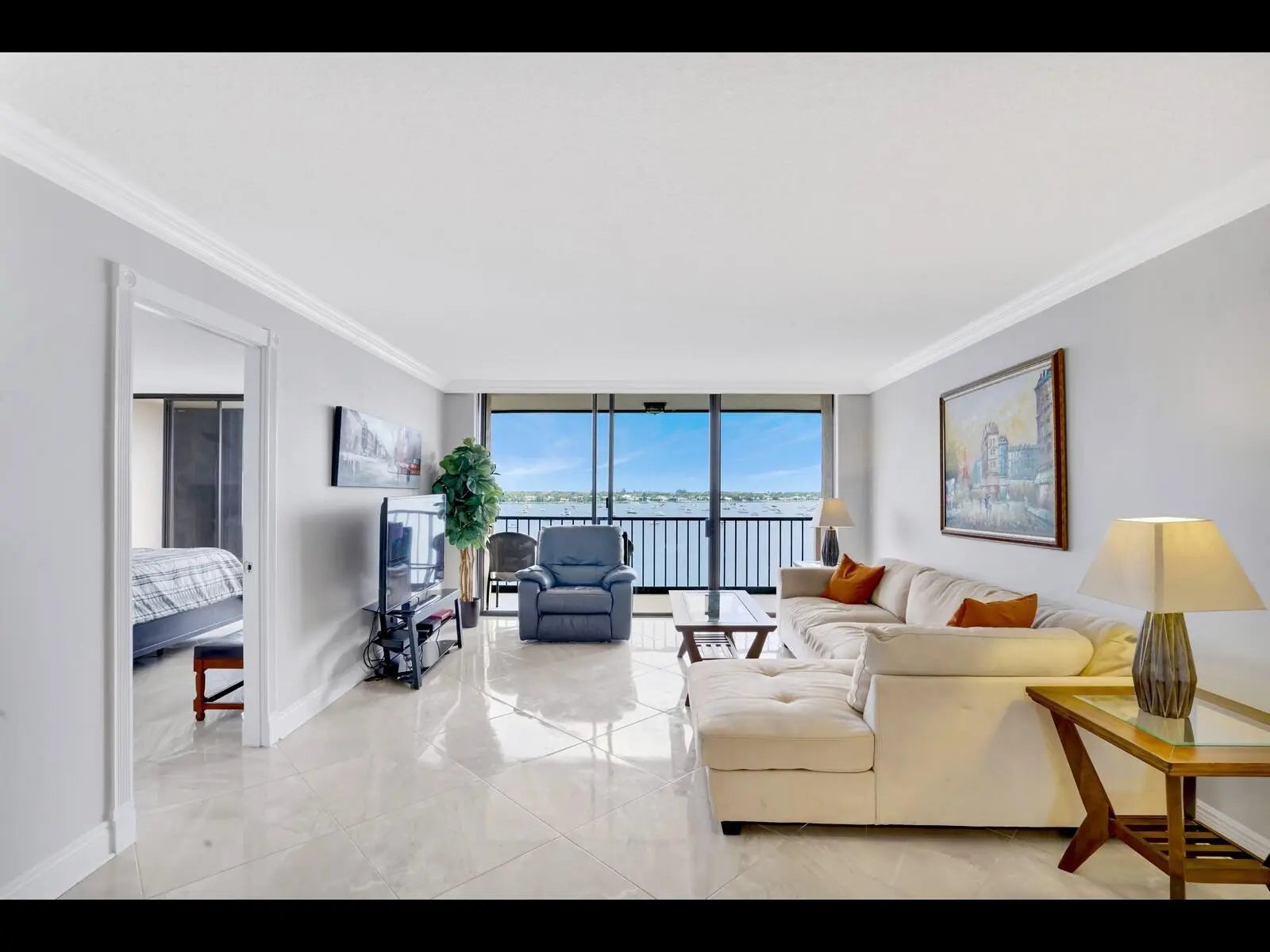 SPECTACULAR views from this amazing unit in a community that offers a manned gate, a heated swimming pool with a salt water system, tennis, pickelball, a fitness center, a club room and a fishing pier. Placido Mar has done extensive renovations and is nearly complete. Buiilding is located near restaurants, shops, Palm Beach Island, the Palm Beach International Airport and The Square. Gorgeous views can be had from both bedrooms, the living room and the expansive covered porch.