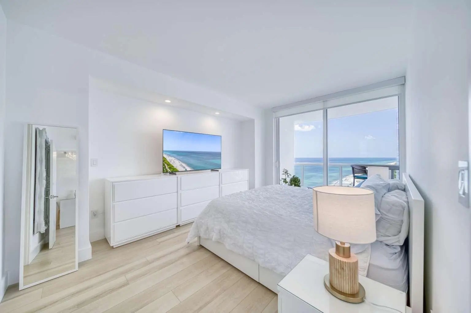 Modern, fully renovated unit in a full-service building — HOA decreasing to just $1,000 next 2026 year! This beautifully upgraded 1-bedroom, 1.5-bath residence on the 24th floor offers views of the Atlantic Ocean, downtown Miami skyline, and Biscayne Bay. Step inside to a sleek modern interior with an open floor plan, floor-to-ceiling windows, and a spacious private balcony where you can enjoy both sunrise and sunset. The home features a contemporary kitchen, stylish updated bathrooms, and bright, living spaces designed to maximize the incredible views. Akoya offers resort-style amenities including direct beach access with full service, an oceanfront fitness center, racquetball and tennis courts, sauna, steam room, heated pool, outdoor BBQ area, business center, lounge, valet parking, and 24-hour security. Located just 15 minutes from Miami International Airport, South Beach, and Bal Harbour Shops, Akoya is ideally situated in the heart of Miami Beach. New designer pool is completed, with in peogress elevators replacement and full lobby, floor, walls renovations underway, inspired by a 5-star hotel standarts! Don’t miss this rare opportunity to own a move-in-ready oceanfront home in one of Miami Beach.