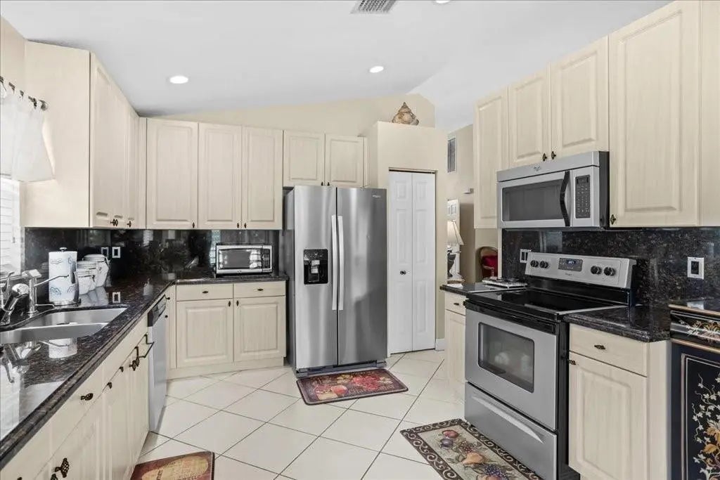 Welcome to this stunning home in a gated community and golfer’s paradise across from Westchester Country Club. This residence features a Barrel tile roof, paver driveway, and a screened front sitting area for inviting curb appeal. Inside, enjoy vaulted ceilings, recessed lighting throughout, and hardwood floors in the bedrooms. The gourmet kitchen is outfitted with granite countertops, stainless steel appliances, and 42-inch upper cabinets. The master suite boasts a tub and separate shower, while the A/C is only 3 years old. Additional amenities include accordion shutters, a screened back patio, and an epoxy-finished garage. Schedule your private tour today!