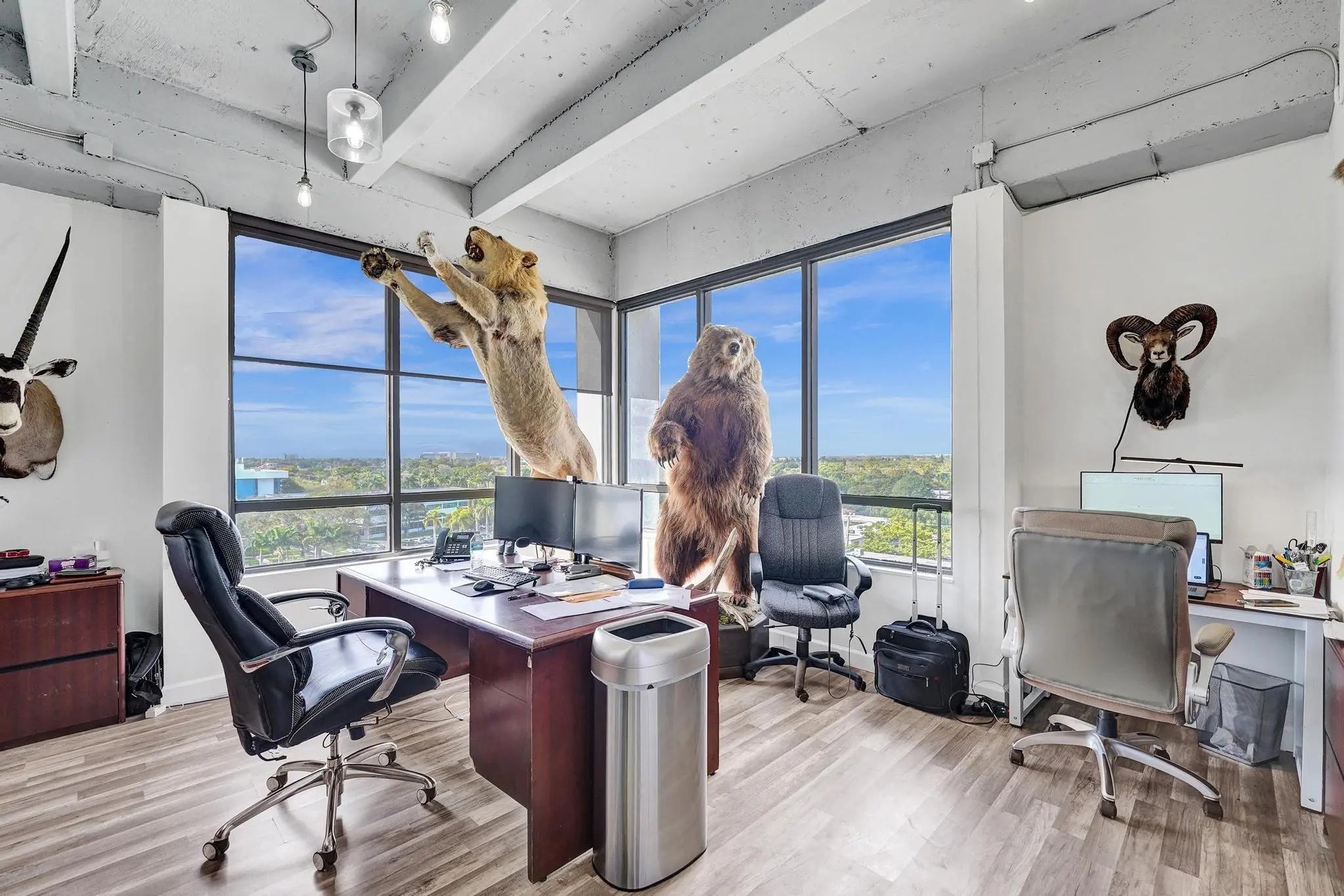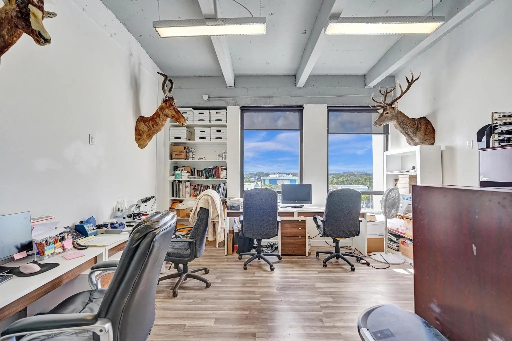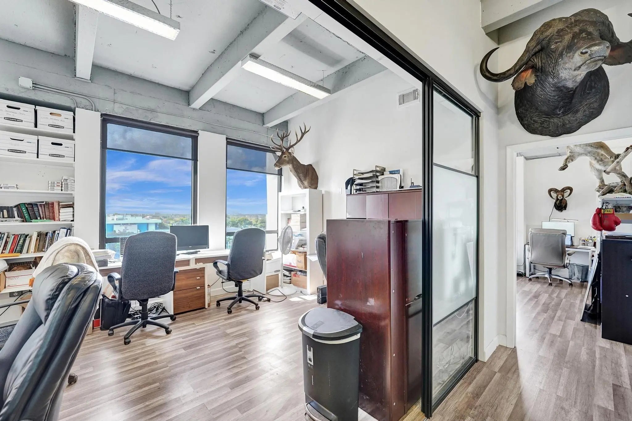 Incredible opportunity to purchase two adjoining commercial spaces in the heart of Hollywood. Unit 700 is 930 sf and Unit 701 is 1350 sf for a total of 2,280 sf. The units can be easily combined. Both are corner units with lots of windows, lots of natural light and amazing 180 degree views from the penthouse level. The suites are currently built out with a total of 7 offices, two reception areas, a large bullpen/open area and storage room. The property comes with 4 assigned parking spaces and ample open and guest parking. The building has a beautiful-remodeled lobby with receptionist.