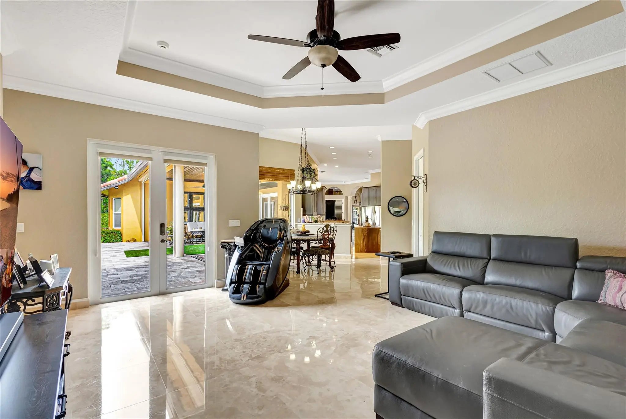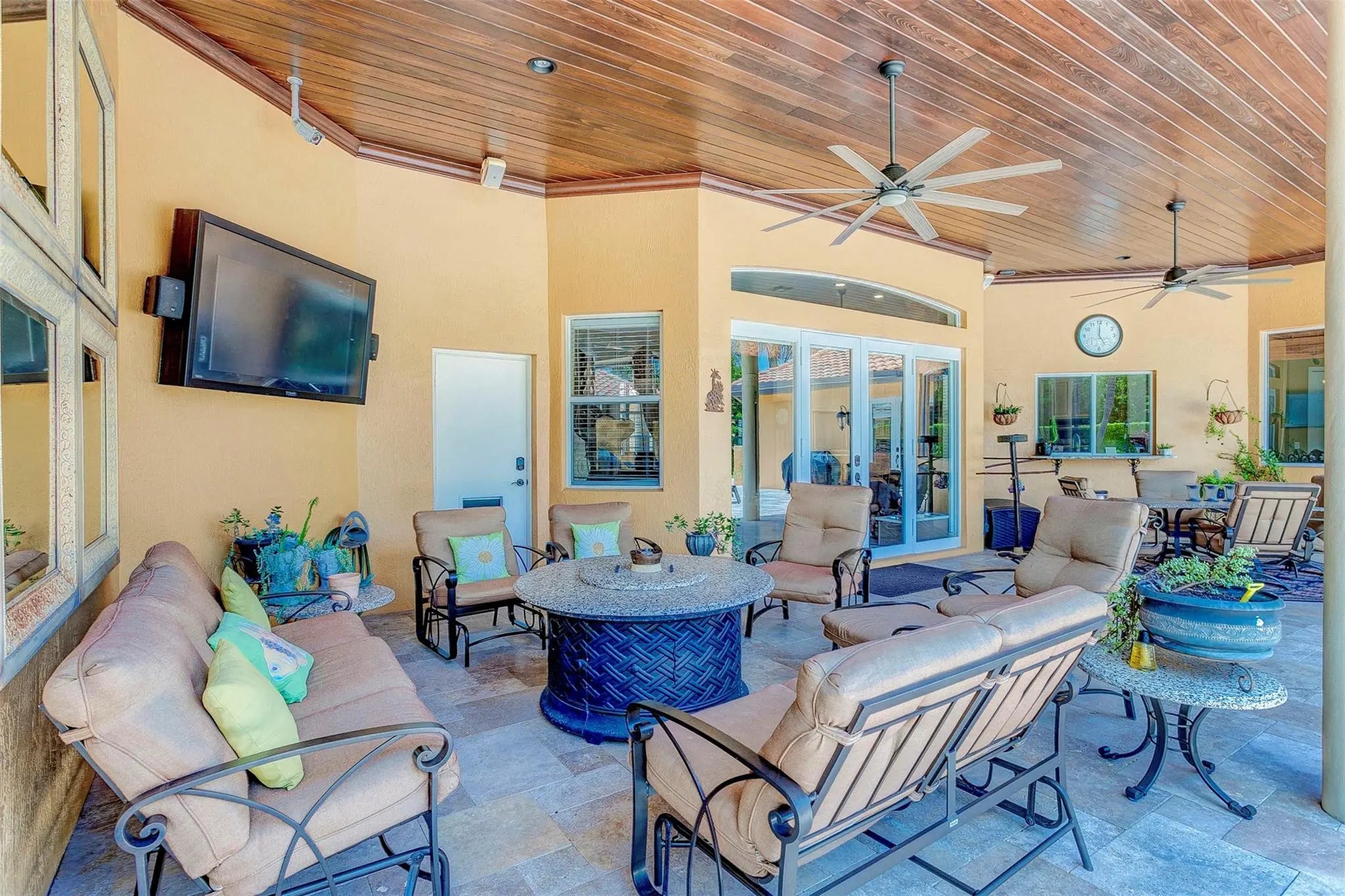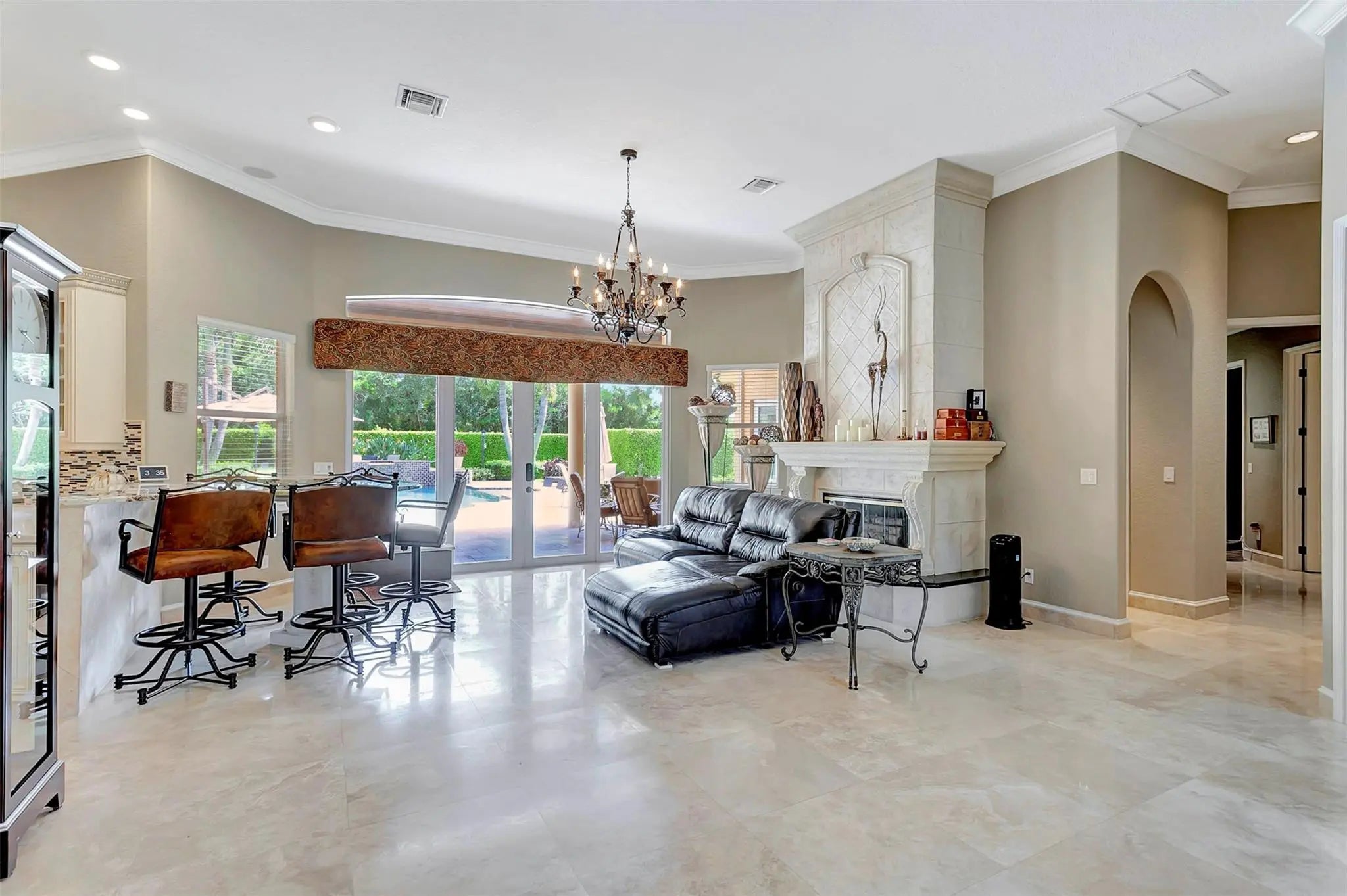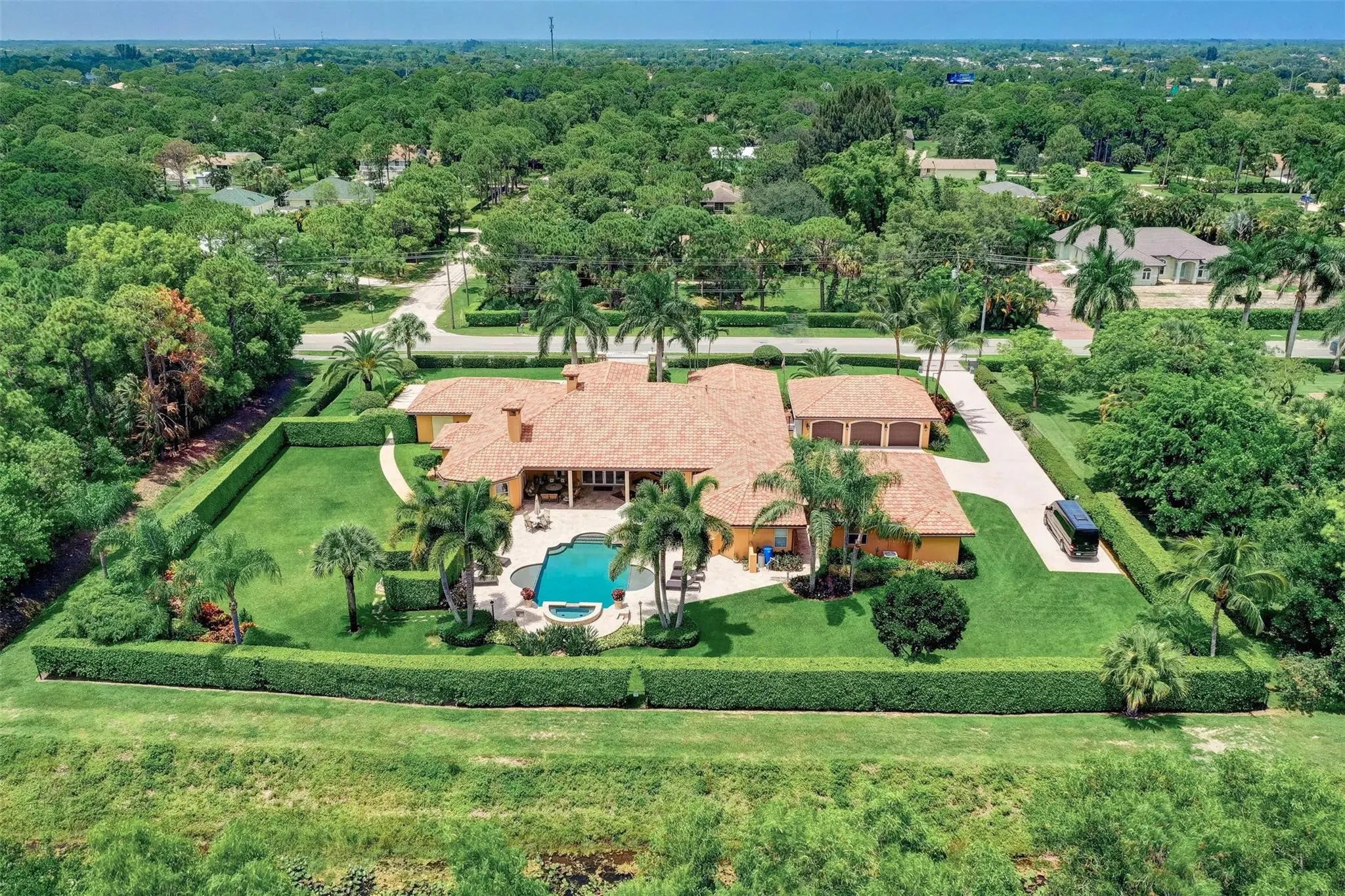 Come check out this piece of paradise! Main house is a beautiful 5 bedroom, 4 1/2 bathroom with gated entrance, 24 in marble floors, recently upgraded kitchen, and a detached 3 car garage. The Primary bedroom features a walk in shower, jacuzzi tub, walk in closets with built ins, and a wood burning fireplace. The family room and kitchen have tranquil views of the saltwater pool, oversized spa, open patio, and gas fire pit in the backyard. You can also enjoy your own movie theater with built in speakers and screen. Don't forget the storm shutters, generator, security cameras, and 3 new AC units. Guest house is a detached 2 bedroom, 2 bathroom house with its own gated entrance, extra parking for an R/V or boat with power pedestal, and 3 car garage with a half bath and additional storage.