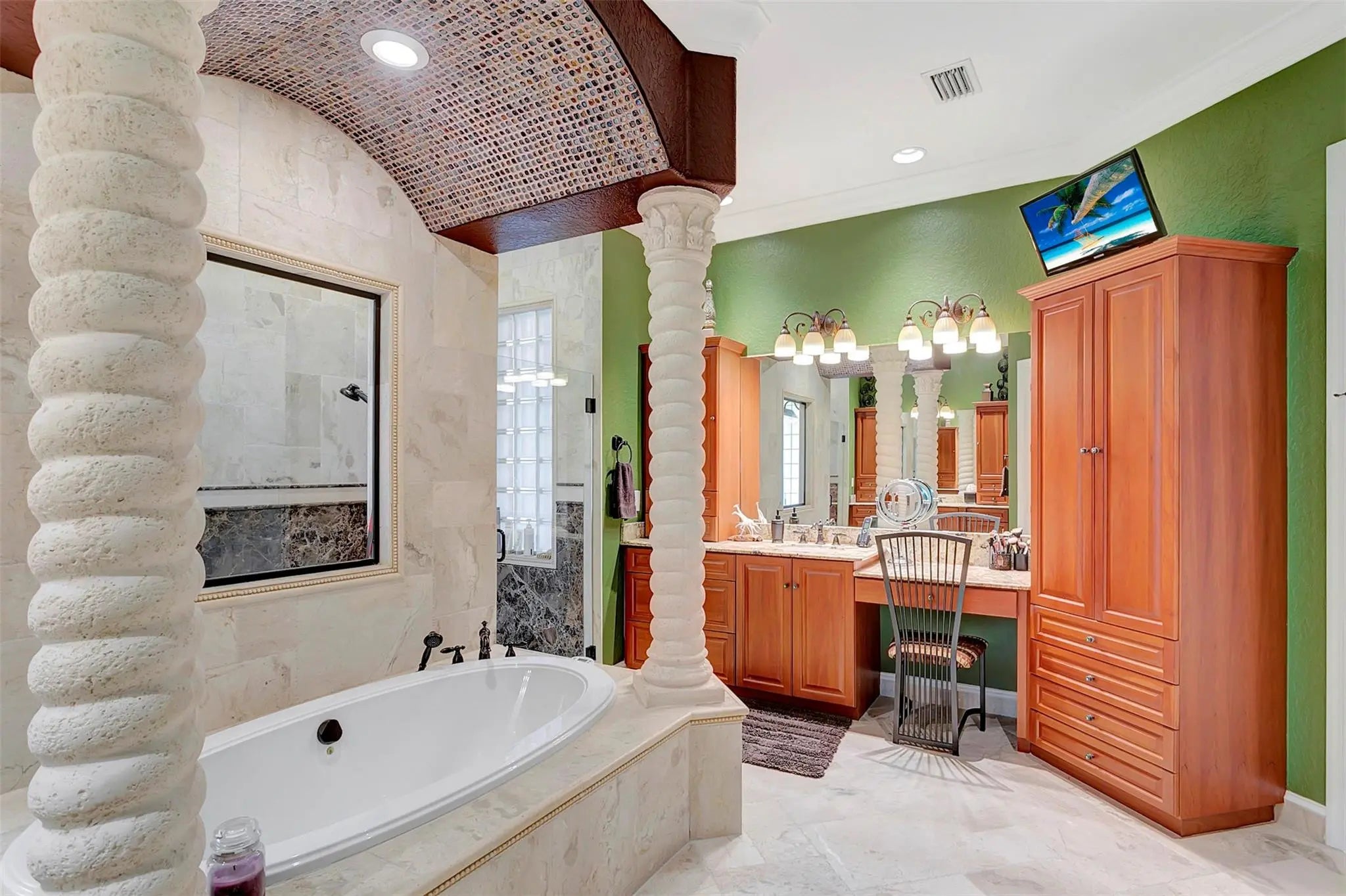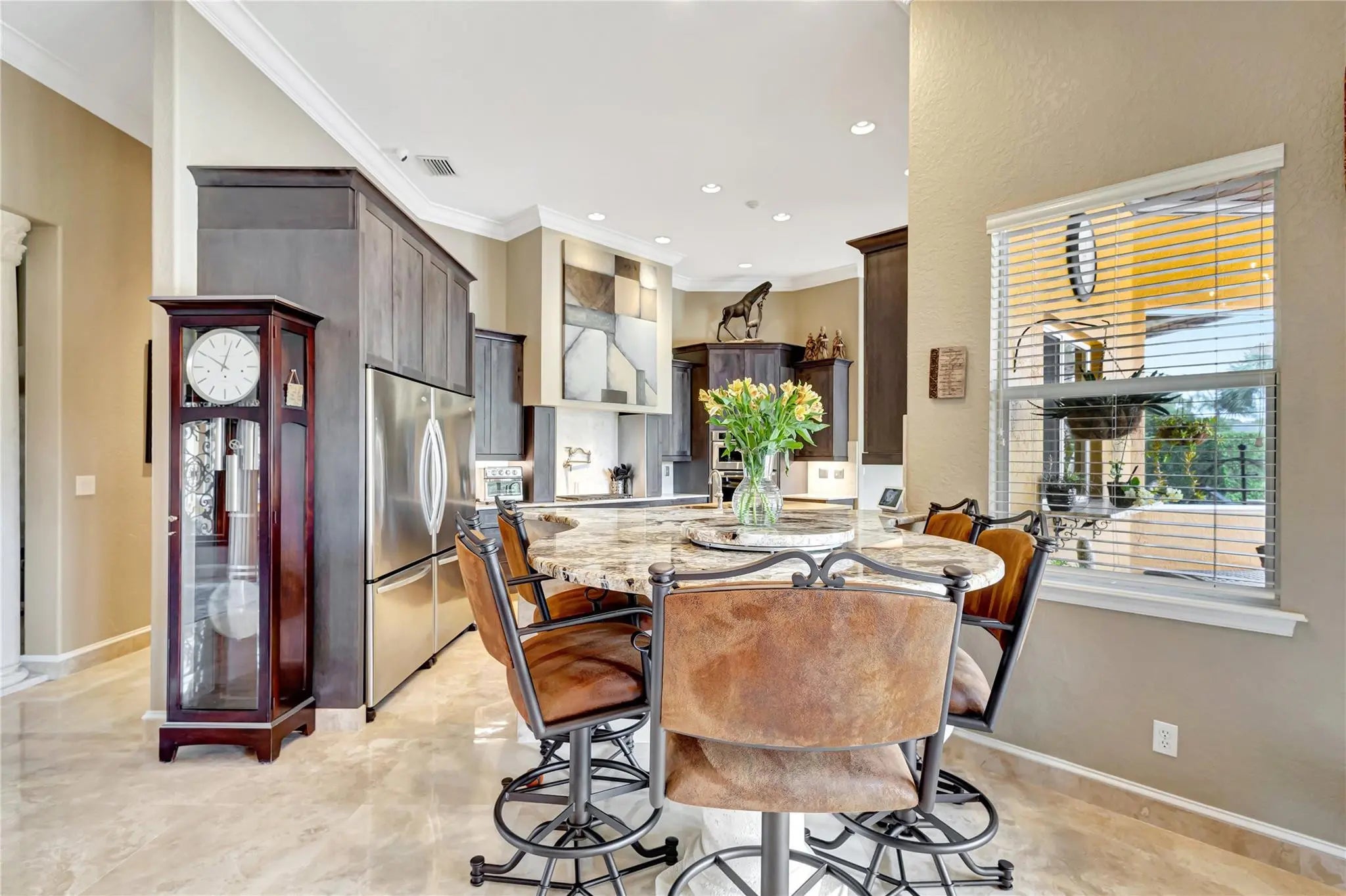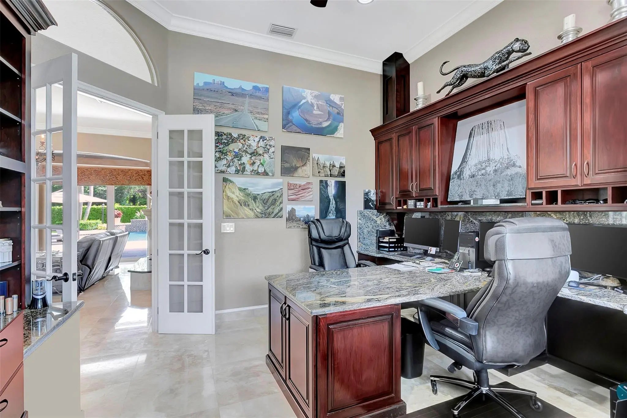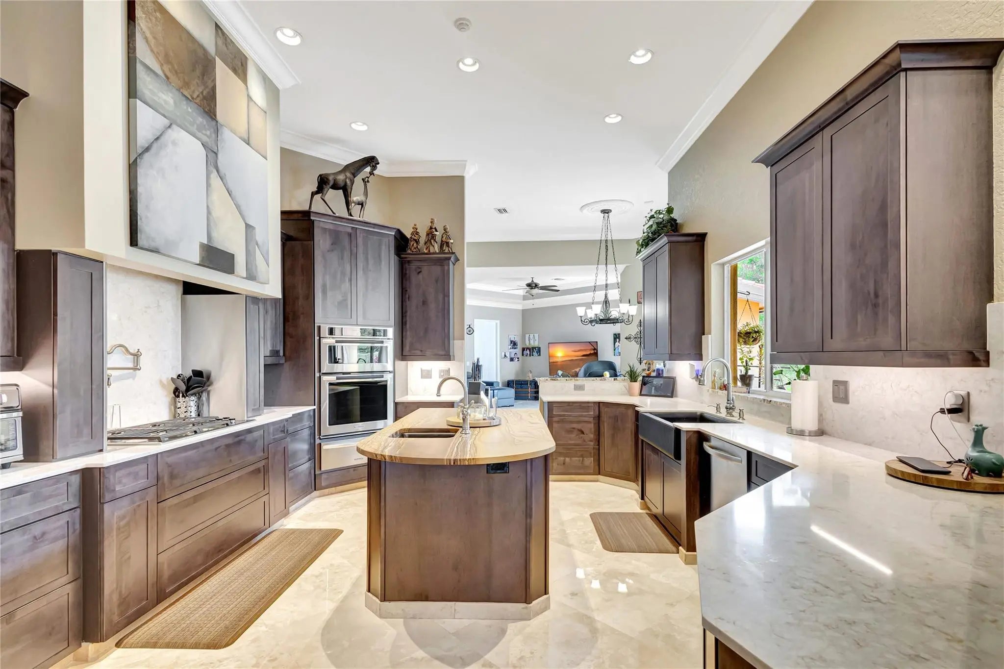 Come check out this piece of paradise! Main house is a beautiful 5 bedroom, 4 1/2 bathroom with gated entrance, 24 in marble floors, recently upgraded kitchen, and a detached 3 car garage. The Primary bedroom features a walk in shower, jacuzzi tub, walk in closets with built ins, and a wood burning fireplace. The family room and kitchen have tranquil views of the saltwater pool, oversized spa, open patio, and gas fire pit in the backyard. You can also enjoy your own movie theater with built in speakers and screen. Don't forget the storm shutters, generator, security cameras, and 3 new AC units. Guest house is a detached 2 bedroom, 2 bathroom house with its own gated entrance, extra parking for an R/V or boat with power pedestal, and 3 car garage with a half bath and additional storage.