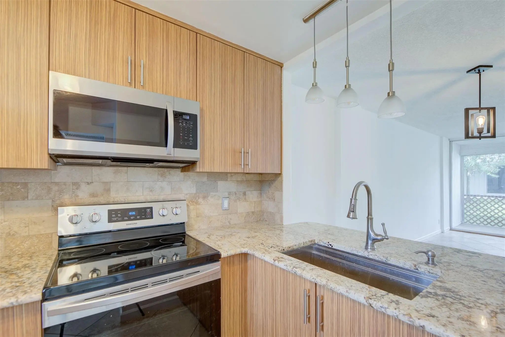 INVESTORS SPECIAL! Tenant in place until August 31, 2026. FIRST FLOOR 2/2 condo in East Oakland Park area with full reserves and no assessments! Two pets no weight limit. This first-floor condo has two spacious bedrooms and two updated baths, hurricane windows and tankless water heater. The open concept living area is flooded with natural light from sliding glass doors that lead to a private patio. Inside, the updated kitchen boasts modern finishes, stainless-steel appliances, granite countertops, ceramic tile floors and designer fixtures open to the dining and living areas. Each bedroom is designed with comfort in mind, offering ample closet space and en-suite access to the updated bathrooms. Clubhouse locker rooms each have steam room and sauna! Like a single-family home for $175K!