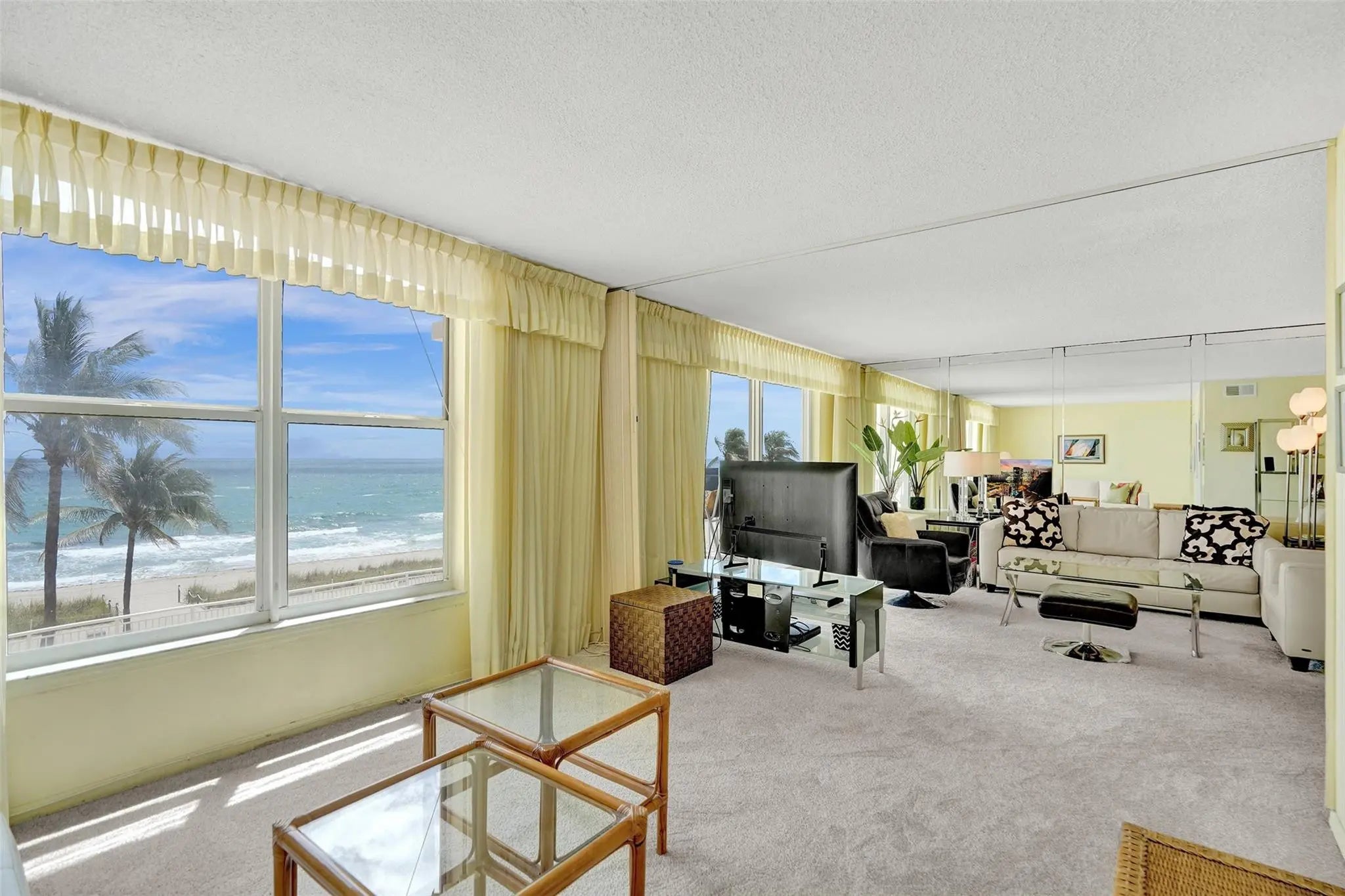 INCREDIBLE DIRECT OCEAN VIEW FROM OPEN BALCONY AND LIVING SPACE, INTRACOASTAL VIEW FROM YOUR KITCHEN WINDOW, OPEN KITCHEN WITH PLENTY OF STORAGE SPACE, DIRECT OCEAN VIEW FROM PRIMARY BEDROOM, BOTH BEDROOMS HAVE WALK-IN CLOSSETS, IMPACT WINDOWS AND SLIDING DOOR, TURNKEY UNIT, EXTRA STORAGE, PLENTY OF GUEST PARKING, WASHER AND DRYER ARE ALLOWED TO BE ADDED TO UNIT, PRIVATE BEACH ACCESS, EXERCISE ROOM, COMMUNITY ROOM, BEAUTIFUL BEACH AREA WITH GRILLS, SHUFFLE BOARD. LAUNDRY FACILITY ON EVERY FLOOR, MINUTES TO POMPANO AND DEERFIELD BEACH, NEAR PLENTY OF RESTAURANTS, GOLF, TENNIS AND PICKLE BALL. 40 AND 50 YEAR RECERTIFICATION ARE COMPLETED.