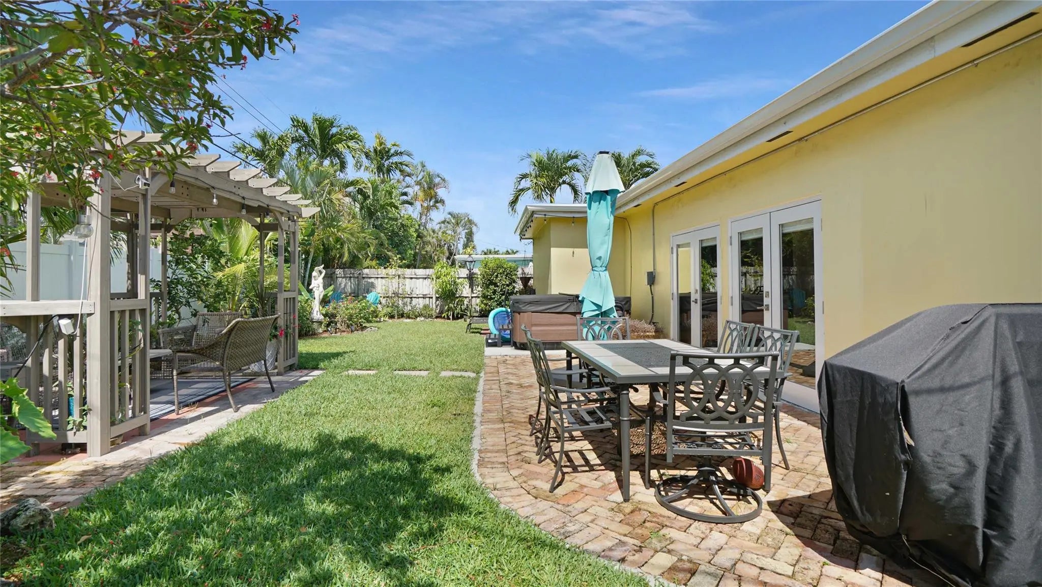 Renovated 2BR/2BA home in Oakland Park’s desirable Royal Palm Acres. This substantially remodeled residence features tile flooring, French doors, a spacious open kitchen with gas range, and updated baths. The lush backyard includes a patio, fruit trees, fenced perimeter, and room for a pool. Exterior features include impact glass, high-impact doors, shed, and extra building/shed for storage or workspace. No HOA, circular driveway, carport, and space for RV/boat parking. Quiet street close to major roads, parks, and shopping.