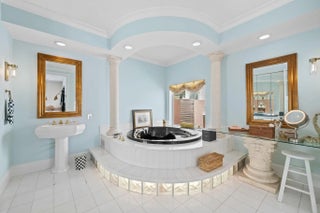 Boater’s paradise! This stunning one-story waterfront home offers 4 beds, 4.5 baths, and 3,300 sq ft of luxury living. A grand foyer, vaulted ceilings and an open-concept layout flow seamlessly to the outdoors. Boasting 100' feet of ocean-access frontage NEW concrete dock & sea-wall, 30' floating dock, and upgraded power—perfect for your yacht. Entertain by the resort-style Diamond Brite pool with travertine marble deck, wood paneled ceiling patio. The chef’s kitchen dazzles with Bosch & Sub-Zero appliances, island with bar seating, and sleek design. The spacious primary suite boasts custom built-ins, jetted tub, dual vanities, and a newly tiled cabana bath. Plus: 3-car garage and new tile roof (2024). Coastal luxury at its finest—bring your boat and live the dream!