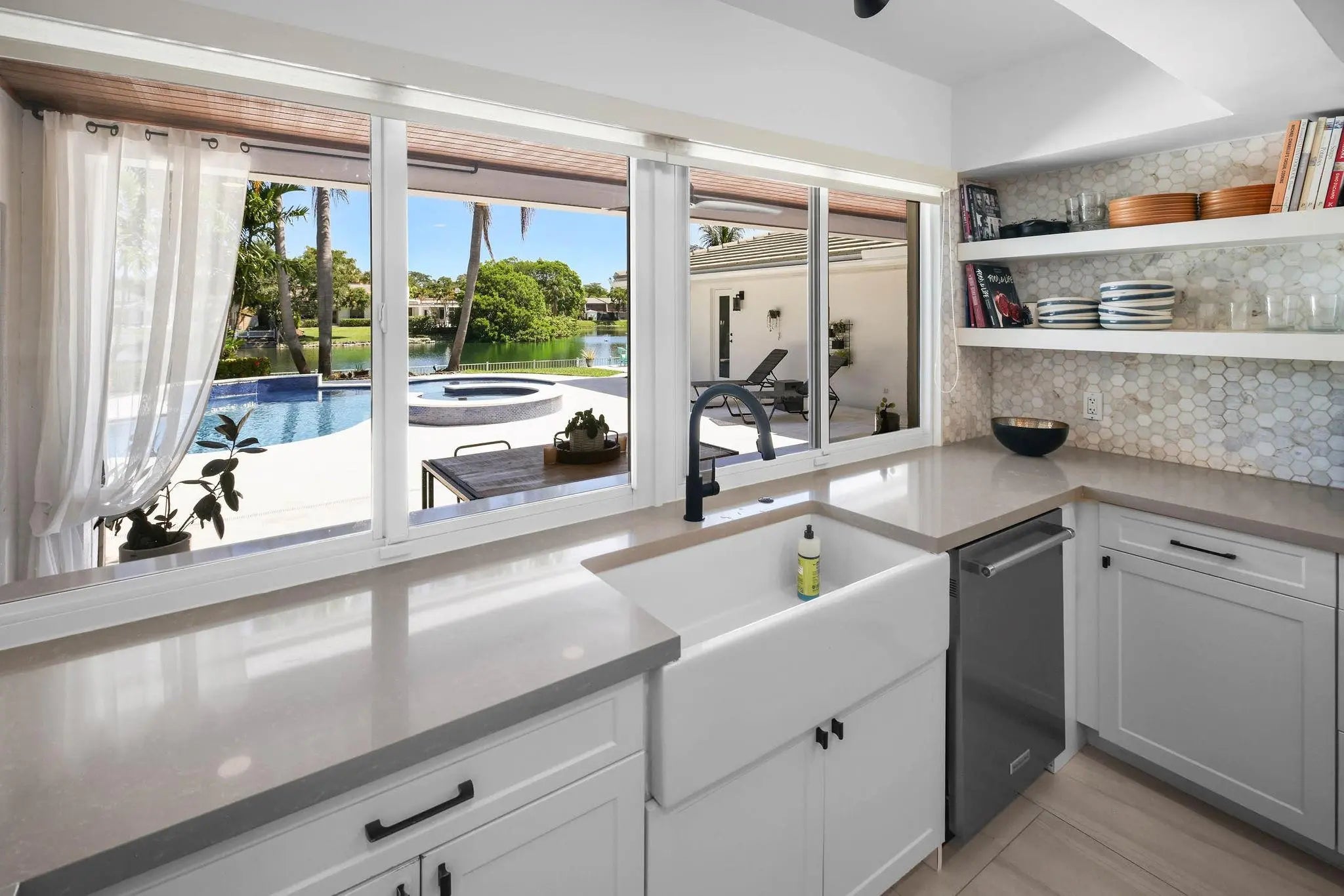 Located in the coveted Lakes of Emerald Hills, this fully renovated 6-bedroom, 5-bath home plus office offers timeless style and everyday comfort. Set on a peaceful lakefront lot, it’s move-in ready with thoughtful upgrades throughout. The kitchen features KitchenAid appliances, dual ovens, and a clean, functional layout that opens to the living and dining areas. Bathrooms feature decorative tile and updated finishes. The primary suite includes double walk-in closets and a renovated bath with dual vanities, a soaking tub, and a walk-in shower. Outside, enjoy a pool, built-in hot tub, covered patio, and outdoor dining area. This home offers space, style, and a lifestyle like no other.