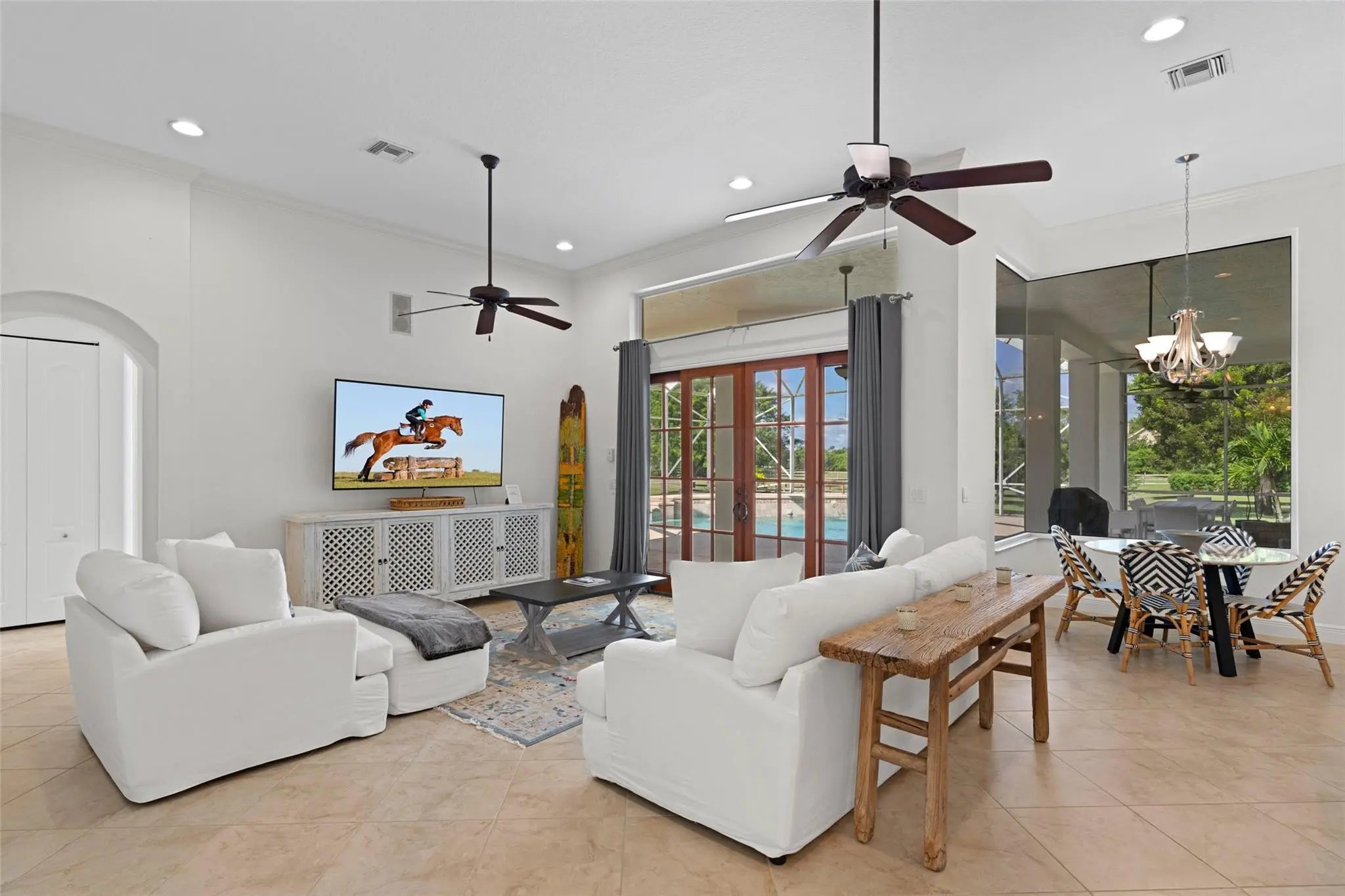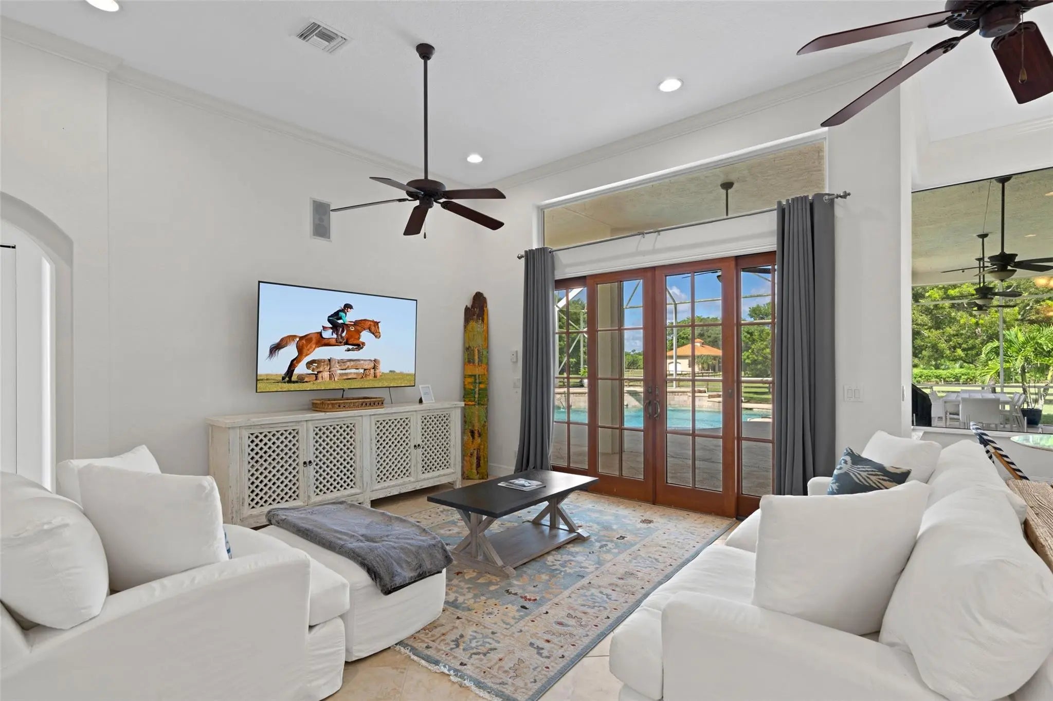 Discover your dream equestrian getaway in the heart of Wellington! This stunning 5-bedroom estate in Paddock Park 2 offers the perfect blend of luxury and convenience. Imagine waking up to serene views of horse paddocks and a tranquil canal, then spending your day lounging by the private pool or exploring miles of nature trails. With its prime location just a golf cart ride away from the prestigious Winter Equestrian Festival, you'll be at the center of Wellington's vibrant horse community. Fully furnished with tasteful decor and bathed in natural light, this home provides all the comforts you need for a memorable stay. Whether you're here for the equestrian season or seeking a peaceful retreat, this property offers an unparalleled Wellington, FL experience.
