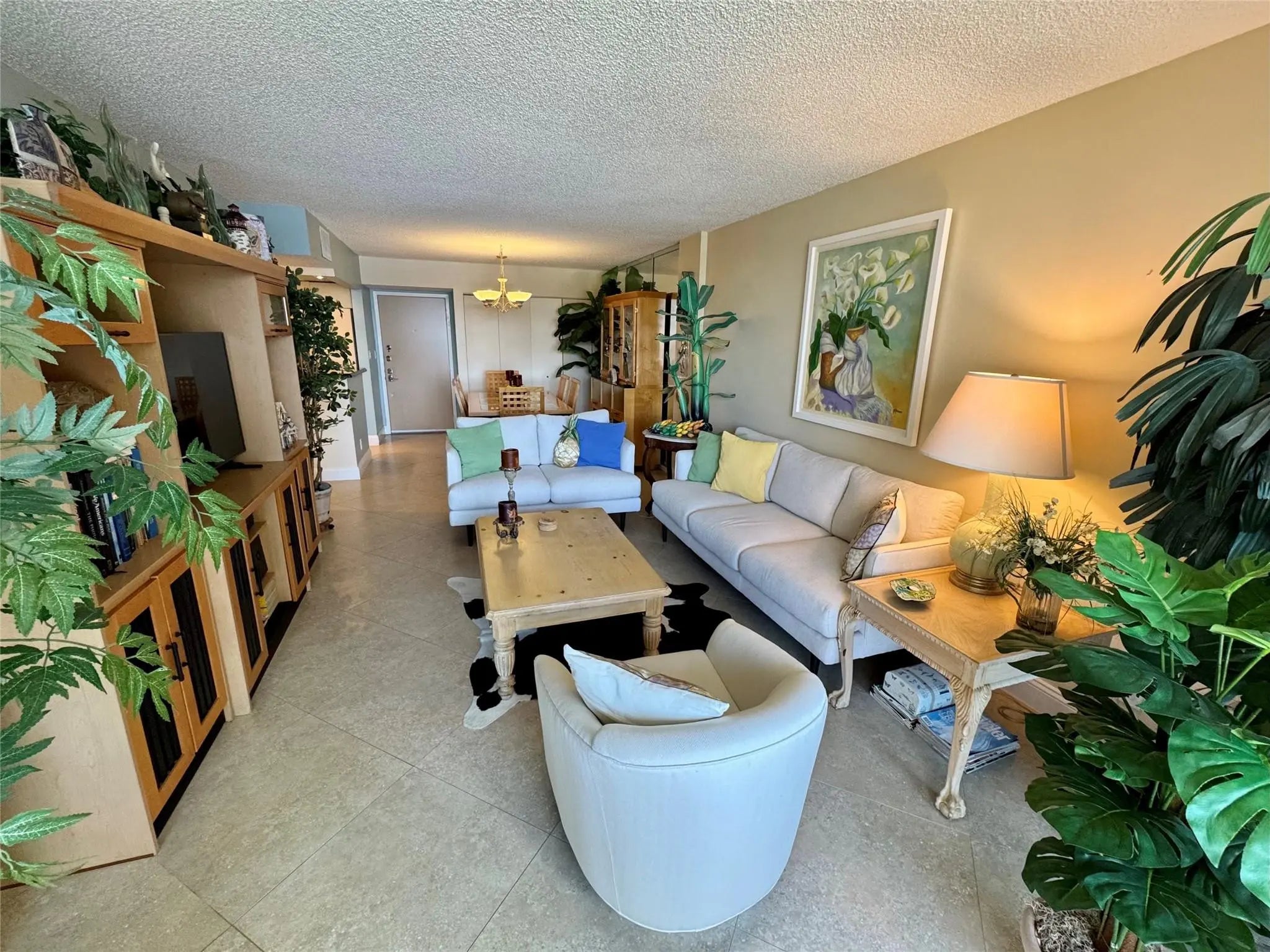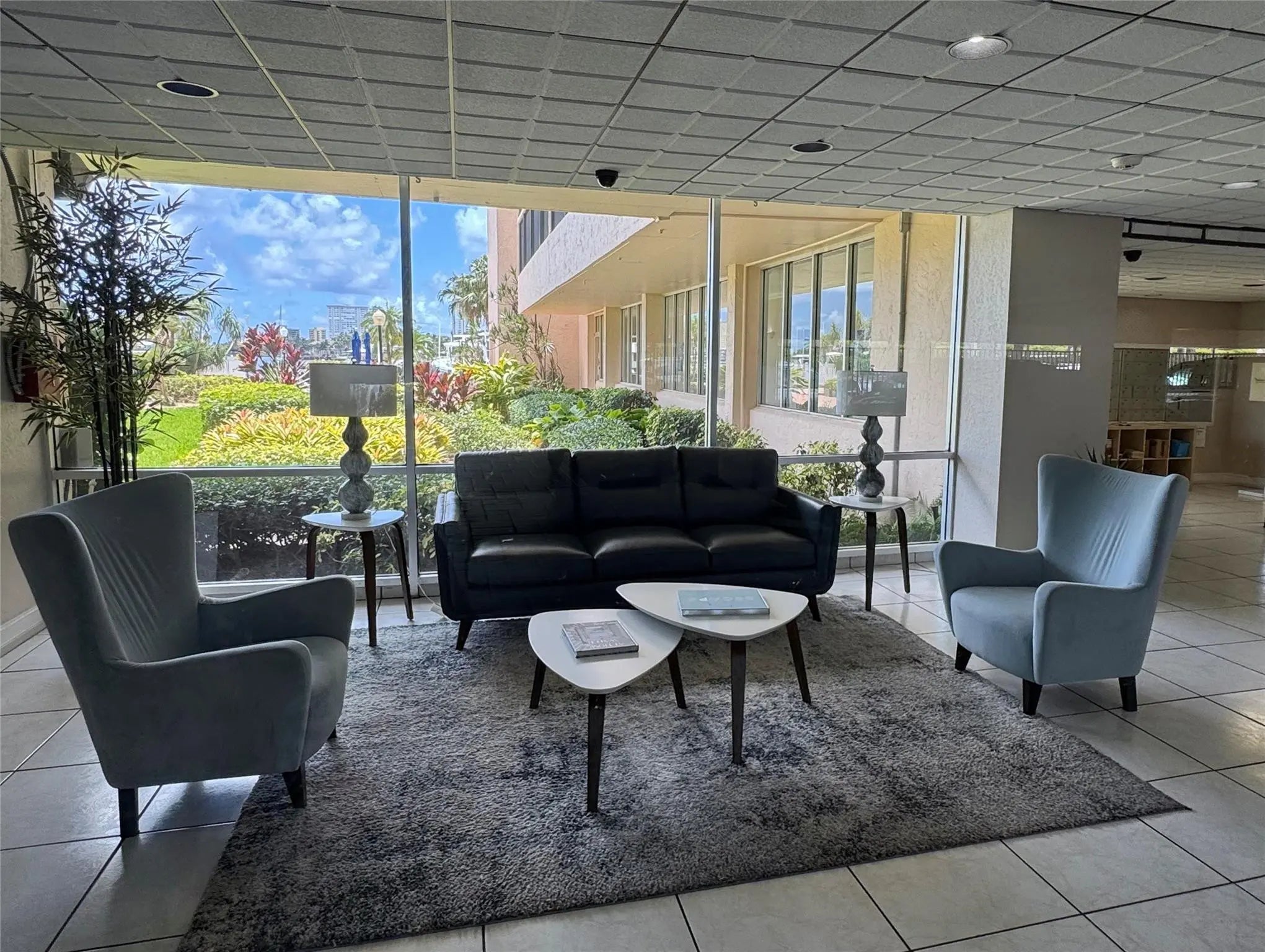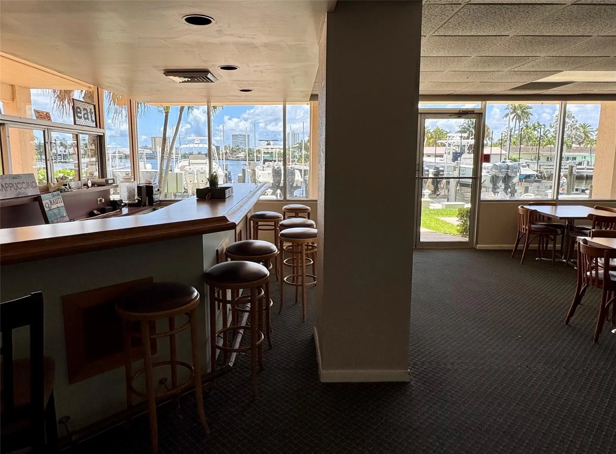 Enjoy direct water views from every room of the pool, marina, and ICW/Lake Santa Barbara! This spacious 2-bedroom, 2-bathroom unit boasts a 40-foot screened-in balcony accessible from the living room and both bedrooms, featuring impact windows and high-end sliding shutters.Inside, you'll find floor-to-ceiling sliders in the living room and bedrooms, custom blackout shades in the bedrooms, and large, neutral porcelain floor tiles throughout the living, dining, and kitchen areas. Both bedrooms have Berber carpet. This unit offers one of the largest 2/2 floor plans in the building, plus extra closet space and the largest covered parking space. Small pets ok. This mid-rise building offers two elevators and secure key-fob entry to the lobby and gym. Residents enjoy a large, heated/cooled swimming pool, well-kept grounds, a dock with deeded marina slips, and a BBQ area. The building also features an extensive number of guest parking spaces, a party room with a bar, library, pool table, dance floor, and large-screen TV, a gym, and a bicycle storage room.