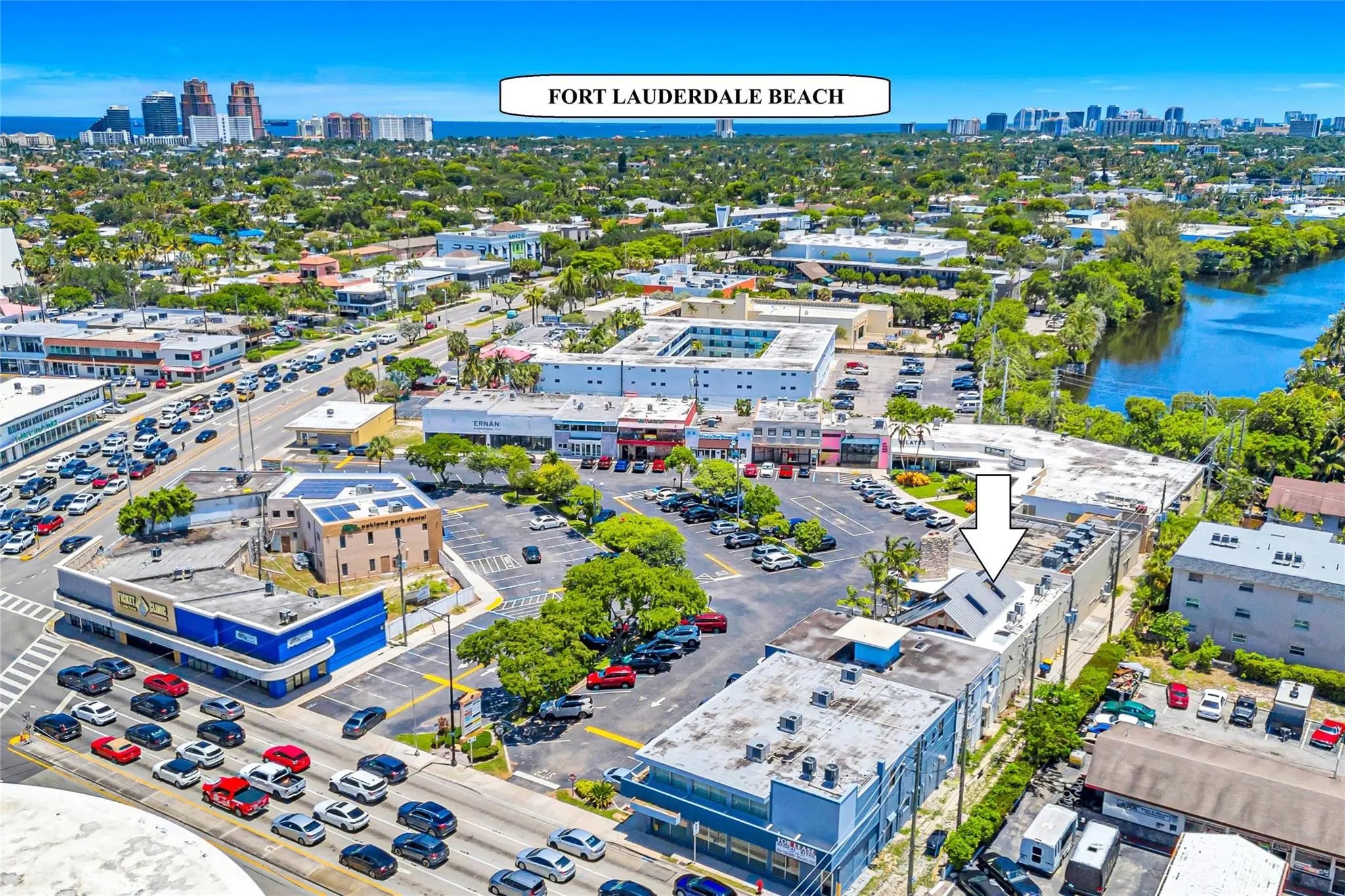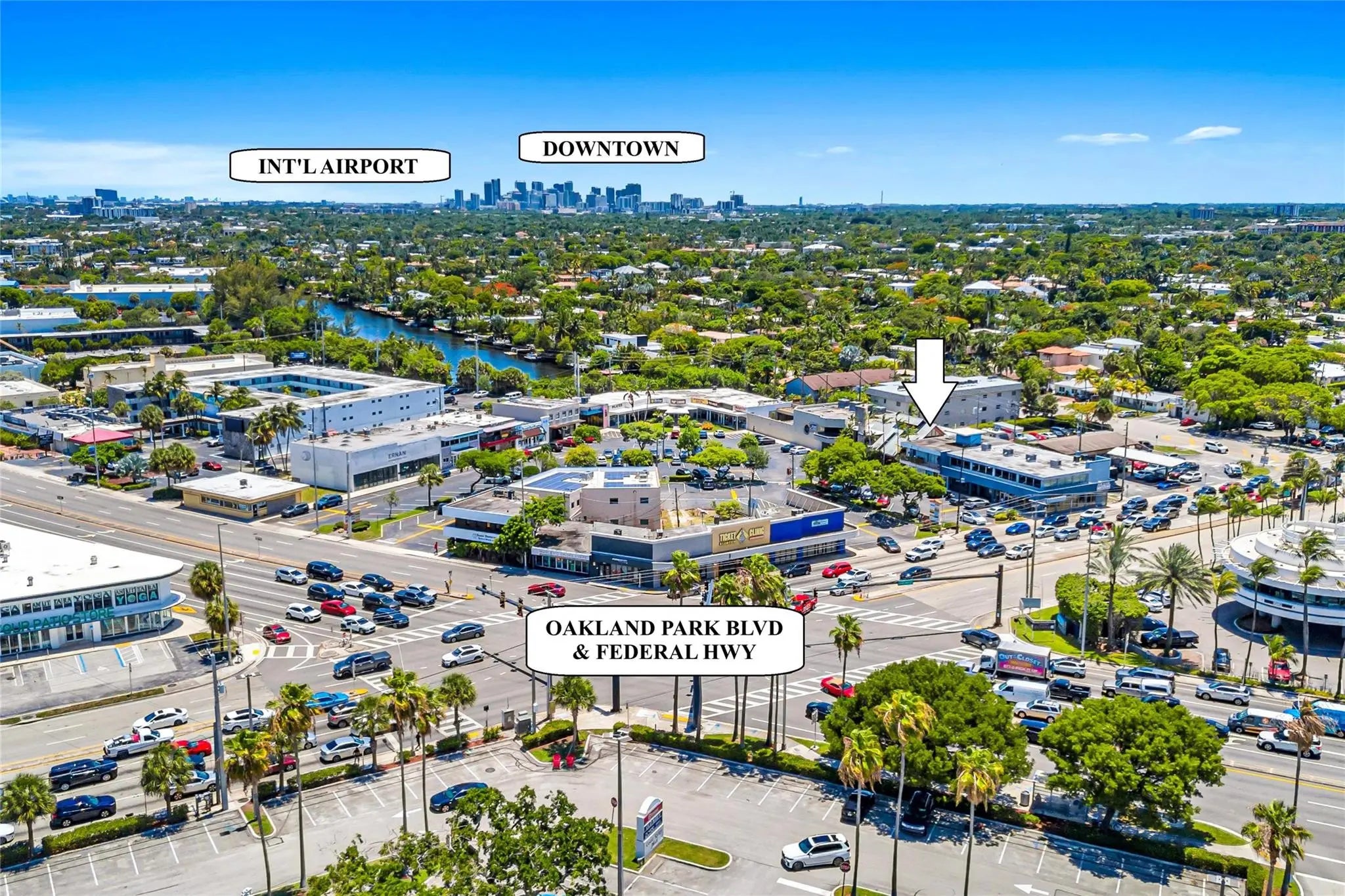 A standout commercial property designed by architect Dan Duckham, offering exceptional visibility and functionality for an owner user. Ideal for architecture, engineering, construction, wellness, creative firms, executive offices, or retail. The 4,557 SF structure features vaulted skylit ceilings, exposed beams, and flexible workspace. The current layout includes 10 workstations, reception, and a meeting atrium on the first floor, plus 7 workstations, a loft meeting area, and a private executive office upstairs. Positioned at the high traffic intersection of East Oakland Park Blvd and N Federal Hwy with over 80,000 vehicles daily, and minutes from Downtown, I-95, beaches, and walkable waterfront neighborhoods. Strong visibility, strong design, and strong location.