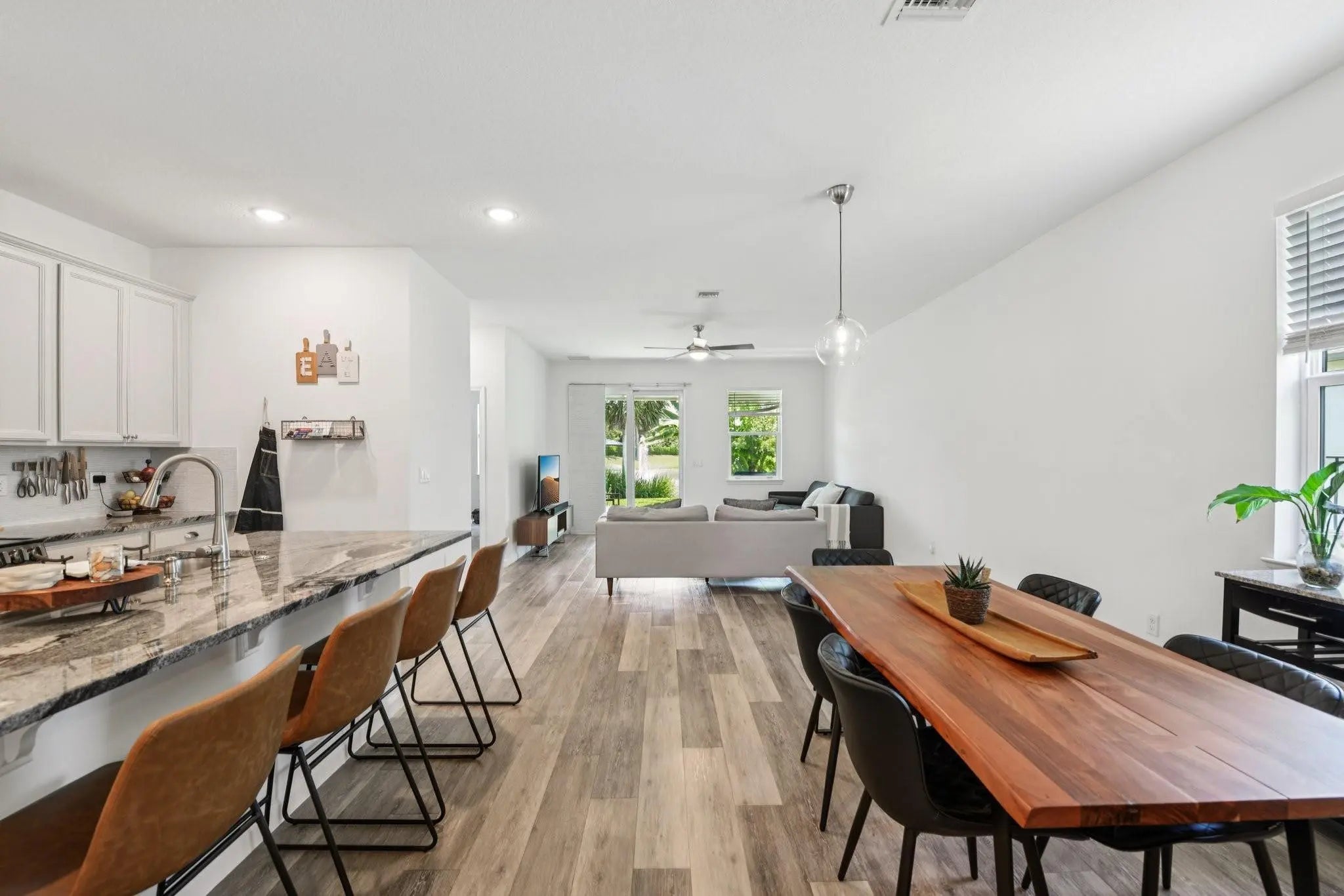 Here is a recently built 4-bedroom, 2.5-bath smart home with a 2-car garage and great lake view. Home comes with solar panels that will give you savings on day one. This move-in-ready residence features a modern open layout with a spacious pantry and a first-floor primary suite. Recent updates include refreshed finishes, vinyl flooring, granite countertops, and newer LG smart appliances. Enjoy energy the efficiency of solar panels and high impact windows and doors. Smart home features include a thermostat, Ring doorbell, security cameras, smart locks, garage system, and patio lighting. The home includes an air purifier. A spacious laundry room with smart washer and dryer completes the home. Perfectly situated—this lakefront property is ready for today’s lifestyle.