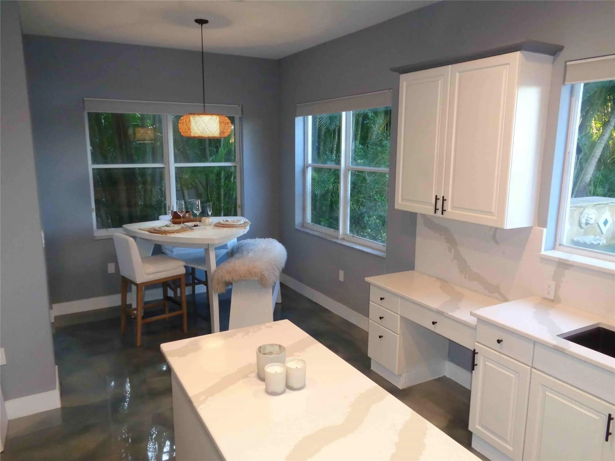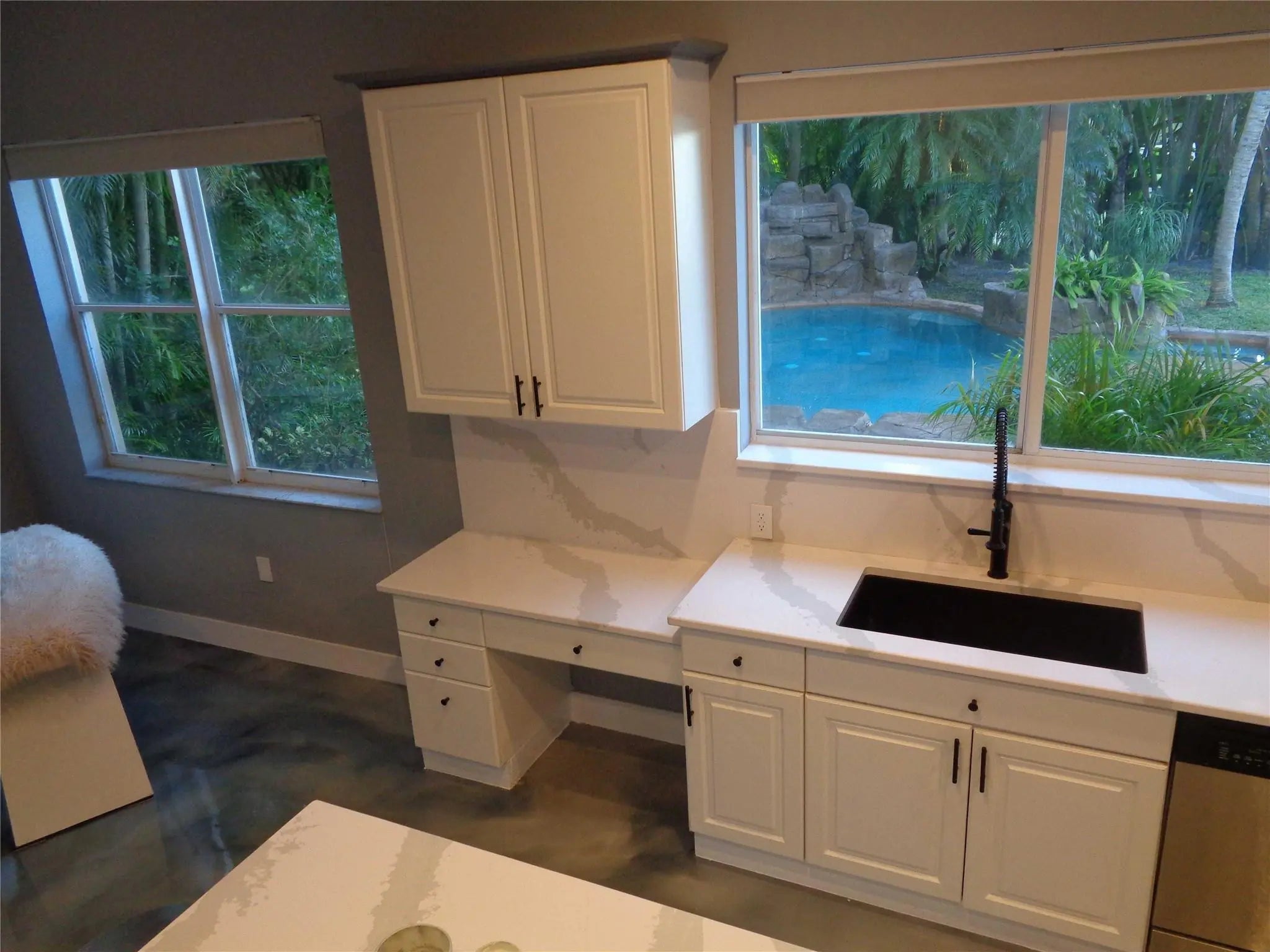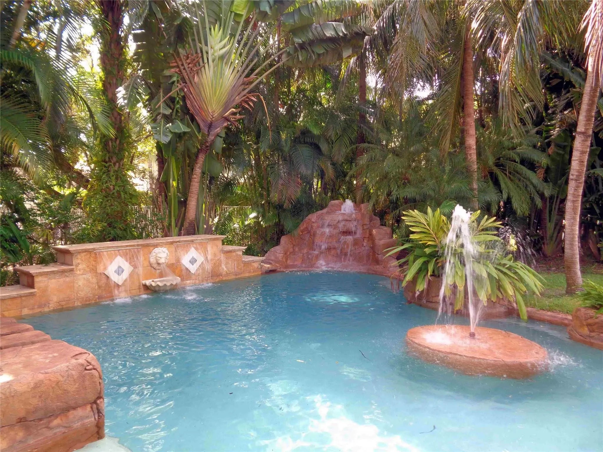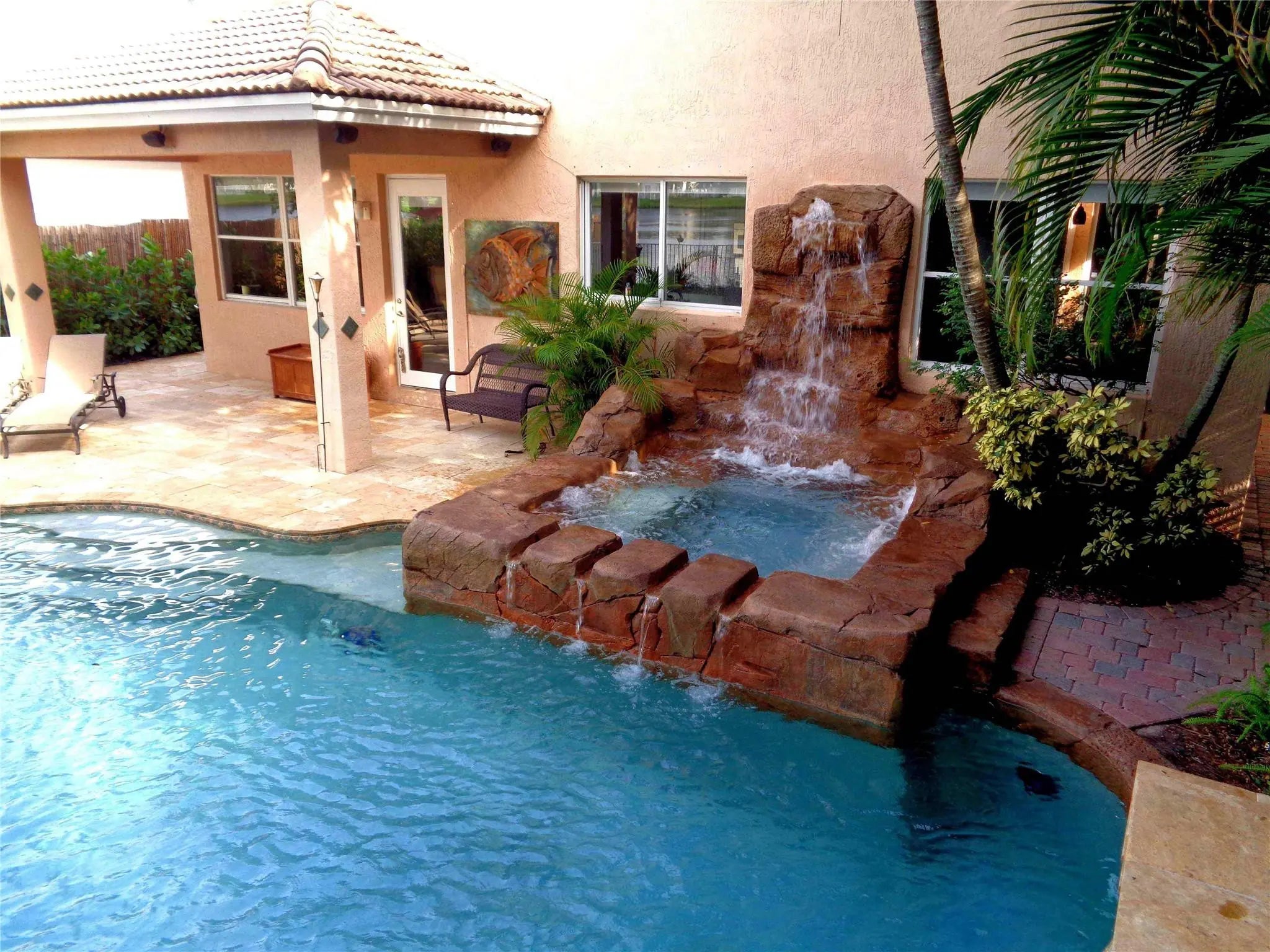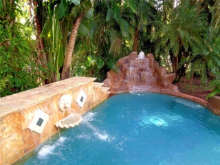 You’ll feel like you’re living in Jamaica or Costa Rica with your very private and secluded lagoon-style heated swimming pool with large jacuzzi hot tub, rock waterfalls, island, fountains, underwater bar seats, and more. The well-manicured yard has multiple areas to lounge under the many coconut palm trees, on a very quiet and peaceful lake.The house has 5-bedrooms, 3.5 bathrooms, and a 3-car garage, with a driveway for 3-additional vehicles.The HOA provides a secure gated-community with 24/7 guards, Comcast cable TV, Xfinity Wi-Fi internet, ADT alarm panel, lawn maintenance and nightly sprinklers. As well as, the multimillion-dollar clubhouse has a state-of-the-art fitness center, yoga studio, resort style swimming pool, tennis courts and playground, all for only $345/monthly.