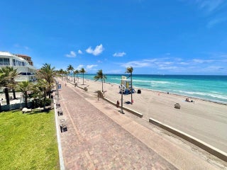 Ready to live on Hollywood Beach? Beautifully renovated 2 bed/2 bath unit now available for rent in one of the most iconic towers on central beach. With direct access to Hollywood's famed Broadwalk, you're just steps away from all the beachfront fun. The classically updated kitchen is open to the main living area offering lovely views through impact rated windows and doors. Wide plank, wood-look tile flooring creates a coastal modern feel. No popcorn ceilings here and the A/C is brand spanking new. And FYI..the seller has approval to add a washer and dryer in this unit. Hollywood Towers residents enjoy 24 hr. security, an elevated beachfront pool deck, a fitness room with ocean views/saunas and an impressive lobby with social spaces. You'll love living here.