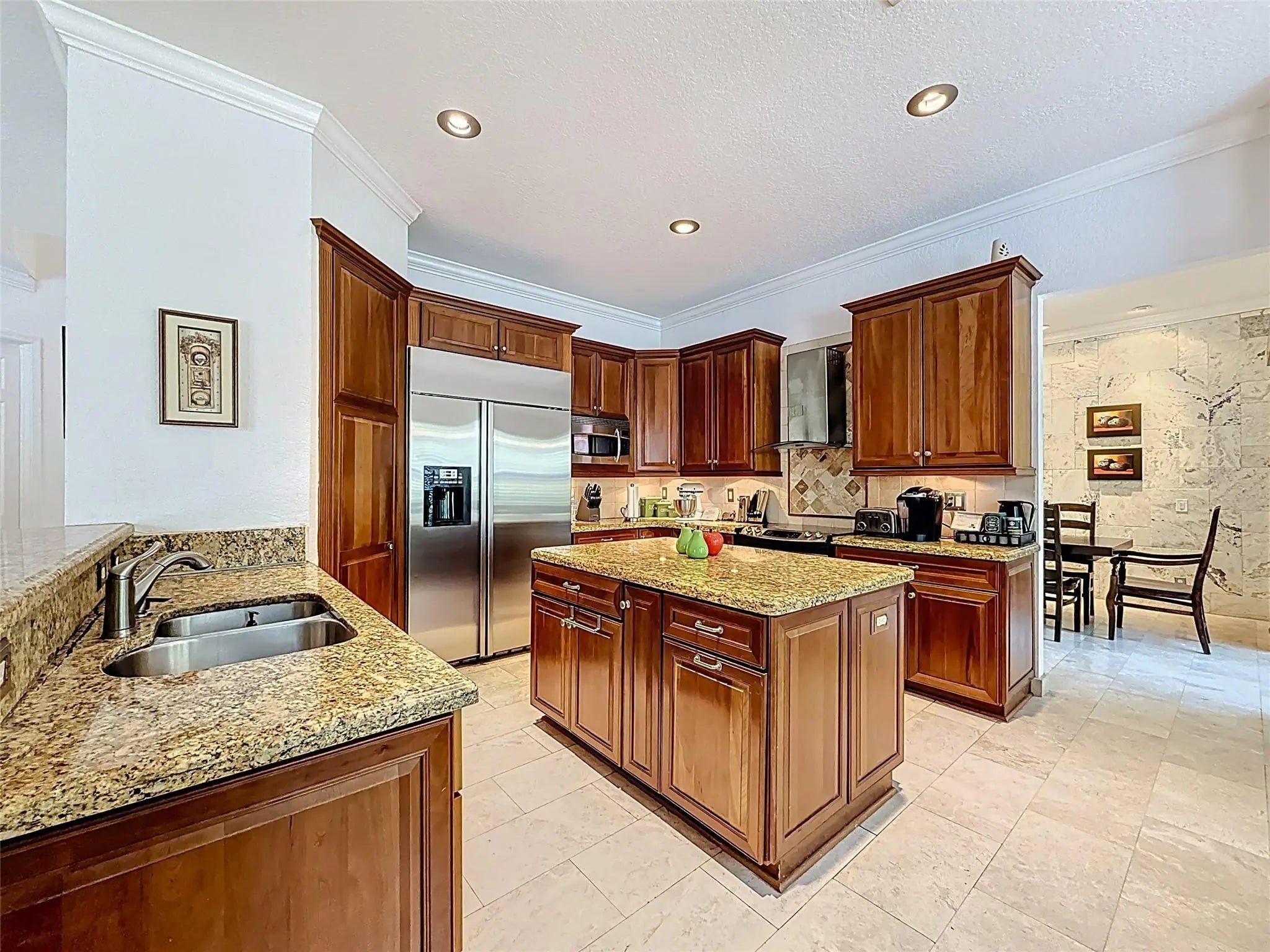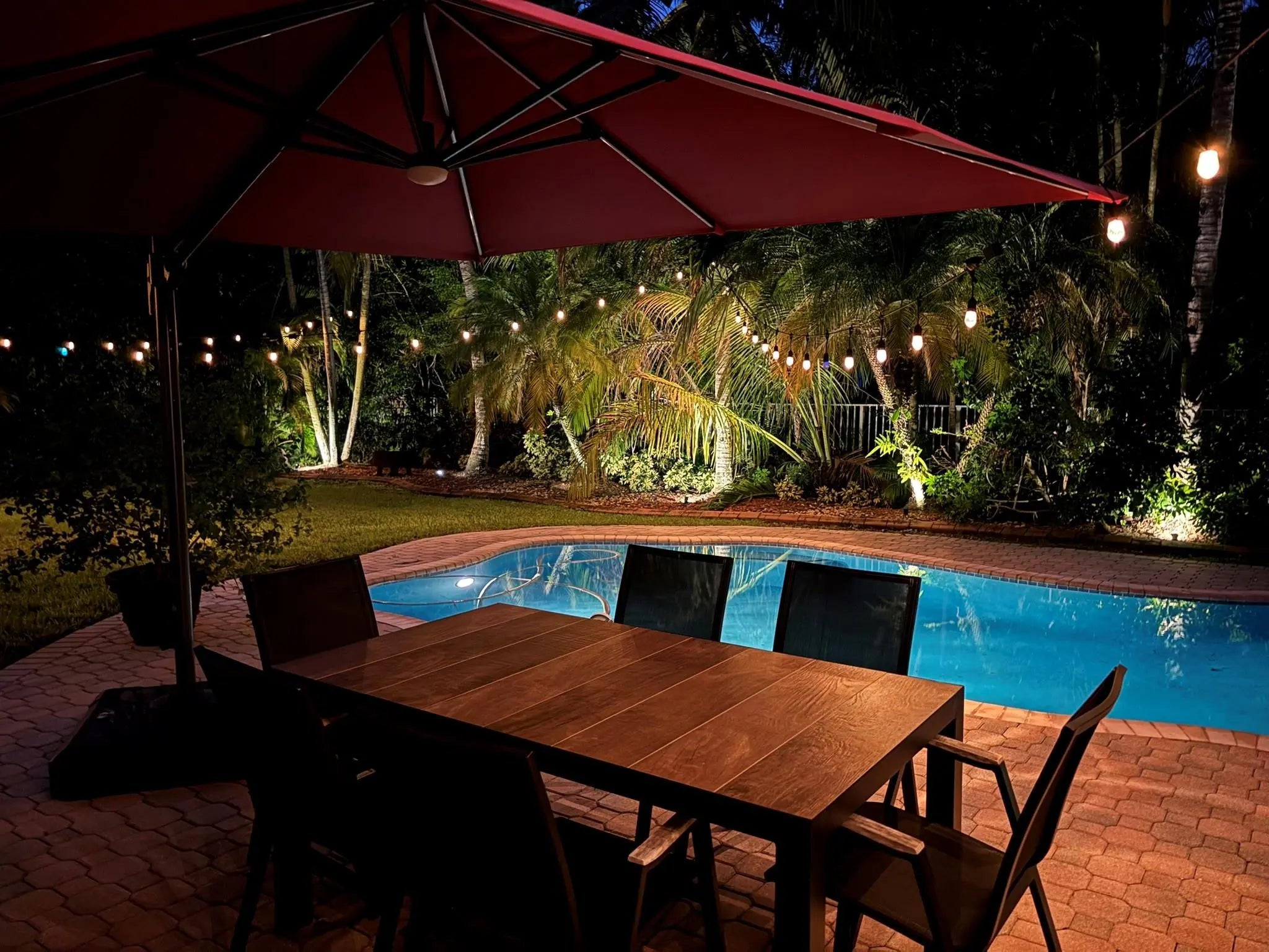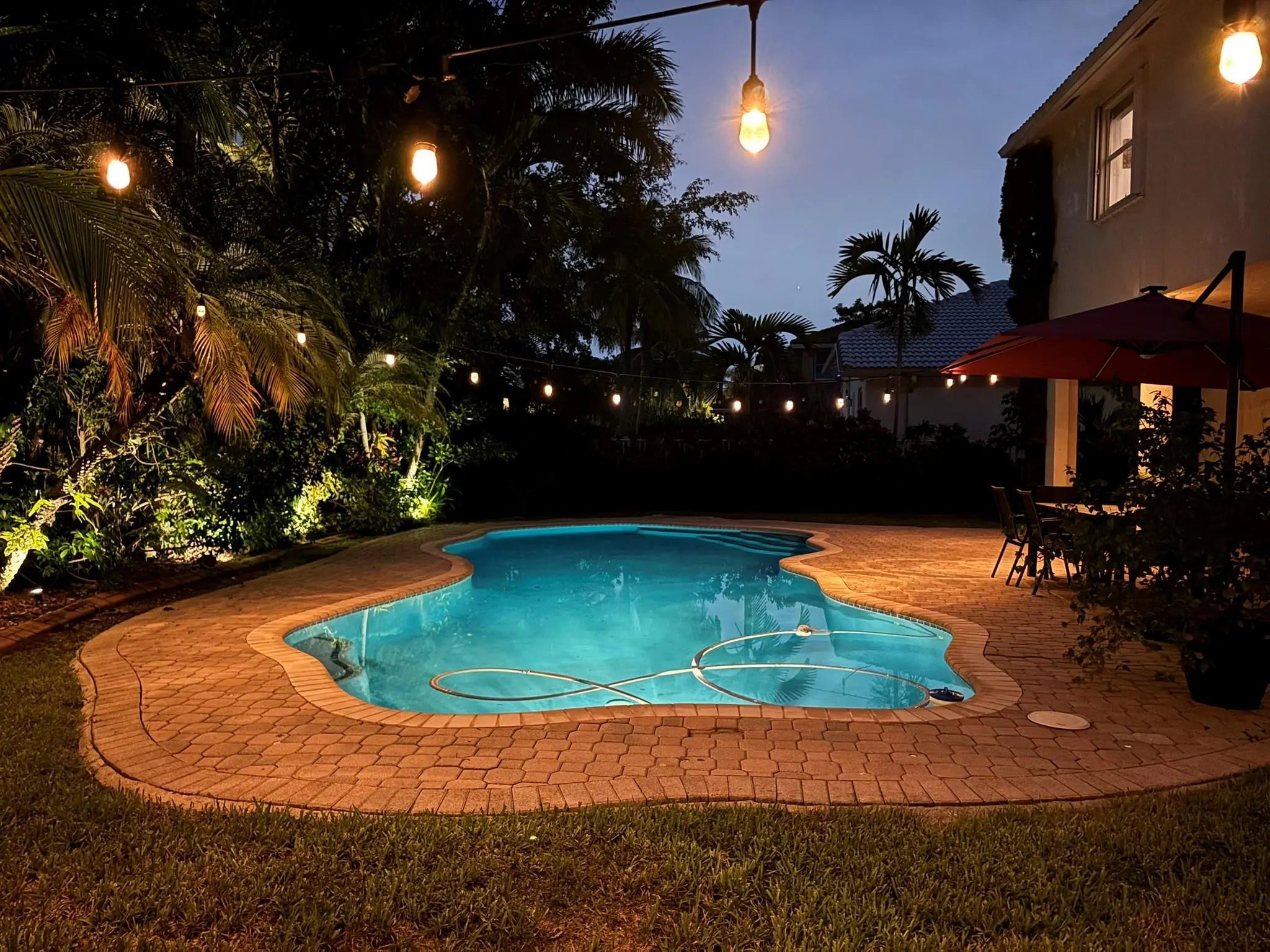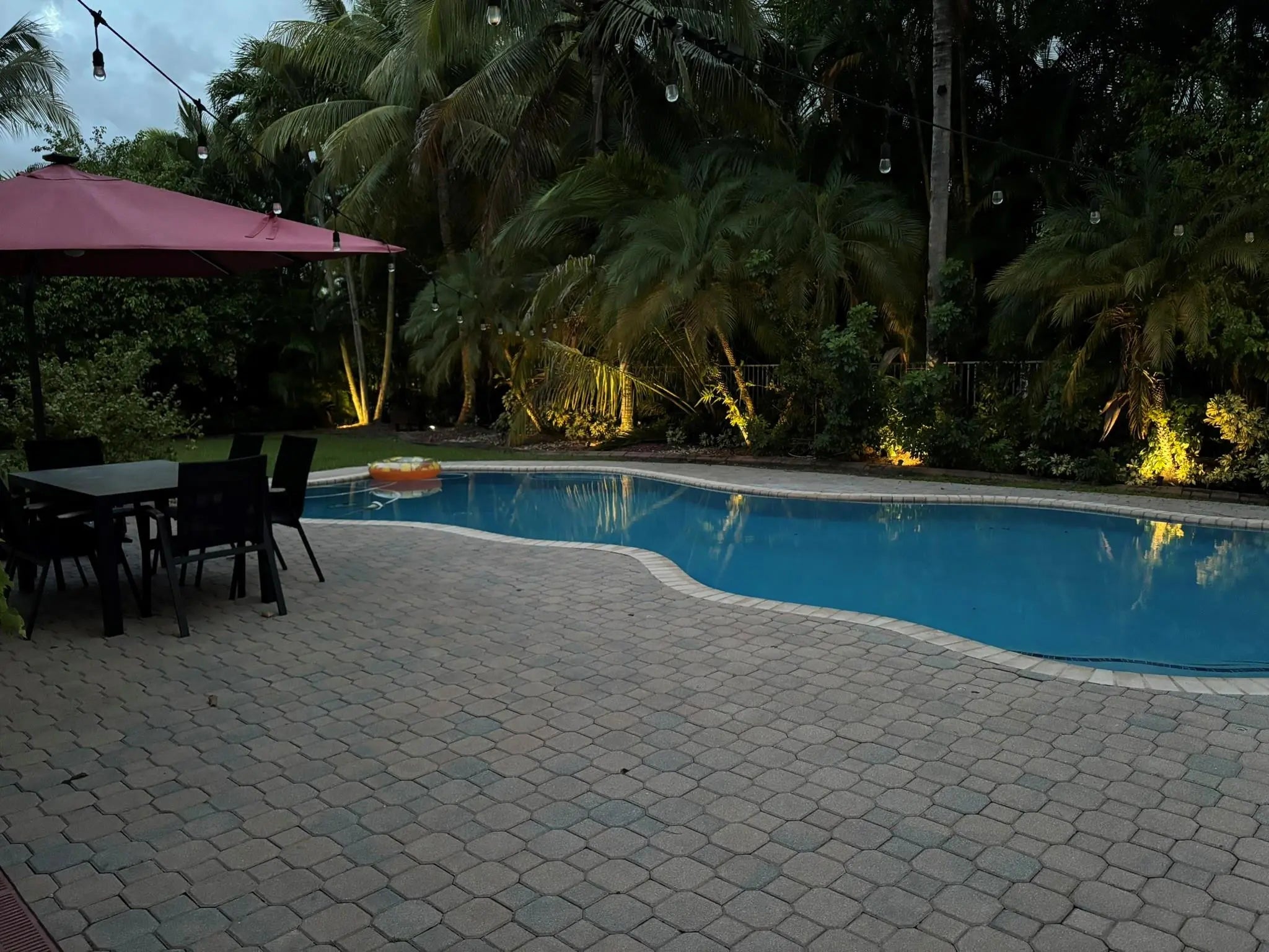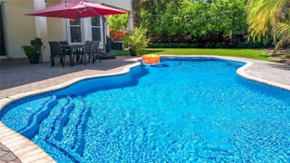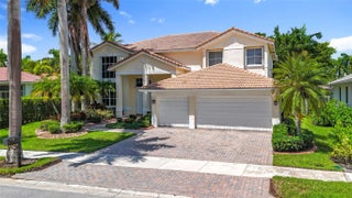 Gorgeous and bright home in the prestigious Weston Hills Country Club. This well-maintained residence offers 4 bedrooms, 4 full bathrooms, a loft upstairs, and a versatile den/office/bonus room ideal for a home office, media room, or guest suite plus a 3-car garage. Accordion hurricane shutters included. The grand entrance features soaring ceilings, top-of-the-line appliances, marble floors downstairs, and dark-wood laminate upstairs. Elegant recessed lighting adds warmth, while custom stone accent walls in the family and dining rooms create a designer touch. Step outside to your private backyard oasis with a custom-designed pool and beautifully landscaped grounds, perfect for outdoor living and entertaining.