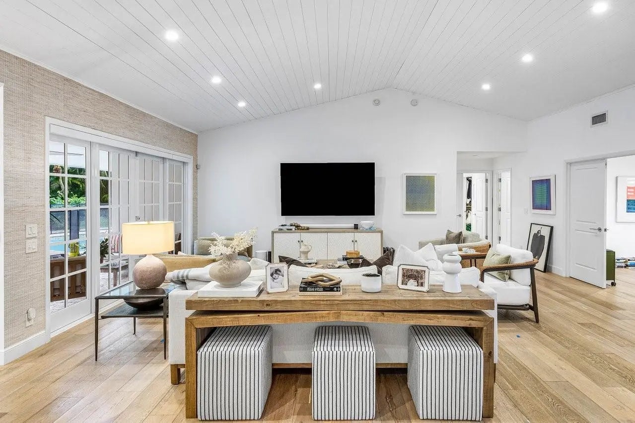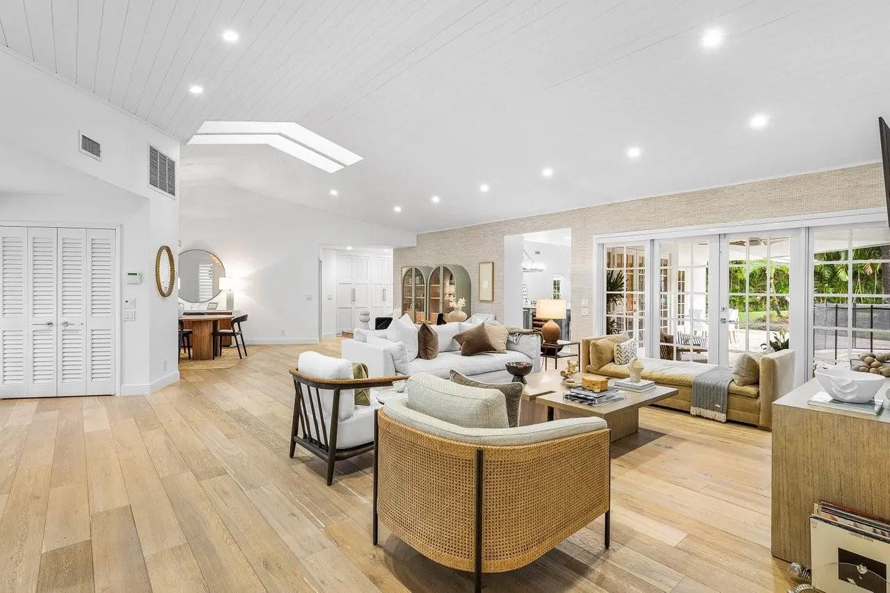 Tucked away on a quiet cul-de-sac in the prestigious St. Andrews Country Club, this beautifully updated one-story residence offers refined indoor-outdoor living with timeless charm. Vaulted ceilings and a wood-burning fireplace anchor the spacious main living area, creating warmth and character rarely found in modern renovations. The interior of the home is drenched with natural light throughout, complete with impact windows and doors. The split floor plan includes four generous bedrooms, four full bathrooms, and a dedicated office, plus two main living areas for entertaining. The primary suite opens directly to a serene patio retreat—perfect for morning coffee or evening wind-downs. Throughout the home, you'll find abundant storage, including generous closet space and an oversized pantry, all thoughtfully integrated for everyday ease. Designed for both comfort and convenience, this home combines classic architectural elements with today's lifestyle upgrades in one of Boca Raton’s most exclusive country clubs.