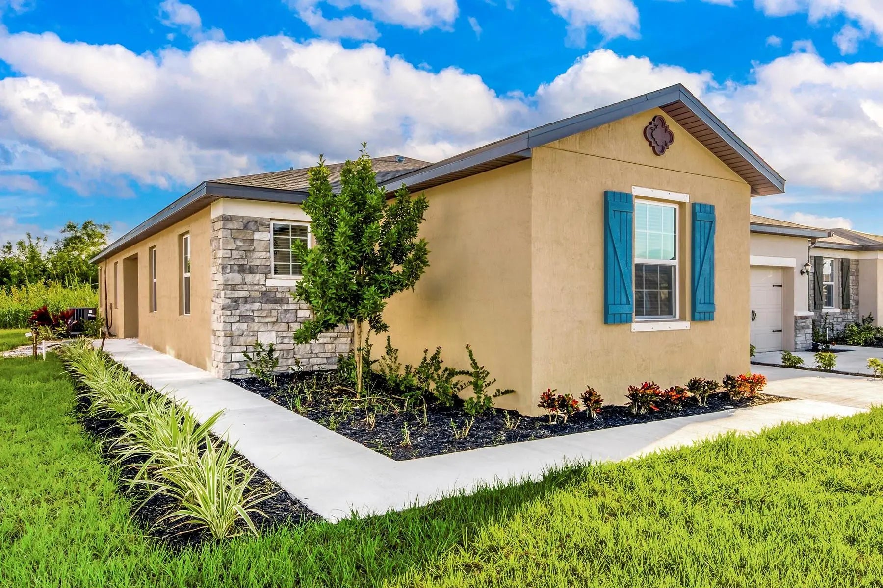 Ask about our limited-time incentives, builder-paid closing costs, and more! The Santa Maria offers a spacious, one-story layout designed for comfort and style. Located in Celebration Pointe, this 4-bedroom, 2-bath home features a charming exterior, generous bedrooms, and a welcoming covered entry. The chef-ready kitchen boasts a breakfast bar, sprawling countertops, and wood cabinets with crown molding -perfect for entertaining. Additional highlights include a laundry room and fully landscaped front yard. Enjoy a prime location with access to amenities like walking paths, a playground, and a future community clubhouse. Plus, enjoy easy access to shopping, dining, and top-rated schools!
