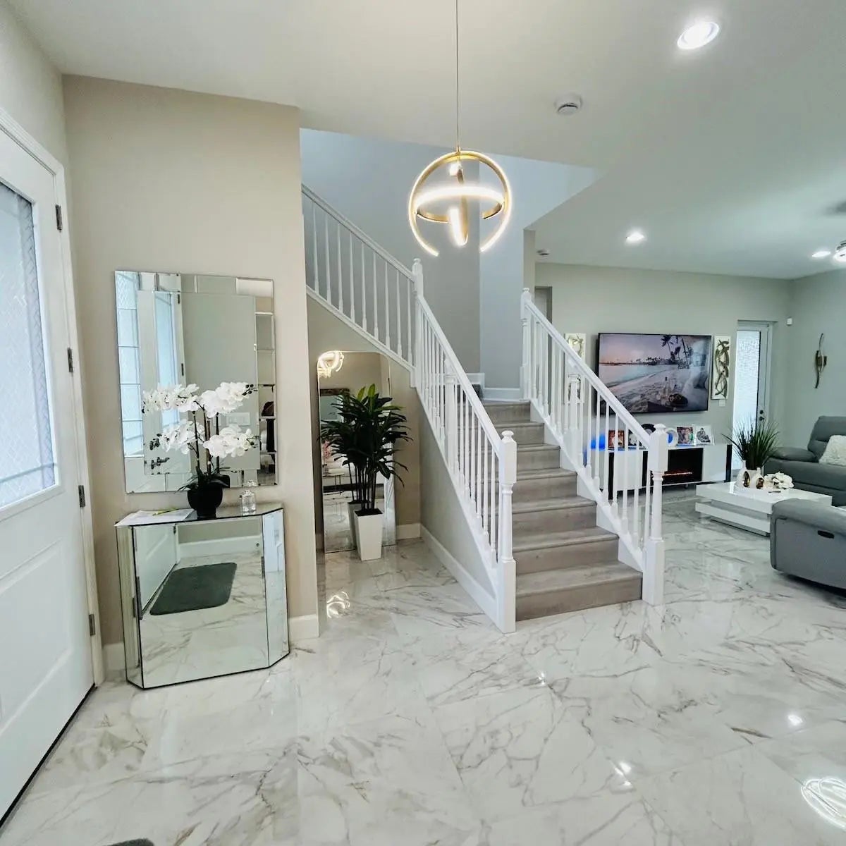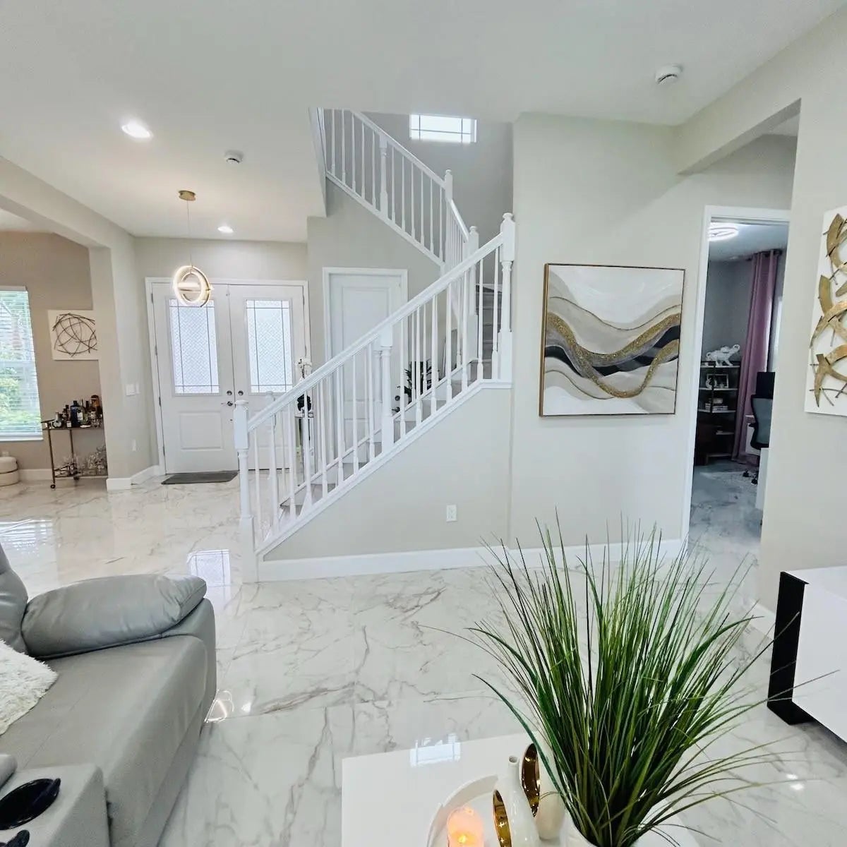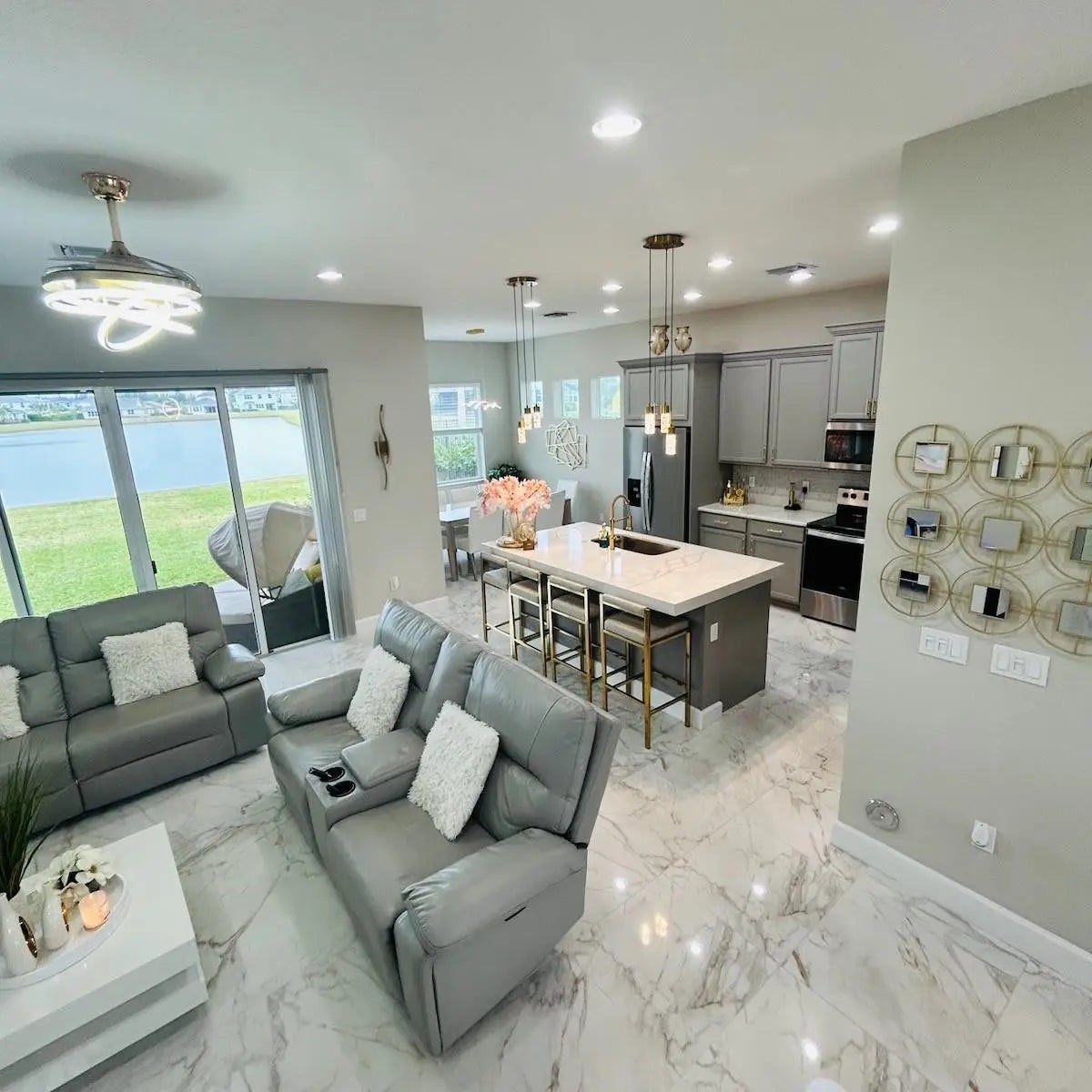 Welcome to this stunning, upgraded 4-bedroom, 3-bathroom plus sitting/den area. This is a Sycamore model by Minto, ideally situated on a premier lakefront lot in the heart of Westlake, Florida’s fastest-growing community.Step outside to enjoy breathtaking lake views from your spacious backyard and expansive L-shaped covered patio with a custom privacy wall—perfect for entertaining or relaxing in peaceful seclusion. Theoversized lot offers ample space to design and build your dream pool, creating a private outdoor oasis tailored to your lifestyle.Inside, the home features a flexible floor plan with a formal dining room, bright sitting area/den, and an inviting family room. The entire first floor showcases polished upgraded flooring, including the downstairsbedroom with direct access private entry—ideal for guests or multi-generational living. A standout feature is the staircase, transformed from a half wall to a modern open-concept railing, creating an airy, upscale flow between the first and second floors. Upstairs, the primary suite boasts panoramic lake views, tray ceilings, a generous walk-in closet, and a spa-inspired bath with dual showerheads. Two additional bedrooms are filled with natural light—one overlooking the serene lake and the other facing the front of the home. An upstairs laundry room completes the second floor.Additional upgrades include:Stylish vinyl wood staircase with extended railingGold-accented kitchen hardwareDimmable designer lighting throughoutOpen-concept layout with high-end finishesThis move-in-ready home combines privacy, luxury, and endless possibilities for personalization in one ofWestlake’s most desirable lakefront locations.The community adds to the appeal, offering a secure, gated environment with a resort-style pool featuringa waterslide and snack shack, perfect for fun. For those seeking a quieter retreat, there is also anexclusive adult pool, ensuring everyone can enjoy their ideal space.Don’t miss the chance to own this rare lakefront gem in one of Palm Beach County’s most vibrantcommunities. Schedule your private showing today and experience the perfect blend of elegance, comfort,and lakefront living.