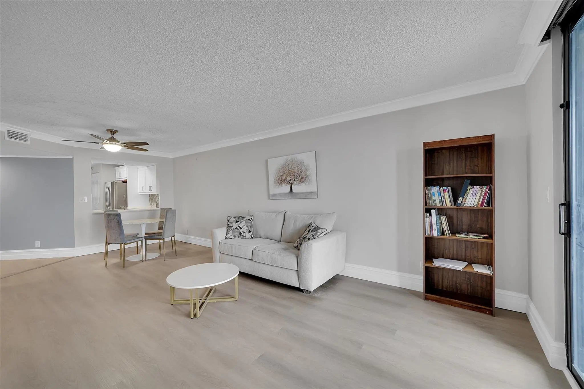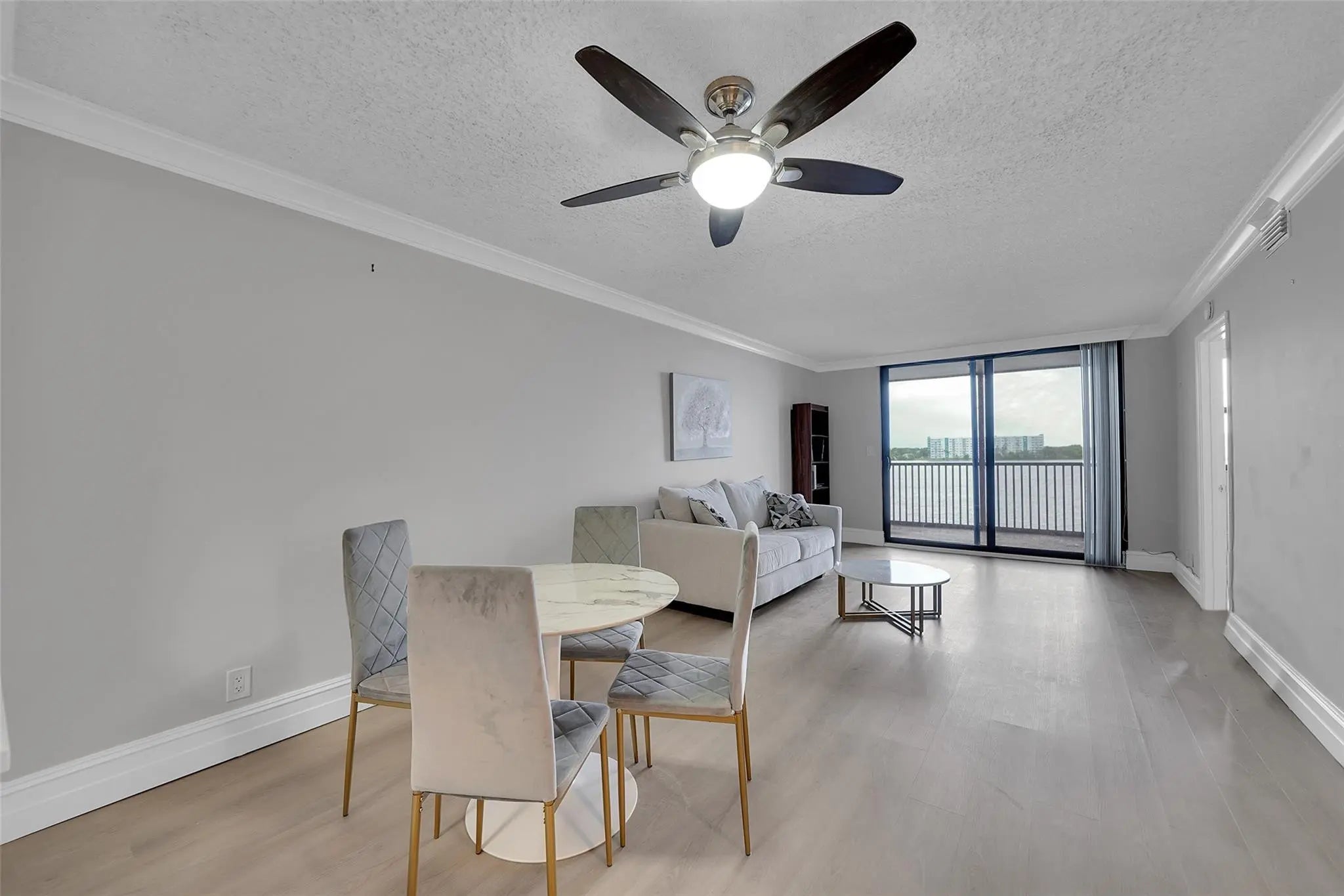 Come see this 2/2 partially furnished PENTHOUSE with picturesque lake views, situated in a secure, guard-gated community. This beautifully updated unit features a modern kitchen with white shaker cabinets, quartz countertops, and stainless steel appliances. Enjoy the convenience of an in-unit washer and dryer, and peace of mind with impact windows. The condo has been recently upgraded with new vinyl flooring and a fresh coat of paint, creating a bright and inviting atmosphere. 40 year inspection included a new roof in 2024, concrete restoration, stucco removal and replacement, repairing balconies, waterproofing and painting the building.