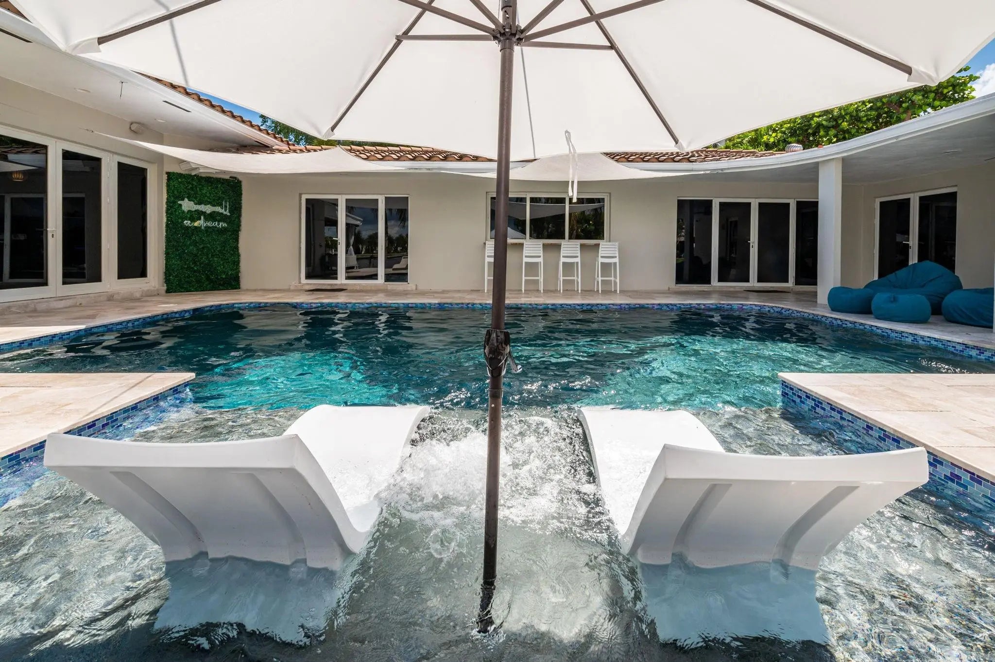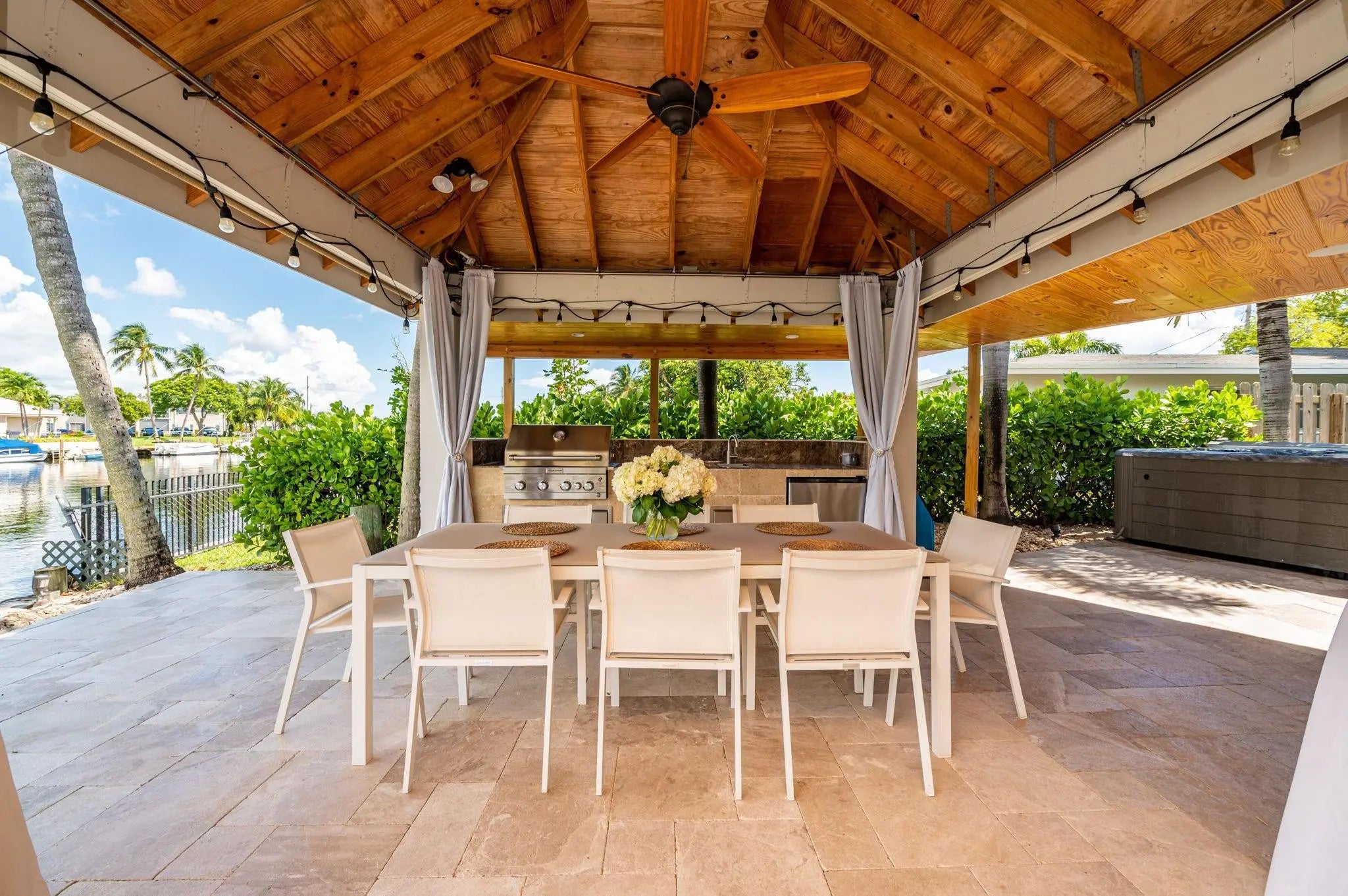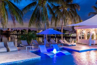 CUSTOM-BUILT WATERFRONT MASTERPIECE – Recently renovated 5-bedroom, 3.5-bath home with 2-car garage on a private cul-de-sac. This one-of-a-kind residence offers approx. 3,200 sq. ft. under air and 140 feet of waterfront with a 120-ft dock w/water & electric, providing space for a large boat and jet skis. Enjoy wide-water views, impact windows & doors, and an entertainer’s backyard with a heated pool, hot tub, summer kitchen, wet bar, tiki hut, gazebo, fire pit & covered patio..Perfect for gatherings or relaxed coastal living. Inside features an open layout, modern finishes, oversized beverage fridge, primary suite with a w/built-in bar. A true entertainment paradise where luxury meets waterfront lifestyle.- Property is available for Seasonal Rental as well as Annual Property for Immediate OcupancyProperty can be made available for Seasonal or Annual Rental.Contact Agebt for Details.