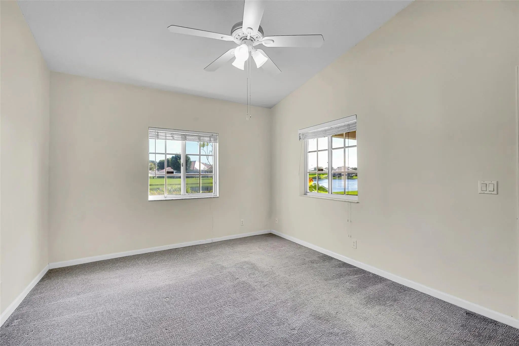 Enjoy resort-style living in this spacious 2-bed, 2-bath villa nestled within a peaceful, guard gated, 55+ community. The open layout features elevated ceilings and serene lake views, offering the perfect canvas for your personal updates. The unit has an attached 1 car garage with washer dryer and in the backyard enjoy a covered patio overlooking the lake. Residents enjoy an active lifestyle with access to three sparkling pools, tennis and pickleball courts, a fitness center and a large clubhouse ideal for hosting social activities. Whether you're walking or simply relaxing by the lake, this tranquil setting blends comfort, recreation, and community living at its best.