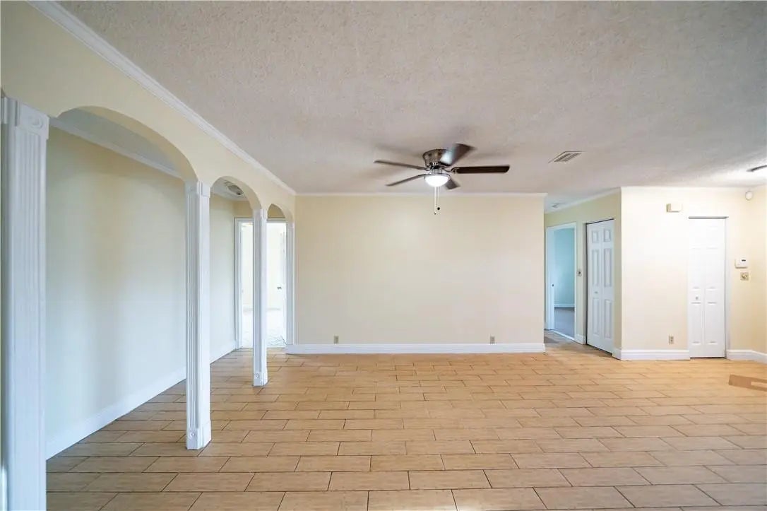 specious home with a large open floor plan and split bedrooms. 3 beds, and 2 baths + dan in the garage space for office or storage. A lush backyard with mature trees and a view of a canal. An outdoor covered area that is perfect for entertaining, and family gatherings. washer and dryer in the house and located inside a room of its own. Great neighborhood, and walking distance to a beautiful park/playground. quick approval for qualified applicants. lawn care is included with the rent.
