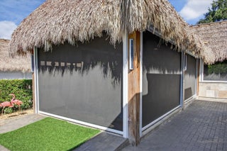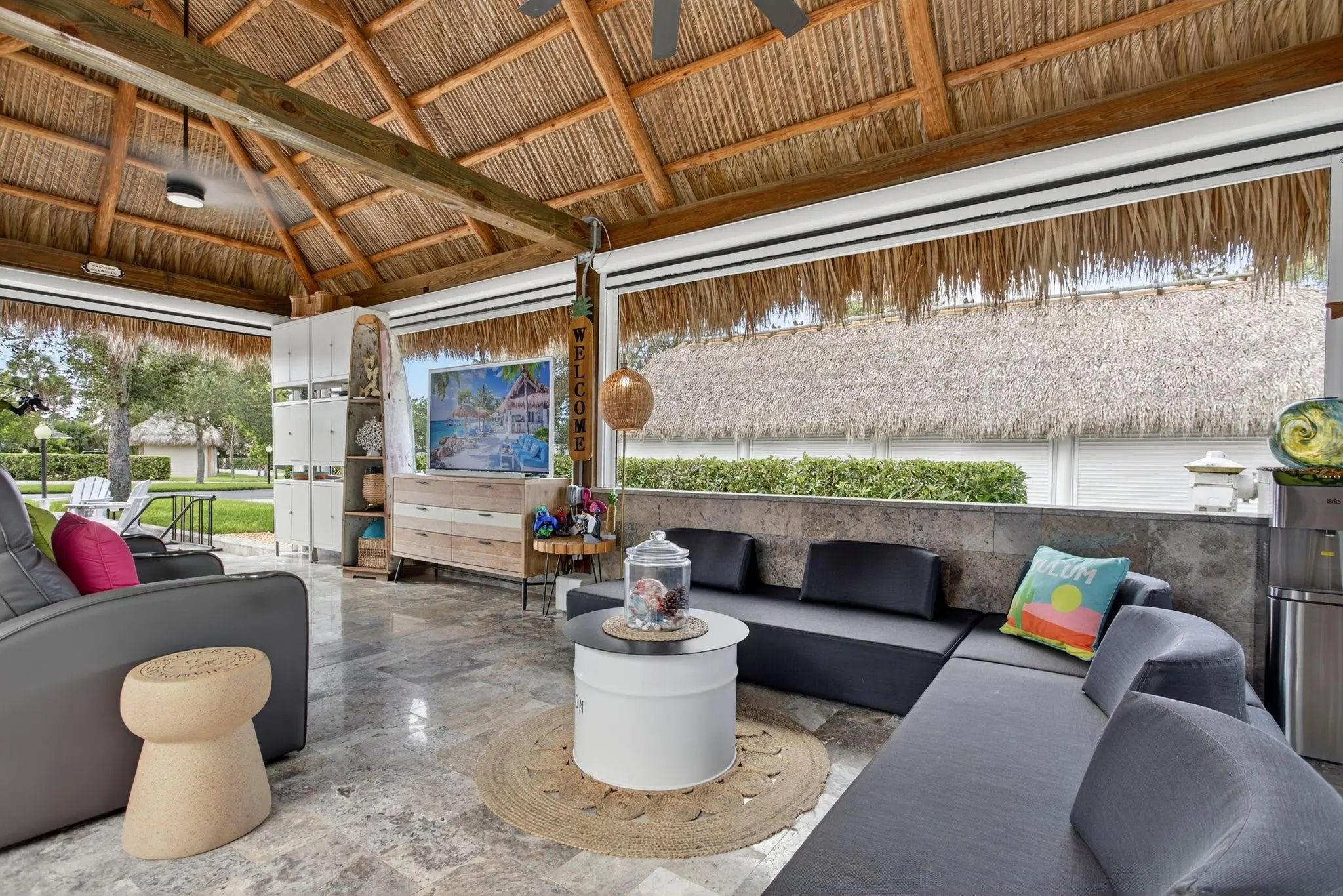 Claim your slice of paradise. Bring your CLASS A motorcoach to AZTEC RV RESORT and settle into the lifestyle you deserve—complete with your own private tiki, perfect for entertaining or unwinding in tropical style. Prime location near beaches, Fort Lauderdale Airport, dining & entertainment. Property features a 4,229 SF lot located in a loop with no rear neighbors, Large L-shaped tiki 30 x 40 with concrete walls and travertine flooring, an outdoor kitchen (Paradise Grill) with cooktop, BBQ, and burner, marble countertop with office/bar section, hurricane-rated screens and shutters, mosquito control system (Swat system), travertine edging around the lot. Newly built in 2023 with permits. Onsite, you will find a state-of-the-art fitness center and a packed calendar of seasonal activities.