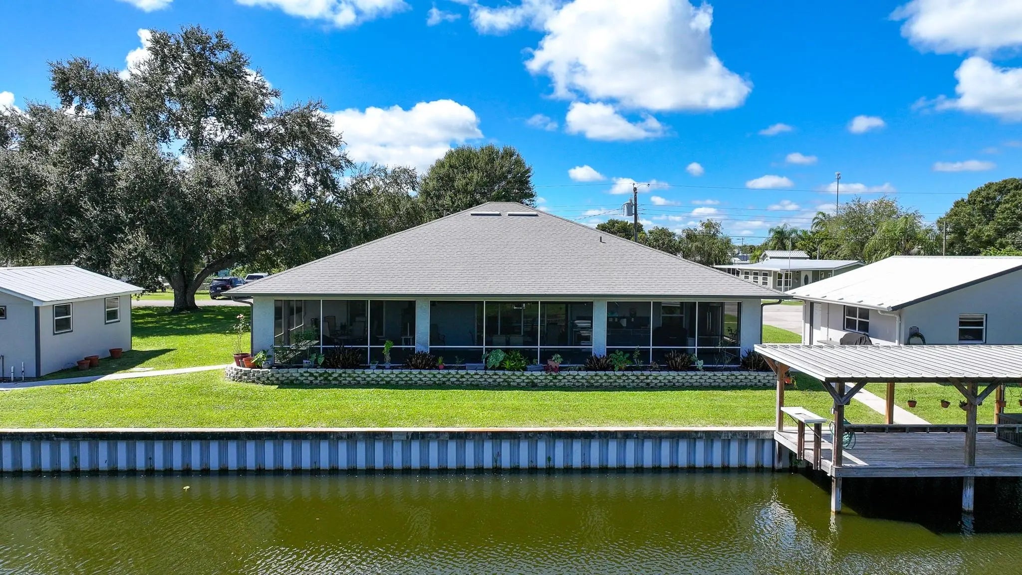 PRICED REDUCED!! ~BUYERS DREAM~ Discover the Best of Florida’s Lakefront Living in this 1996 sq ft. 3bedroom/2 bath exquisite home settled on 3 lots located on Lake Okeechobee. This property features a custom kitchen with granite countertops, ceramic tile throughout the home, walk-in closets and a view of the water in almost every room. Other features are a 55 X 11 Wraparound screened Florida porch with kitchen, private covered dock with lift, 225 ft. Sea wall, private boat ramp, huge 57 X 12 carport with 50 amp electric for your boat or RV parking, garage and 2 additional buildings. This property has all the bells and whistles, these are just some of the luxuries amenities. Call today for your private showing. All measurements are appropriate.